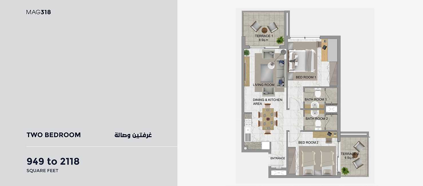 MAG PD's high-rise MAG 318 Tower in Business Bay, Downtown Dubai, offers completely furnished studio, one, and two-bedroom canal-front homes. Additionally, it has 438 residential apartments in various layouts with a desirable payment schedule; the development was planned with future residents' wants and preferences in mind. The residences have parking spots and balconies, and it's simple to move around because of the numerous entry and exit points.