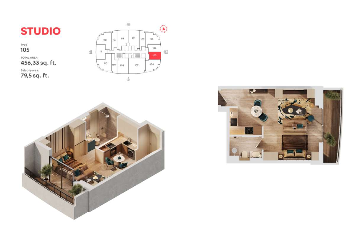 As an architectural mural representing modernity, elegance, and practicality, MAG 777 stands 22 floors high in the middle of Dubai Sports City-one of the most innovative and modern areas of the city. The building includes a basement level for parking, a ground floor with an inviting lounge area and a tech floor with 19 residential floors above. It has diversified residential units that have been designed to provide style and comfort. The building's design and architecture reflect modern taste, ensuring that each unit combines functionality and beauty. The interior design maximizes space with contemporary finishes, modern appliances, large windows, and high-quality accents.