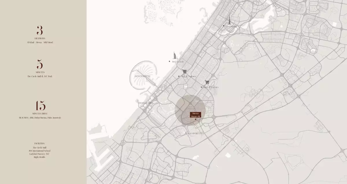 The main benefit of living in Jumeirah Village Circle (JVC) in Dubai is that it provides its residents with a vibrant and active sense of community. There are plenty of recreational sites to explore and take in the lifestyle, along with well-kept parks, dining options, and retail centers. Traveling throughout the rest of the city is made easier by the close vicinity of Al Khail Road and Hessa Street, which provide quick access to the main destinations. With its wide variety of retail businesses, food and beverage establishments, and comfortable dining areas, the area's top-notch Circle Mall further enhances the appeal.