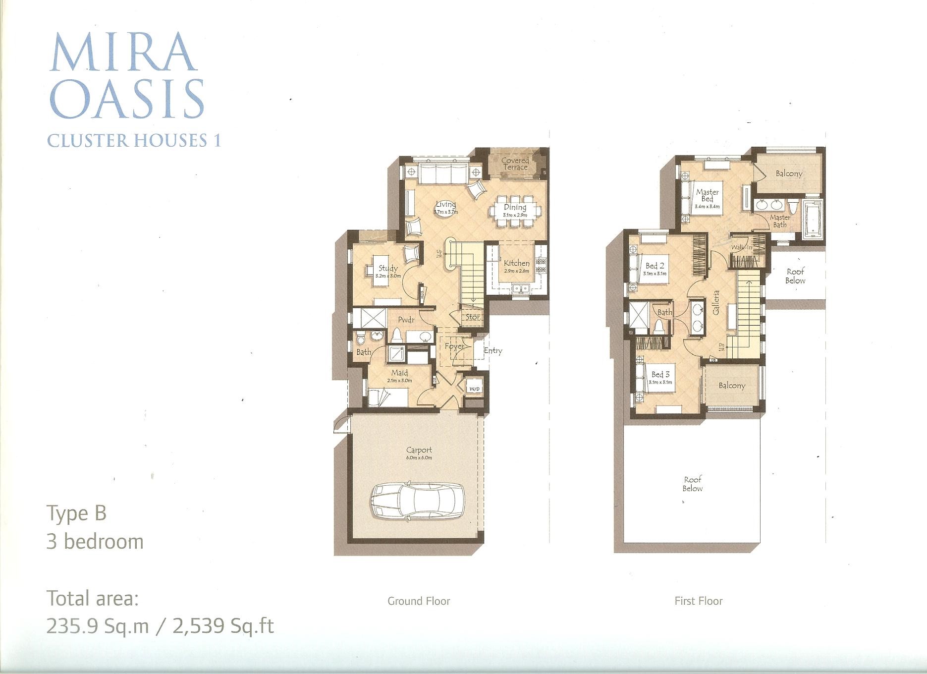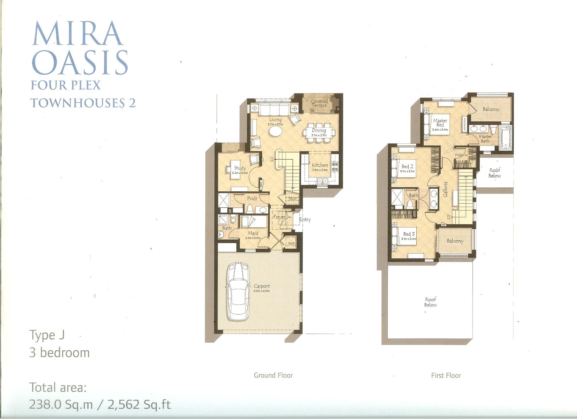 There are three phases to the residential sub-community of Mira Oasis in Reem: Mira Oasis 1, 2, and 3. A selection of townhouses with three to four bedrooms is available in Mira Oasis 1. A town centre that can meet inhabitants' everyday needs is located in the centre of the neighbourhood. Regarding the location, Arabian Ranches, Remraam, and other Emaar projects are on the other side of Emirates Road, E611, which has direct access to the master community Reem. Reem is also a project of Emaar Properties, therefore it is close to metropolitan amenities.