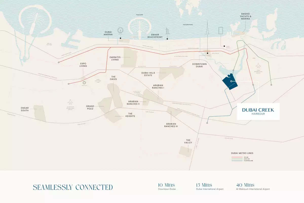 Nearby Landmarks: Dubai Creek Tower, Festival City Mall, Burj Khalifa, DXB Airport