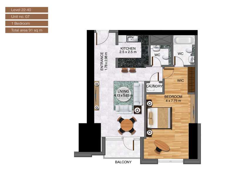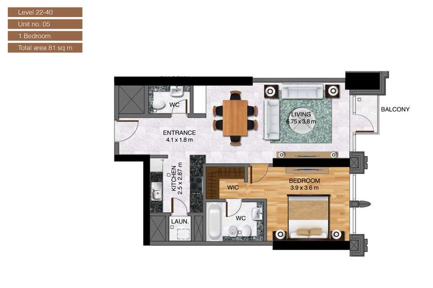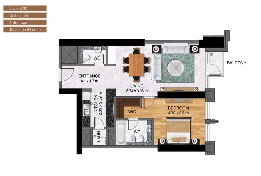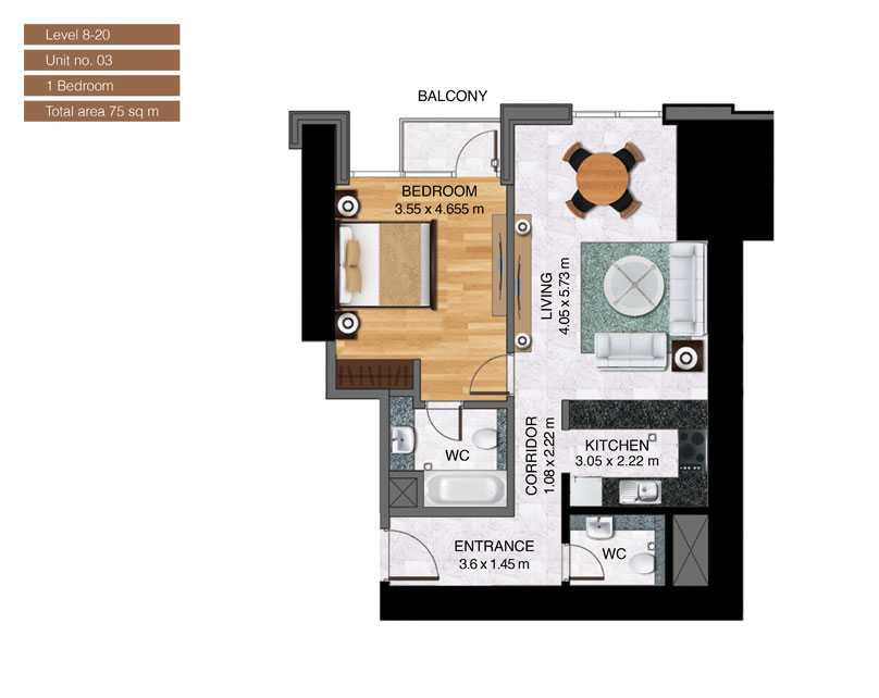 The Residence Collection has over a thousand apartments. The largest pool deck in the United Arab Emirates,is one of the shared amenities. Other features include a yoga studio, a tennis academy featuring an indoor air-conditioned court, a clinic, a crèche, and a supermarket. Twelve penthouses, including two top floors with private party areas, are part of "The Ultimate Collection," three of which are four-story VIP penthouses.