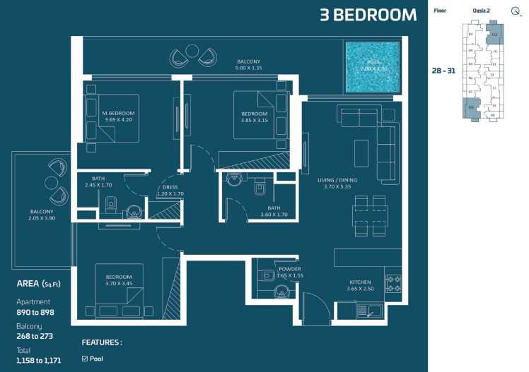 In the prime location of Dubai Silicon Oasis, Danube Properties is building another upscale residential property called Oasiz. With a towering height of 38 stories, the project seamlessly blends elegance, convenience, and innovation in every facet of its design and functionality. Every apartment, whether it is a studio, one, two, or three-bedroom home, is meticulously designed down to the last detail. Open floor plans throughout the rooms create an air of spaciousness, and huge windows let in plenty of natural light.