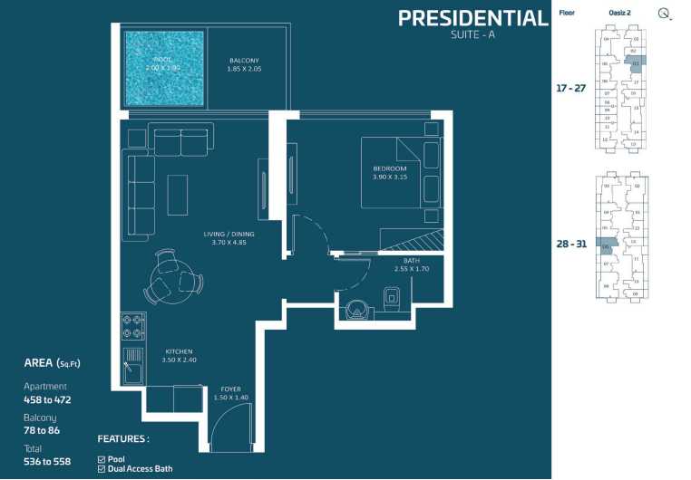 The building is well located in Dubai Silicon Oasis, inside a gated community that guarantees easy access to all of Dubai's major attractions. Major thoroughfares like Sheikh Mohammed Bin Zayed Road and Dubai-Al Ain Road are close by, making it simple to go from the property to locations like Downtown Dubai, the Dubai Mall, and Dubai International Airport. The project's strategic position also affords it easy access to a thriving neighborhood, prestigious educational institutions, and cutting-edge innovation firms.