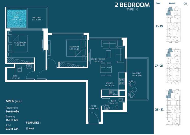 The thoughtful design of the amenities improves the quality of life. Every feature, including a cool deck and peaceful pool, a fully equipped gym, and beautifully designed gardens, has been thoughtfully designed to cater to the diverse demands of potential buyers. It also has several common places for socializing and a children's play area. For added convenience, the project features plenty of parking spots, round-the-clock security, and concierge services.