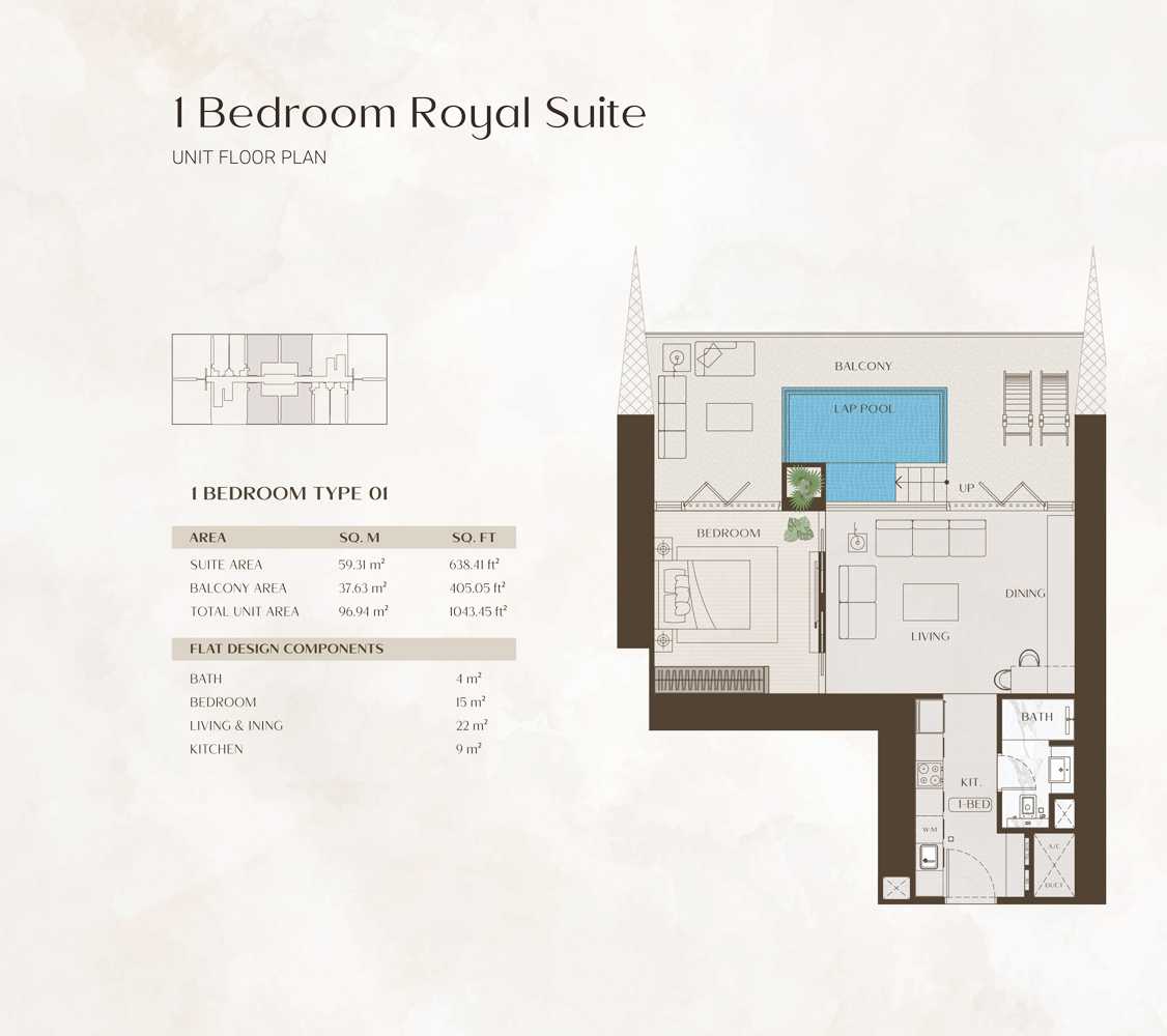 Experience Elevated Waterfront Living at Business Bay with One by Binghatti Developers, a brand-new residential community including studios, one-, two-, and three-bedroom apartments and four-bedroom royal penthouses. With its breathtaking architecture and unmatched amenities, this upscale property redefines modern living by embracing a sophisticated and luxurious lifestyle right amid the scenic waterfront. Every aspect of the building, from the brass finishes to the crystalline glass facades, is meant to improve the quality of life for the occupants by creating a chic yet tranquil setting.
