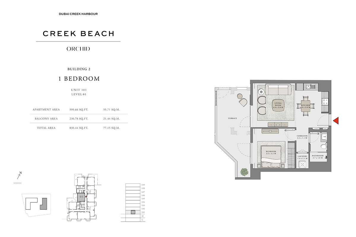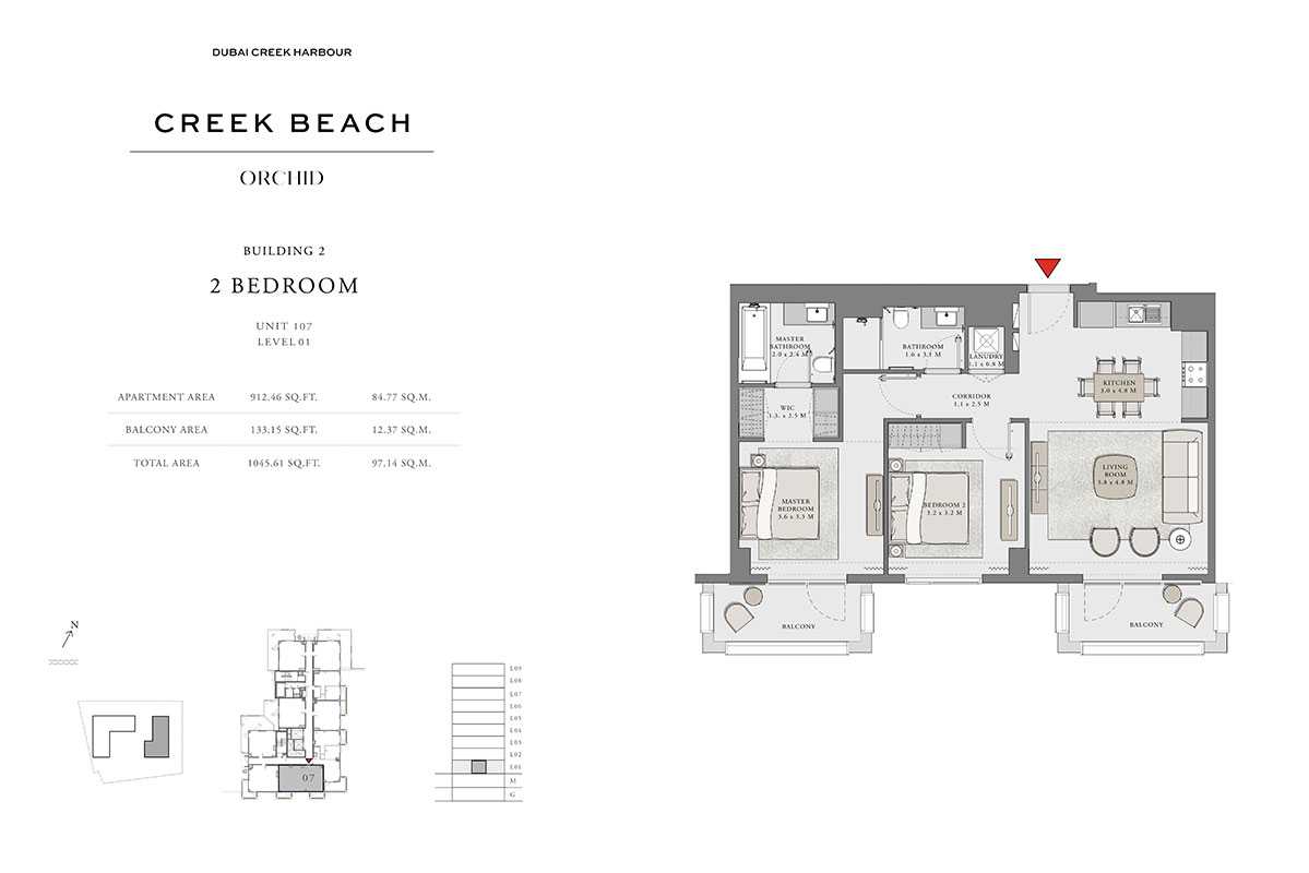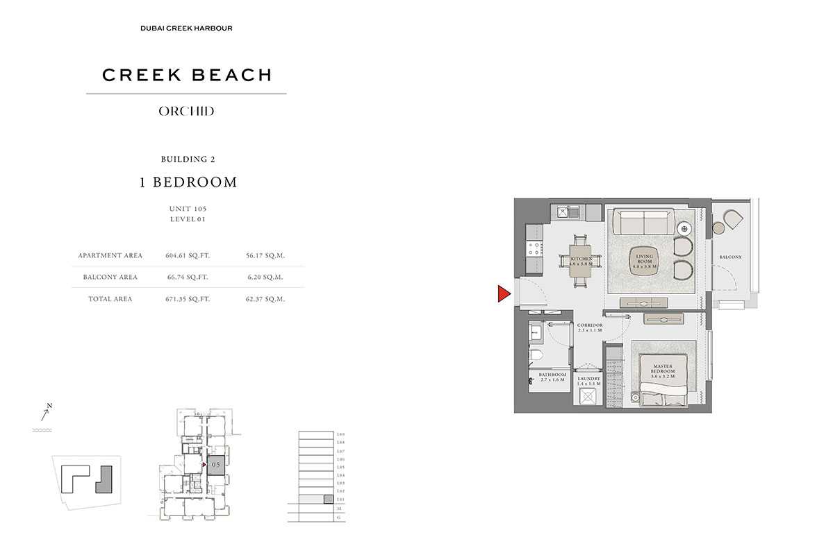 With its ideal position in the center of Dubai Creek Harbour (The Lagoons), Orchid provides inhabitants with quick access to all of the city's main attractions. Here, you may experience the best of both worlds: the peaceful tranquility of the beach and the vibrant pulse of city life.
