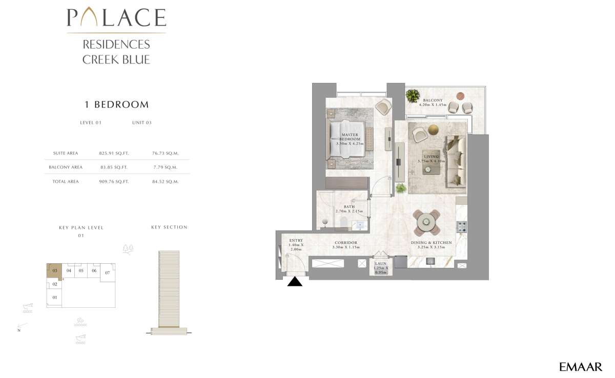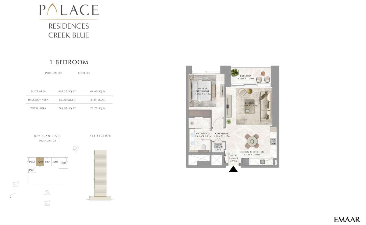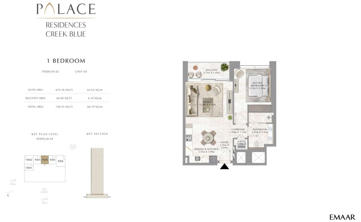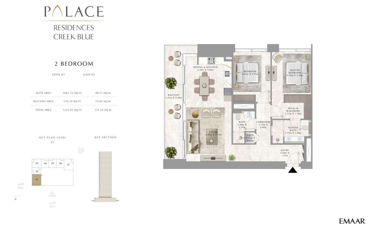 Palace Residences Creek Blue is tucked away in Creek Beach near Dubai Creek Harbour. This complex was built by Emaar Properties and represents the grandeur and elegance that define the Palace brand.