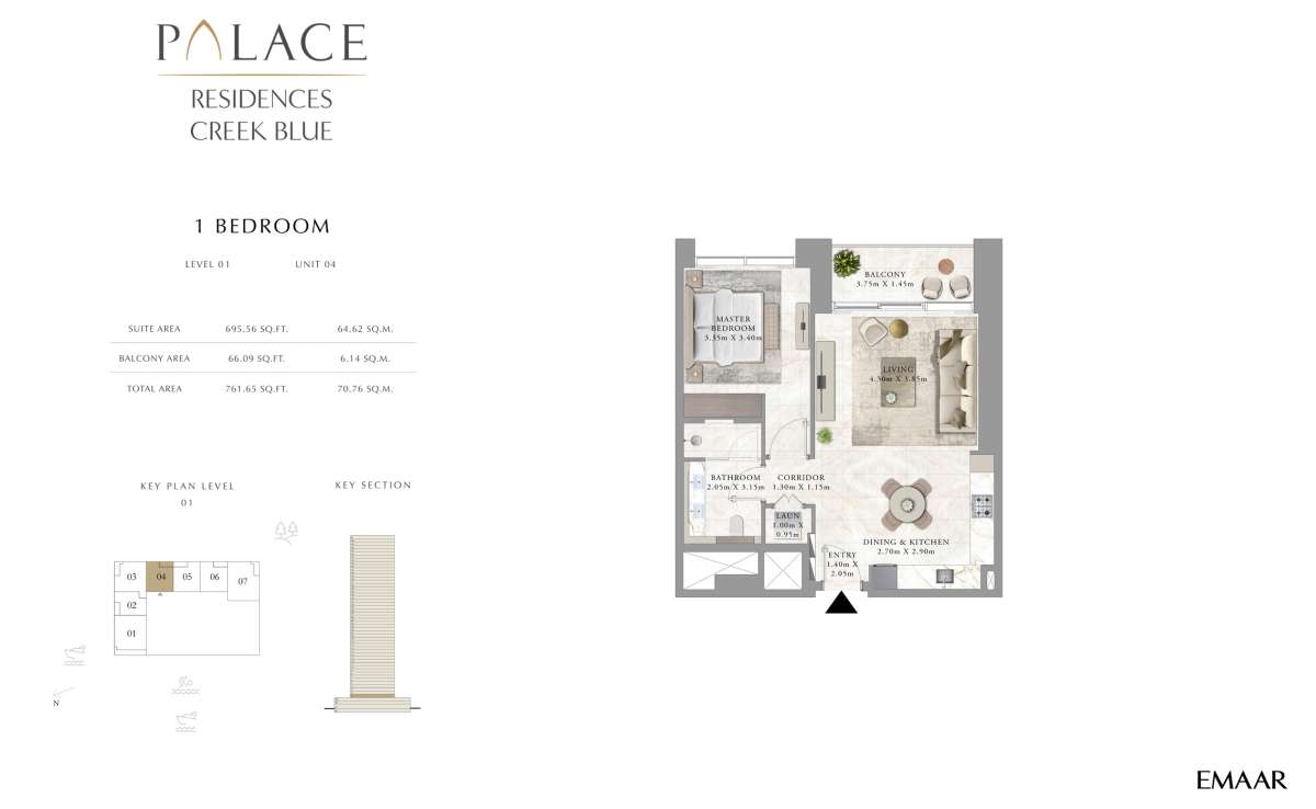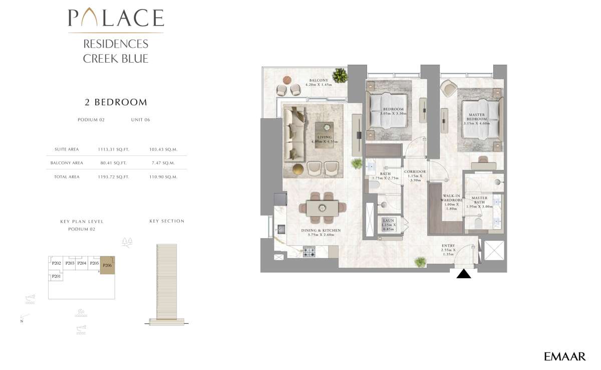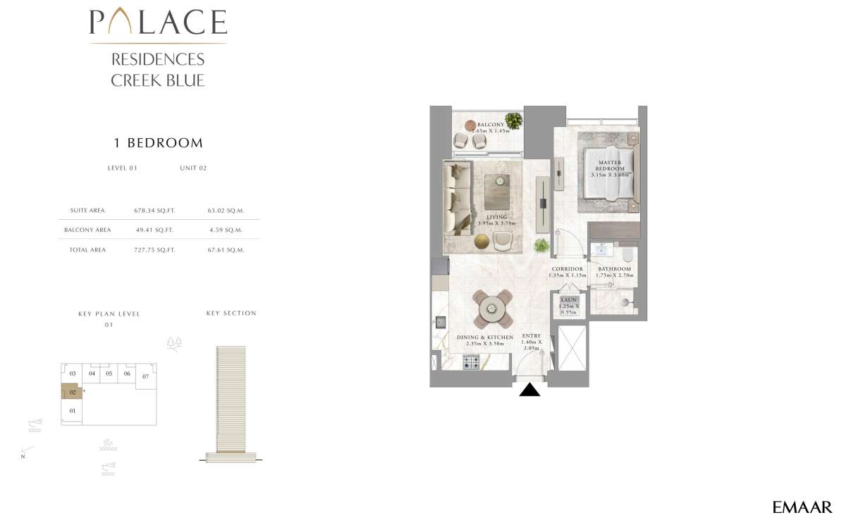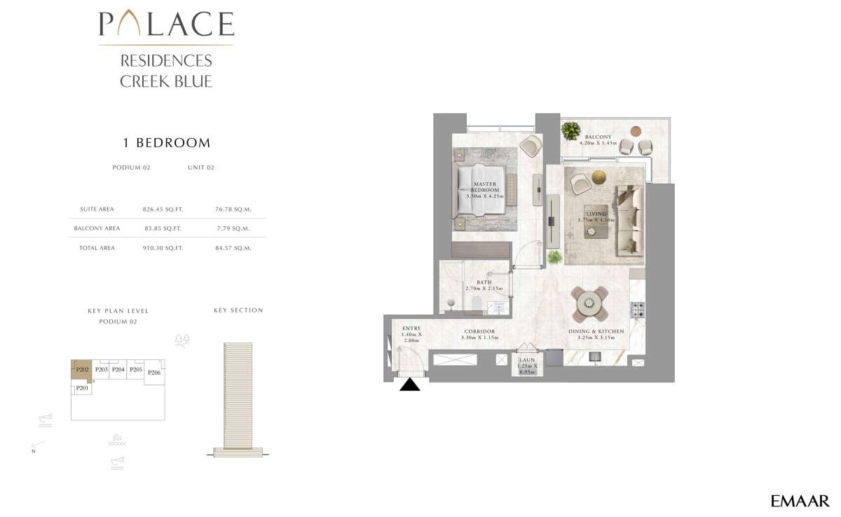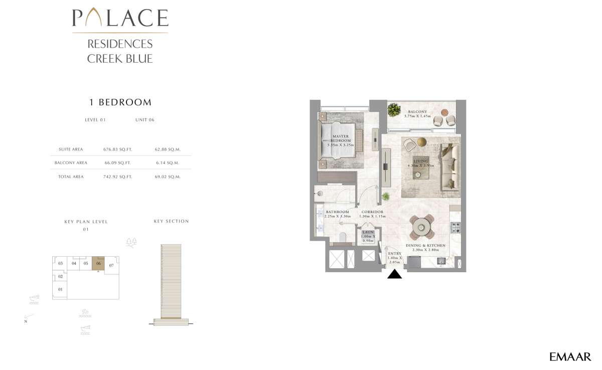 Palace Residences Creek Blue is tucked away in Creek Beach near Dubai Creek Harbour. This complex was built by Emaar Properties and represents the grandeur and elegance that define the Palace brand.