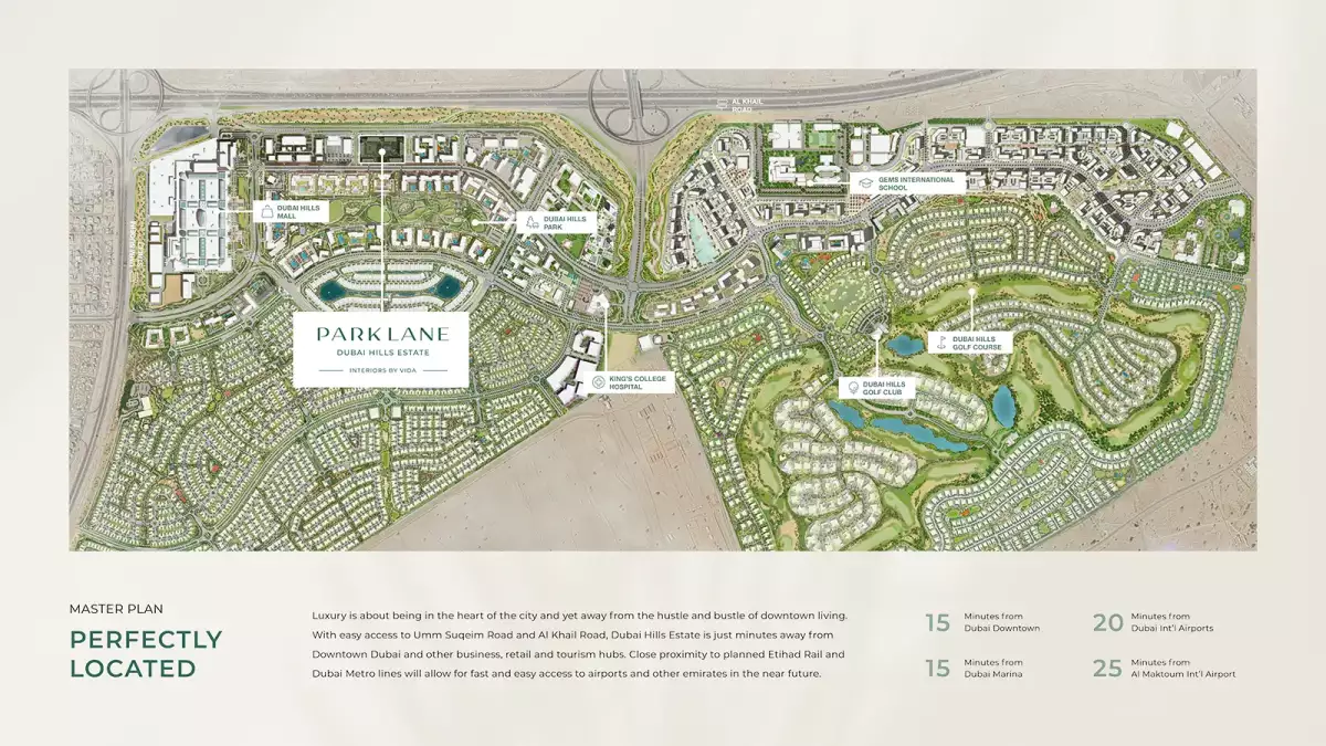 Park Lane Building 3, located within the prestigious Dubai Hills Estate, offers a sophisticated collection of 1, 2, and 3-bedroom apartments. Developed by Emaar Properties, this residential gem combines modern elegance with serene natural beauty. Here’s what you need to know: