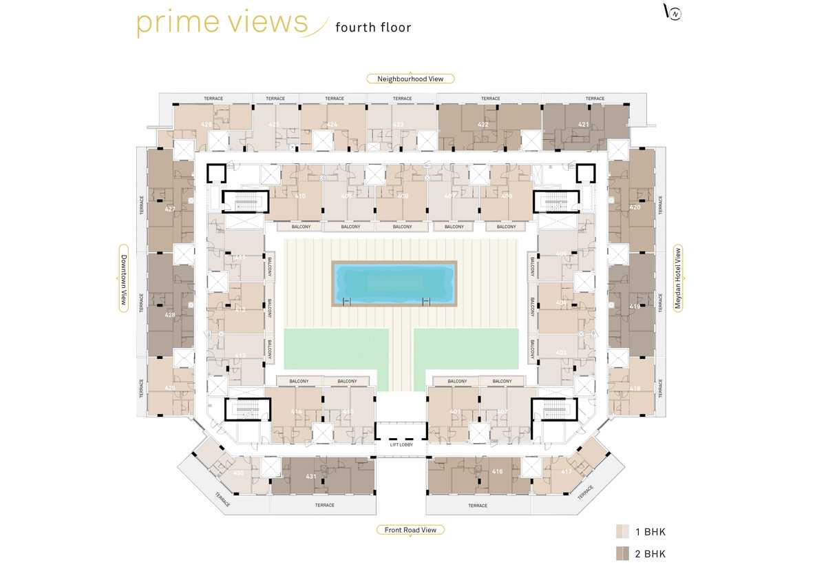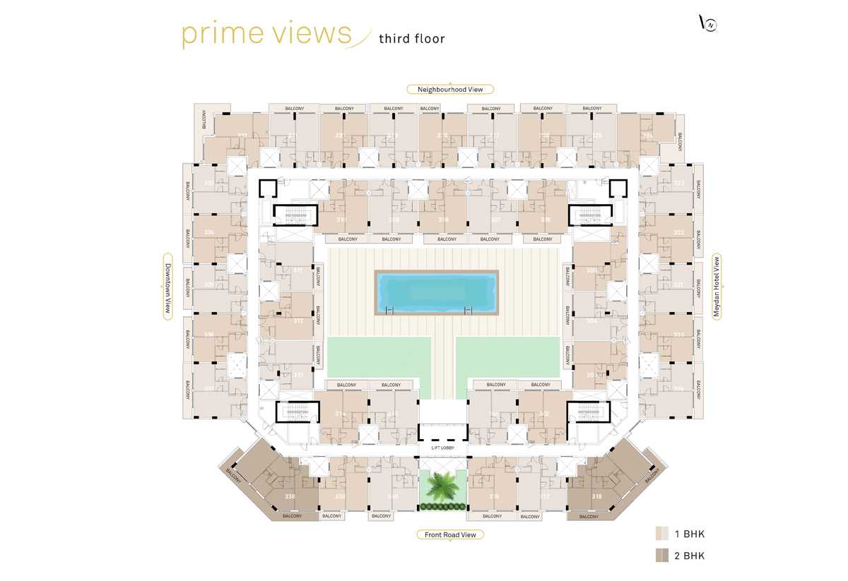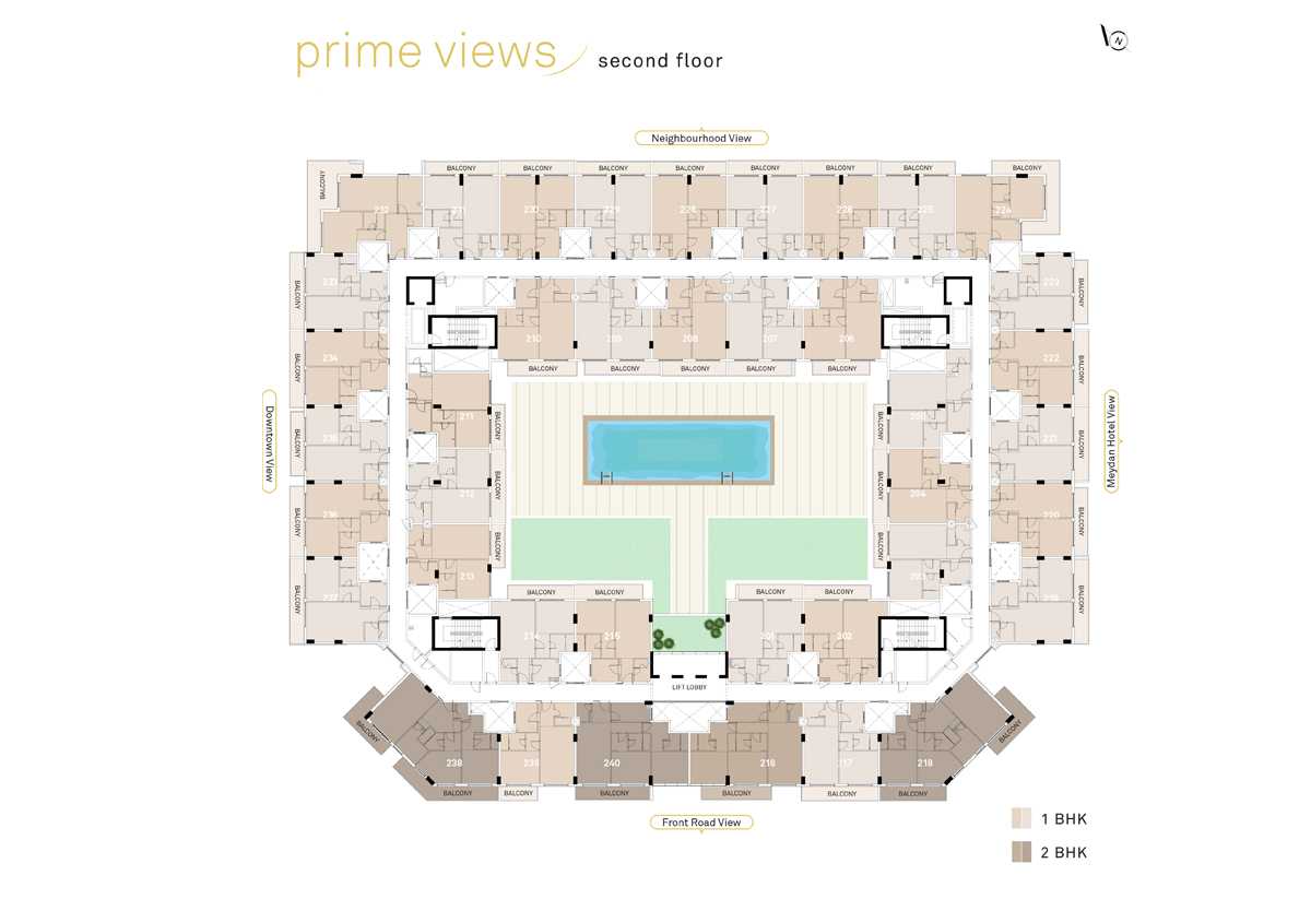 At Prime Views, live the good life. Prime Views, a modern residential complex in the center of Meydan Avenue, is intended to provide an urban lifestyle with a striking Dubai Downtown skyline on one side and a distinctive horse racing backdrop on the other.