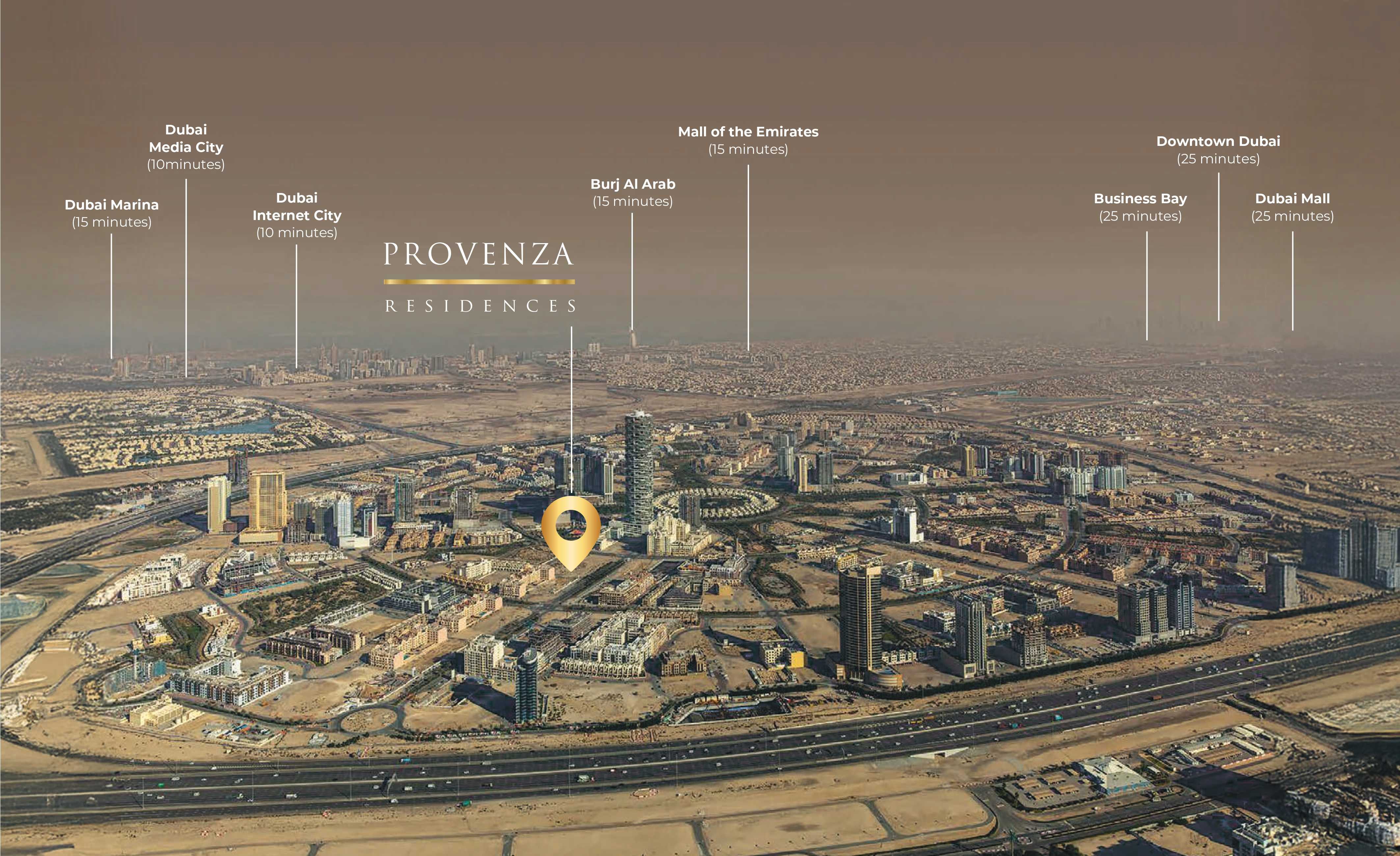 Nestled in the heart of District 14 within Jumeirah Village Circle, Provenza Residences occupies a prime position along a well-connected arterial road. With quick access to Al Khail Road and Hessa Street, commuting to Downtown Dubai, Dubai Marina, and the Expo 2020 site is seamless. Residents enjoy proximity to top schools, retail outlets, dining, parks, and the celebrated Circle Mall—all within a few minutes’ drive.