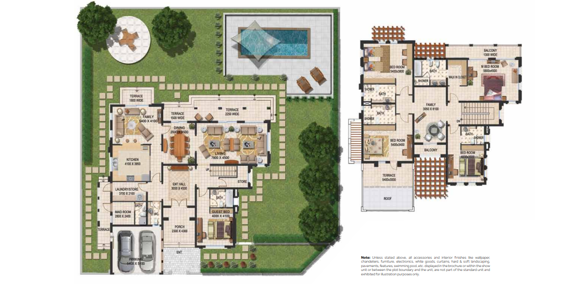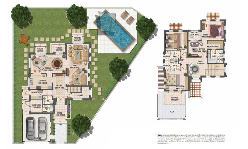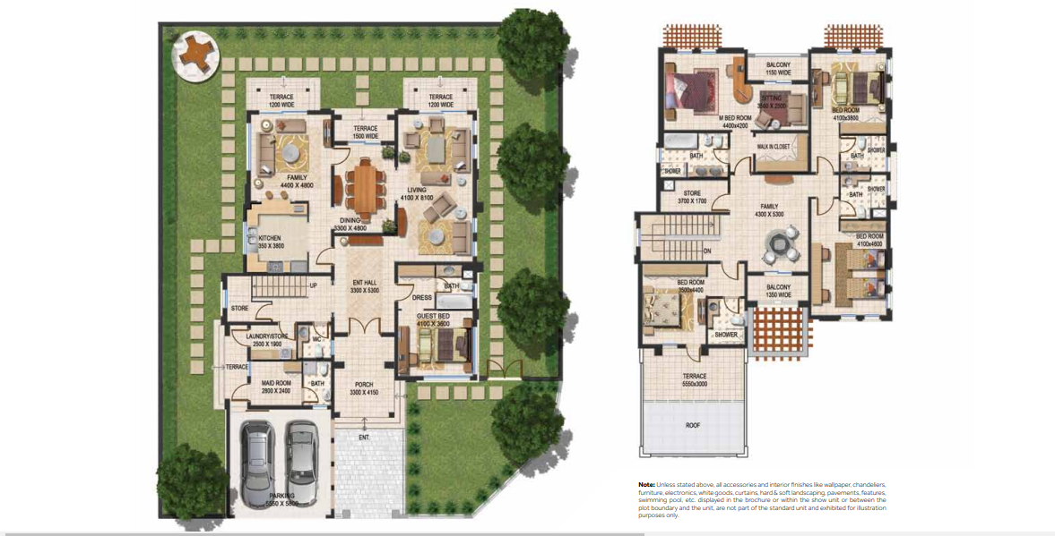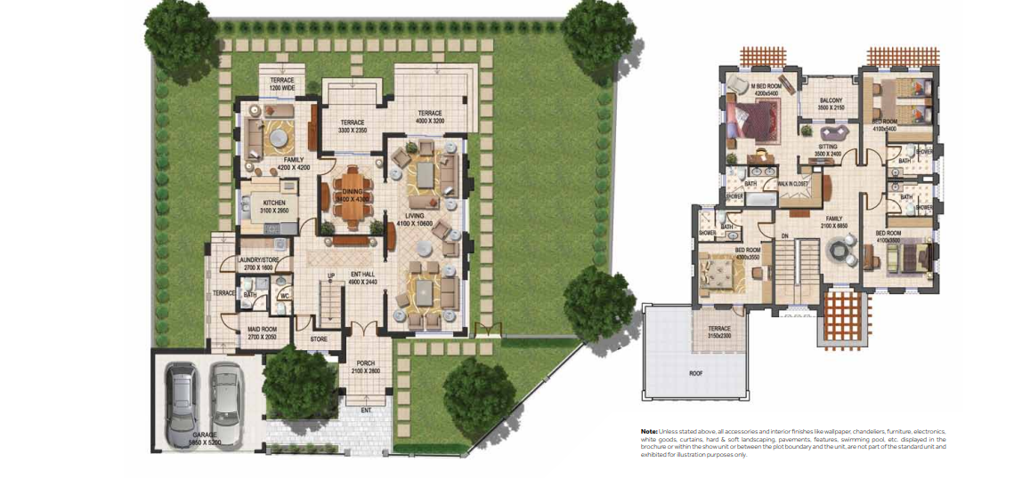 The 3, 4 and 5-bed houses in Rahat are built with Arabian-themed layouts and optimal usage of space. Set on a parkland, these properties are arranged around courtyards and come with their own private green spaces. The size of the three-bed villas lies between 3,716 sq. ft. and 4,260 sq. ft., while the four-bed houses measure around 4,755 sq. ft. Bigger families can go for five-bed villas that have a covered area of around 5,457 sq. ft. – 5,760 sq. ft.