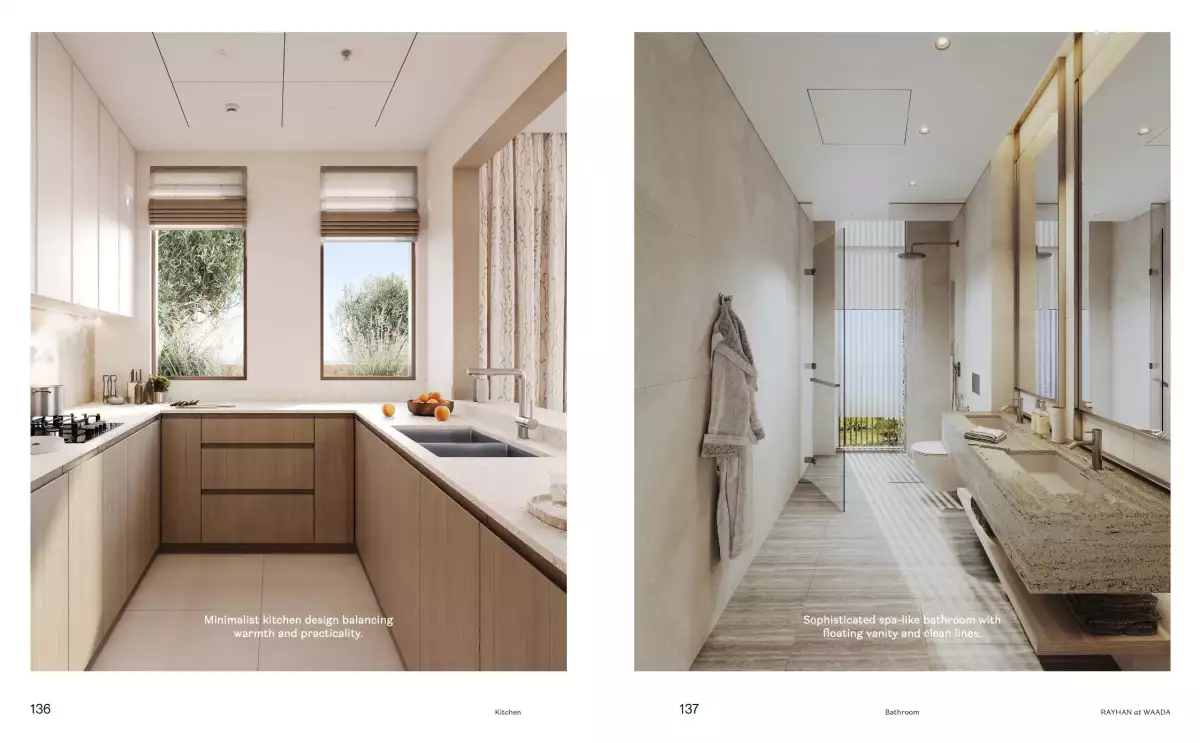The design of Rayhan 1 draws inspiration from the timeless beauty of Fairy Meadows, creating an atmosphere of elegance, order, and harmony. The modern, clean architectural style is complemented by warm, nature-integrated elements. Townhouses are arranged thoughtfully in intimate clusters along tree-lined streets and pathways, balancing community living with privacy. Mediterranean-inspired facades, corner glazing, and private garden access fill interiors with natural light and a sense of tranquility.
