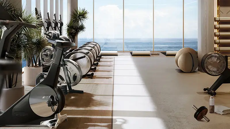 - The connection to the seaside is enhanced by stunning interiors with coastal elegance, exquisite wood finishes, and a calm color scheme.