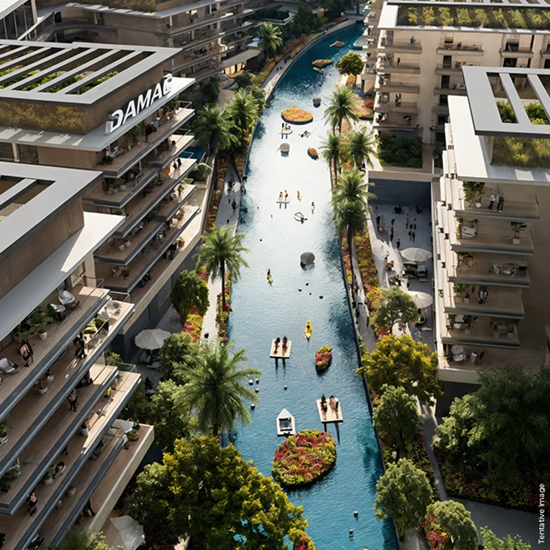 DAMAC's hallmark project within the upscale DAMAC Riverside is Riverside Views Azure 1. With well-designed luxury residences that harmoniously blend modern elegance and natural cocooning, the property offers some of the best waterfront living experiences. Additionally, residents of this community will have access to a Zen spa, hydroponic farms for domestic vegetables, and lakes scented with aromatic oils for relaxation.