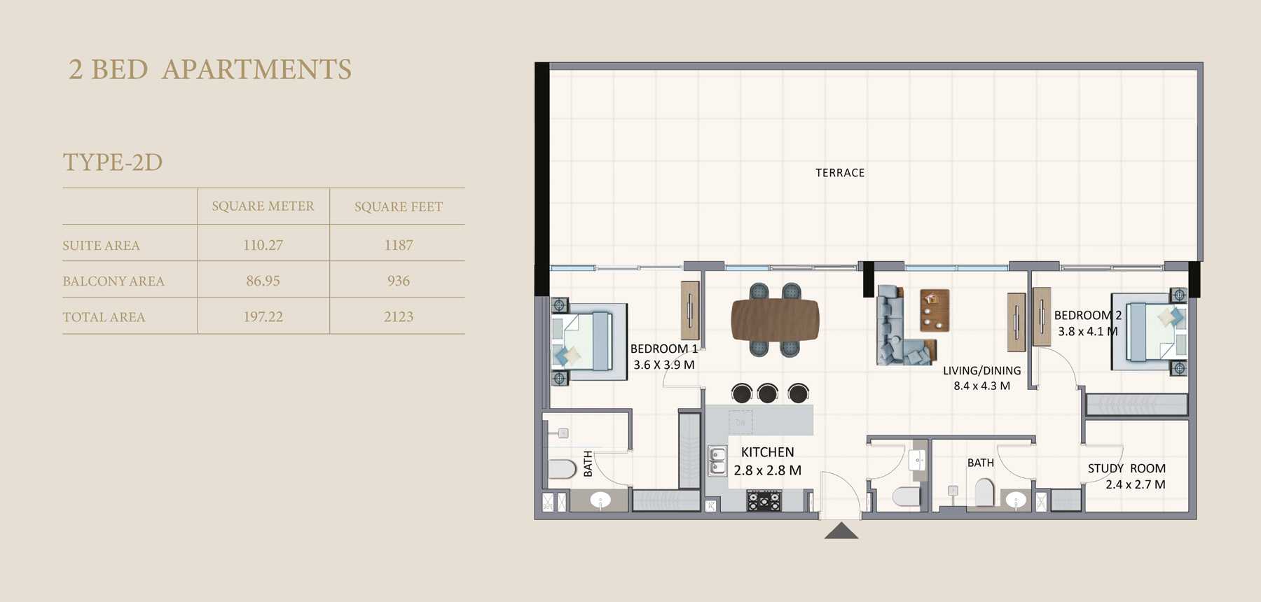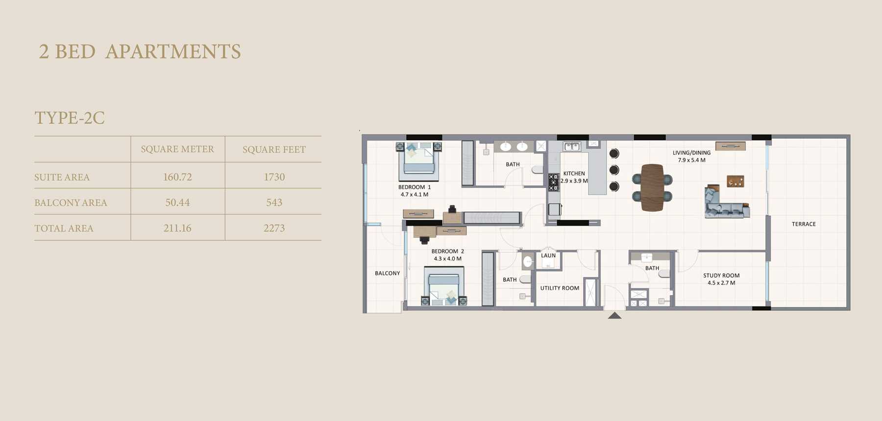 - Well-designed one- and two-bedroom apartments with a range of layouts to accommodate families and single people, each featuring a study space for added convenience.