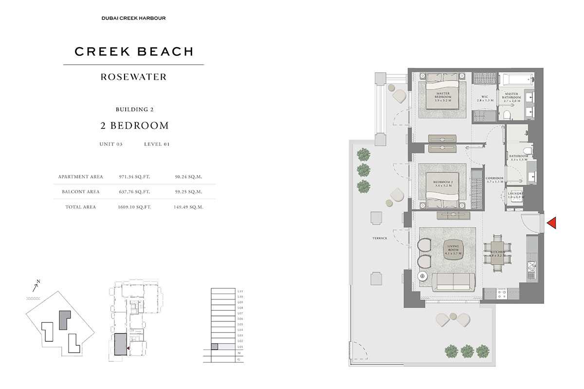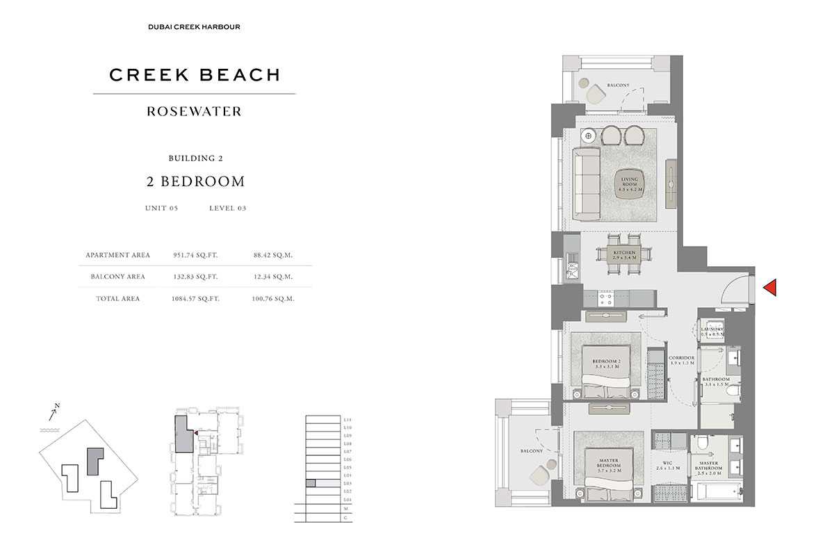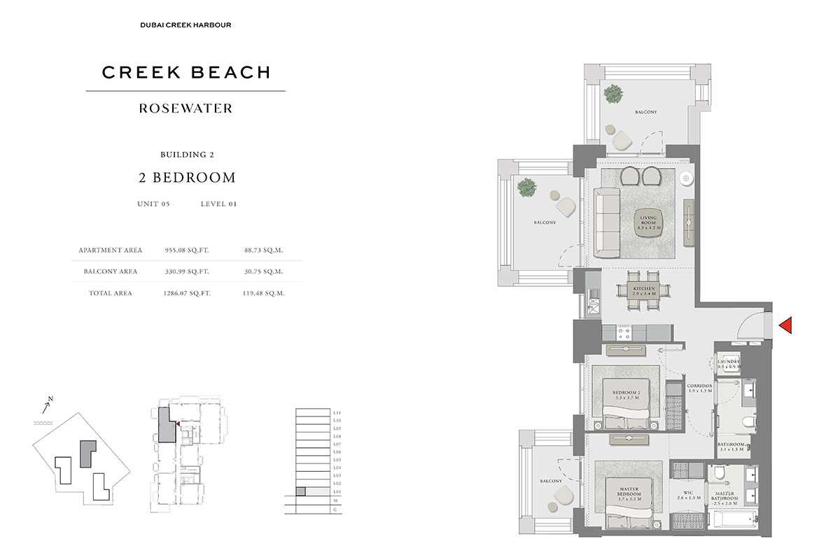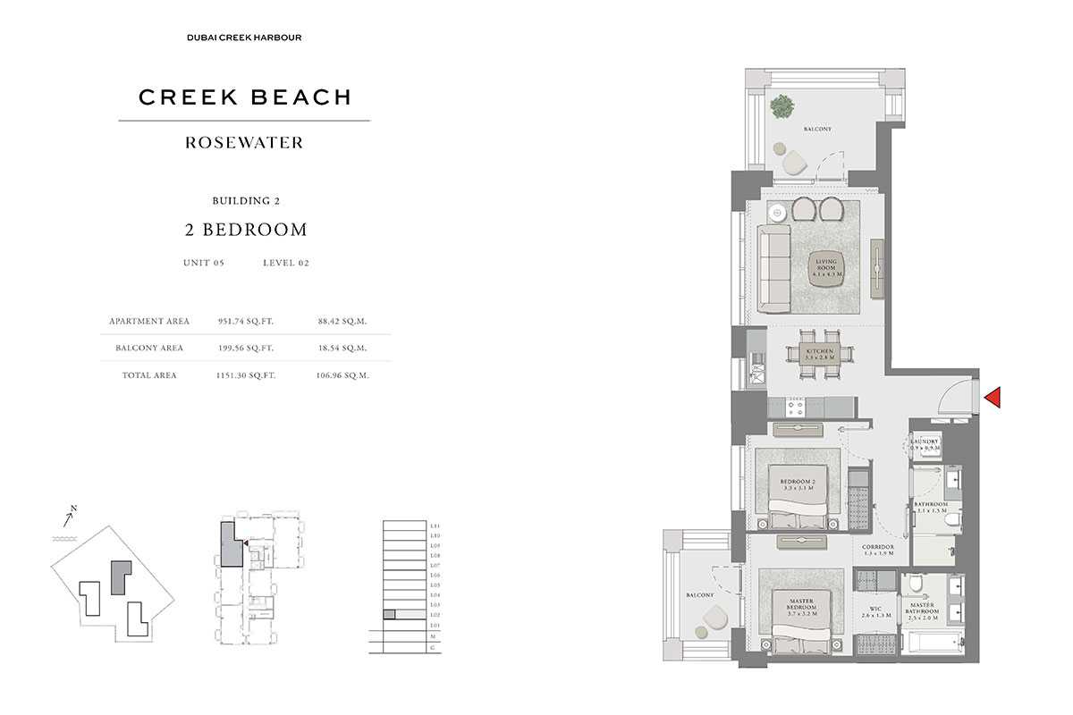 The most recent project from Emaar Properties is Rosewater at Creek Beach, which provides tastefully decorated beachfront villas in Dubai Creek Harbour, United Arab Emirates. Following Grove's enormous success, this is a brand- new building with three high-rise residences.