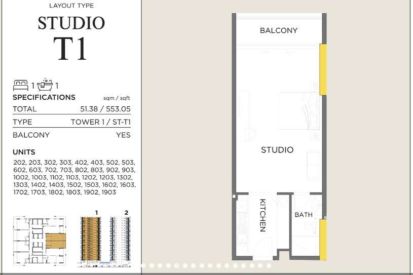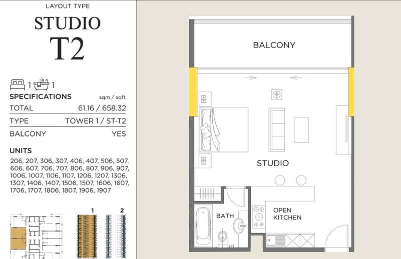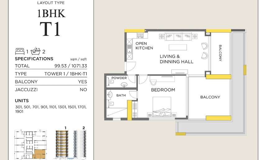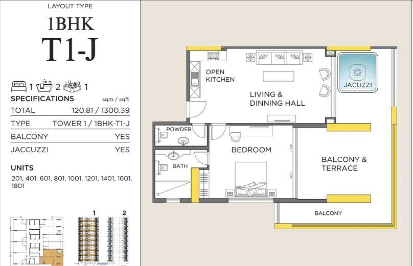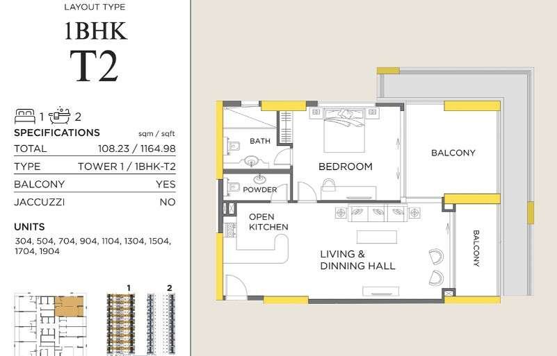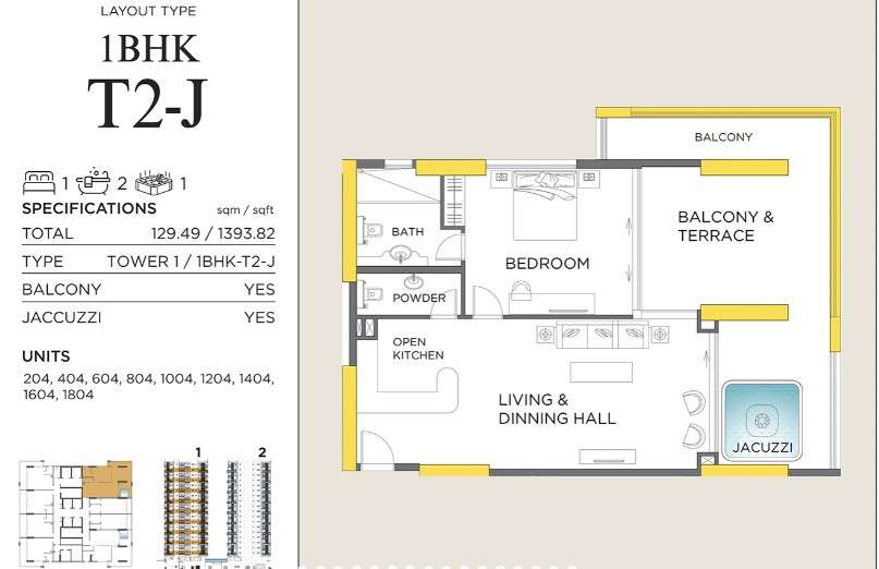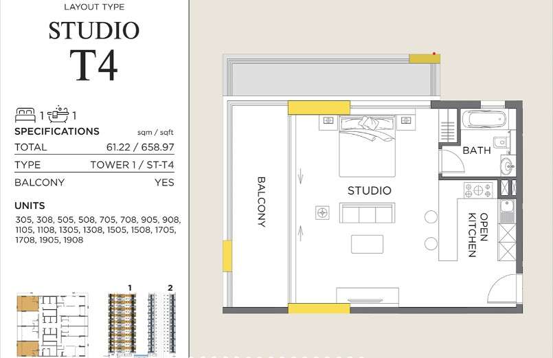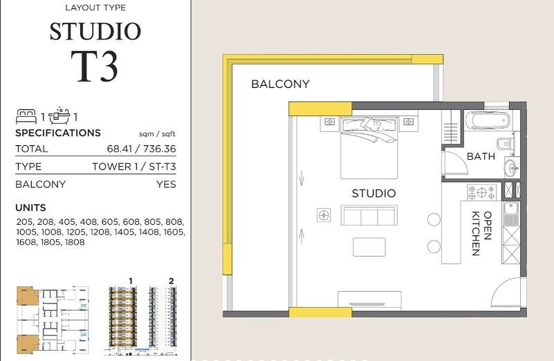Rising with architectural sophistication, the tower features striking modern design elements highlighted by expansive floor-to-ceiling windows, premium Italian finishes, and meticulously crafted interiors. Each residence—whether a cozy studio, a spacious one-bedroom suite, or an opulent multi-bedroom home—is thoughtfully designed to deliver an exceptional living experience marked by refinement and functionality.