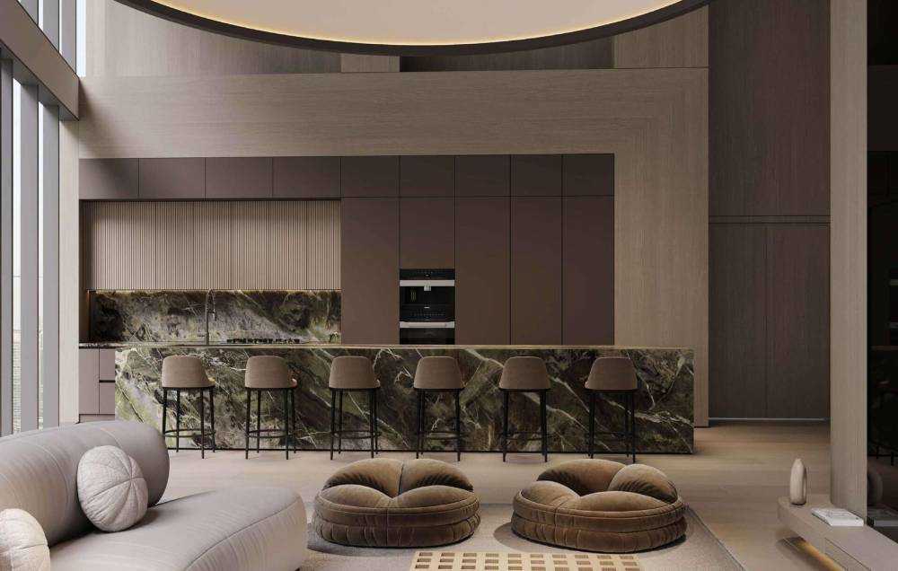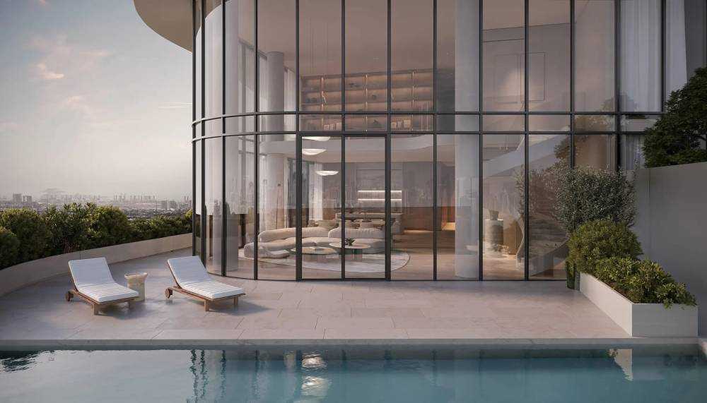 SAAS Hills raises the bar for opulence as the only home in Dubai with a private indoor pool. A 33-foot-tall waterfall that spans 2,153 square feet highlights its distinctive curved architectural shape, making it a visually arresting landmark in Dubai's real estate market.