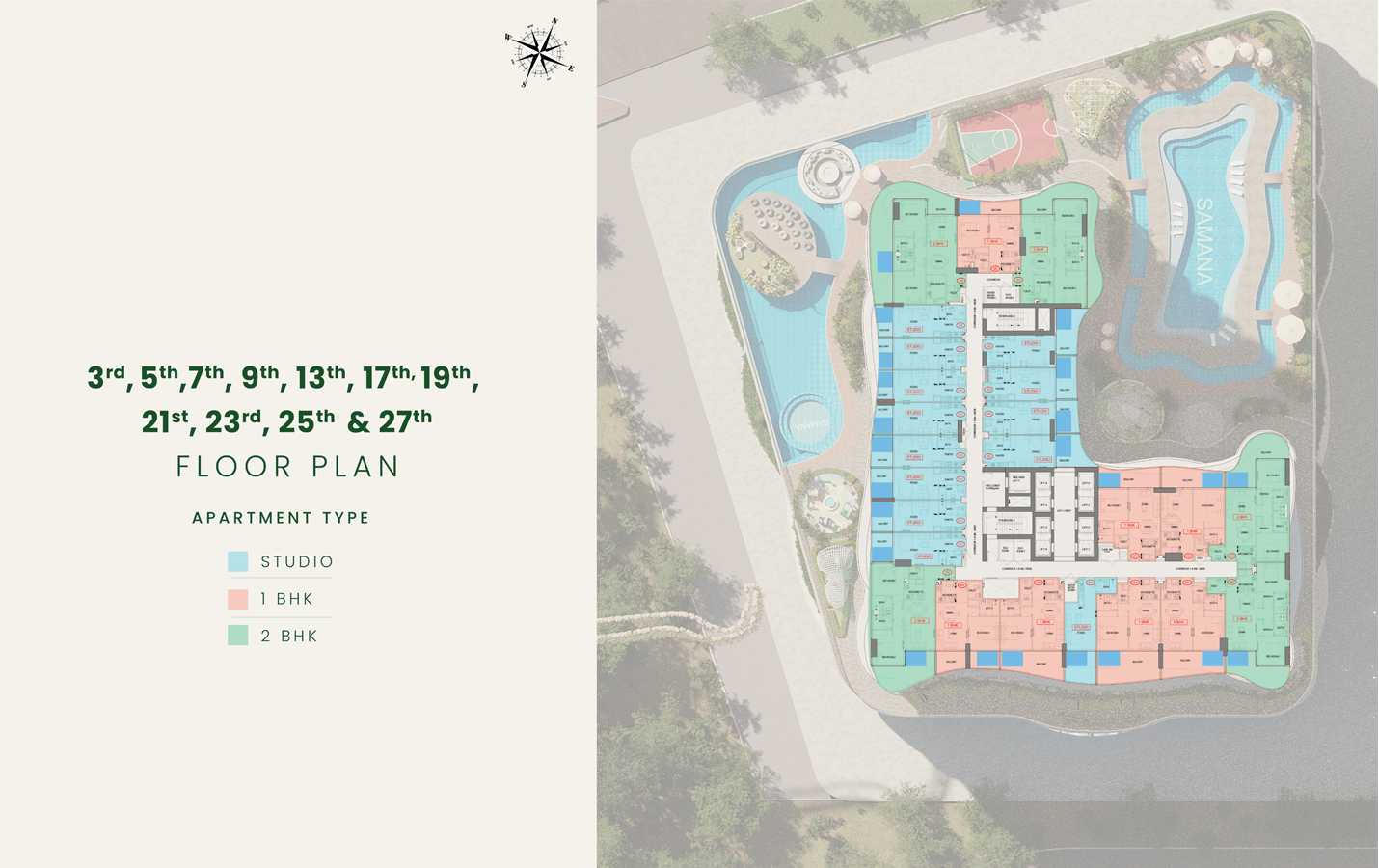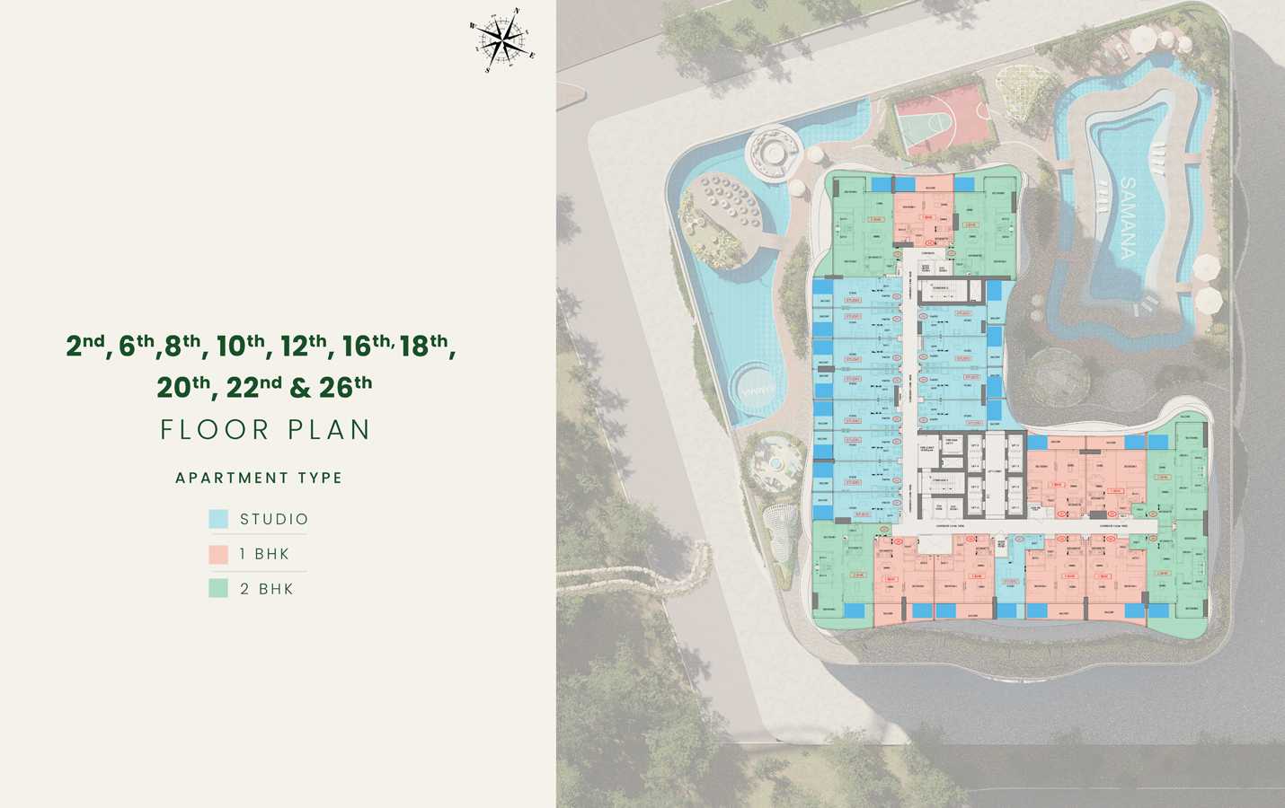 The development puts the comfort and well-being of its residents first. To that end, it offers round-the-clock security, parking, a surveillance system, and a firefighting system. An active and social lifestyle is encouraged with the outdoor gym, swimming pool, and community space. The property has been well-planned to provide a comprehensive living environment that meets the needs of all residents.