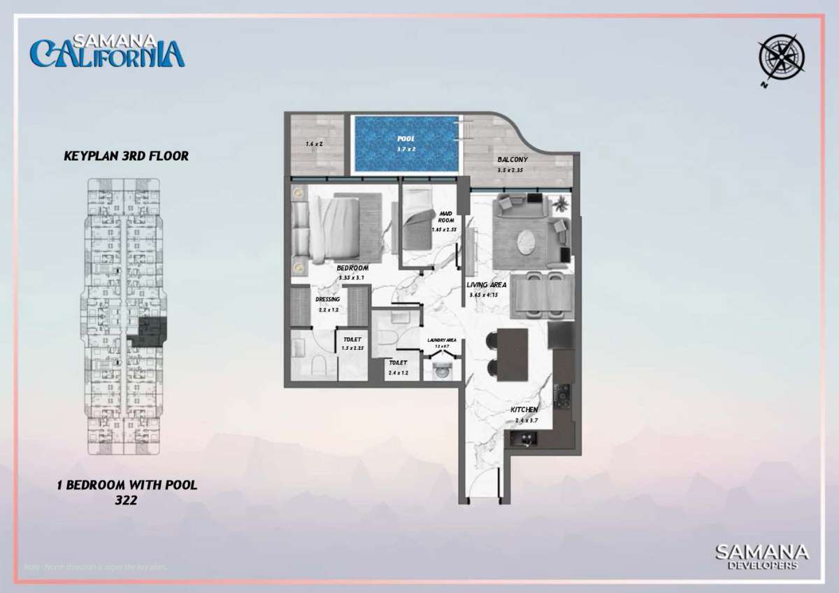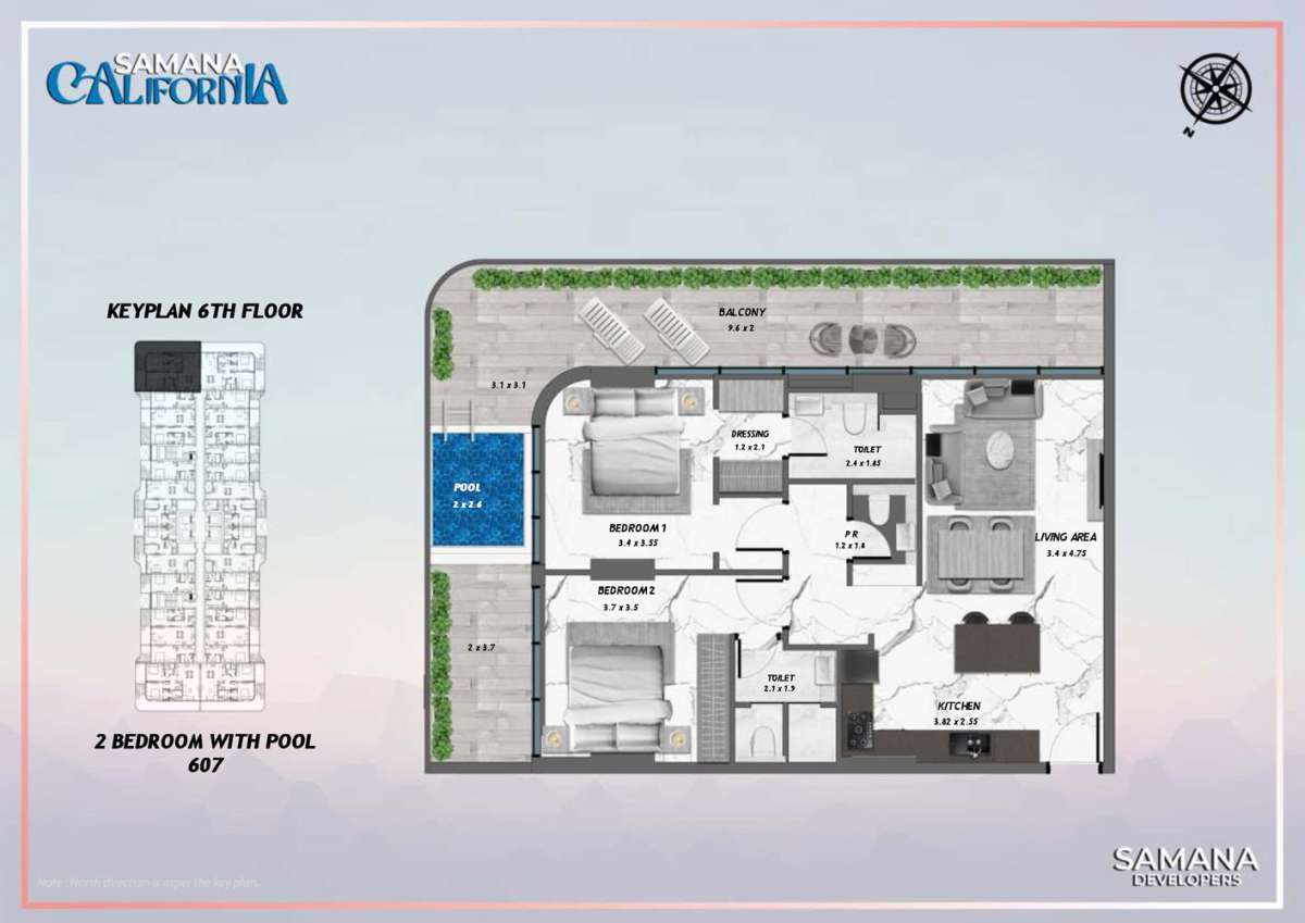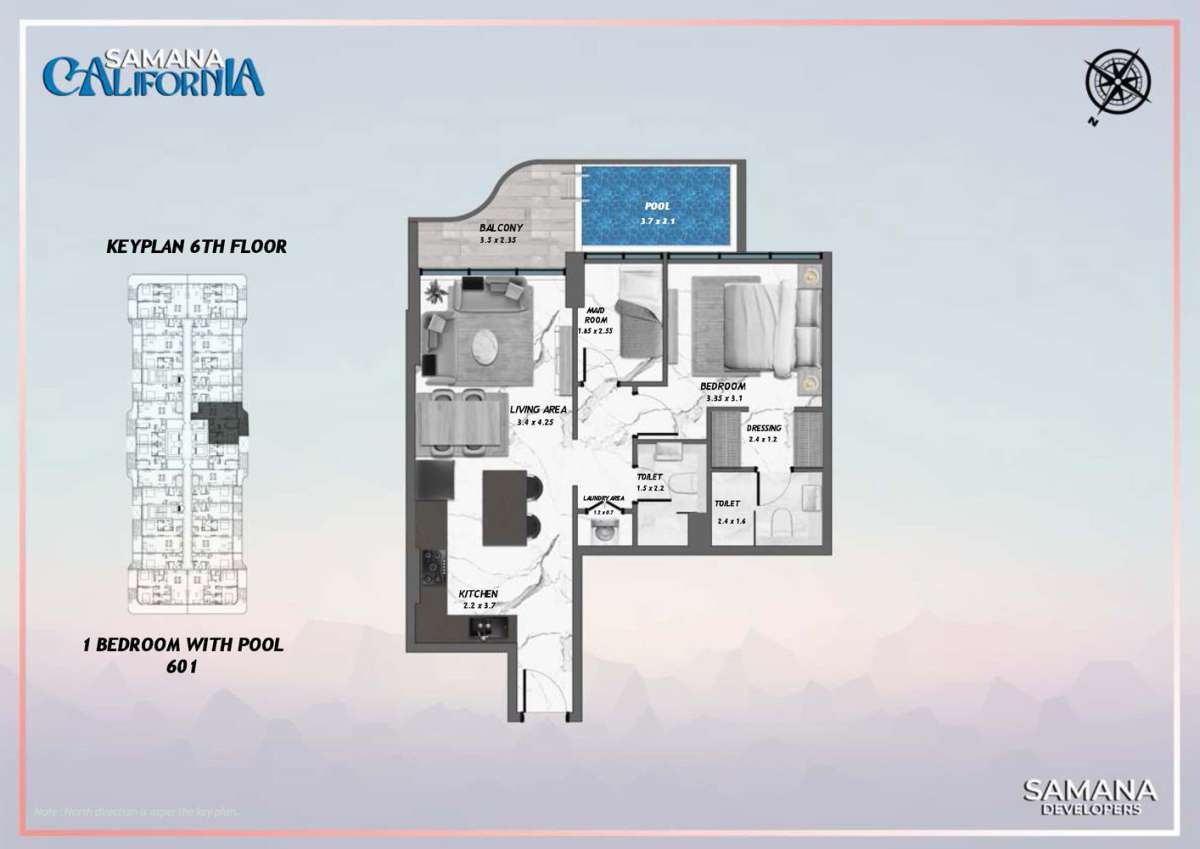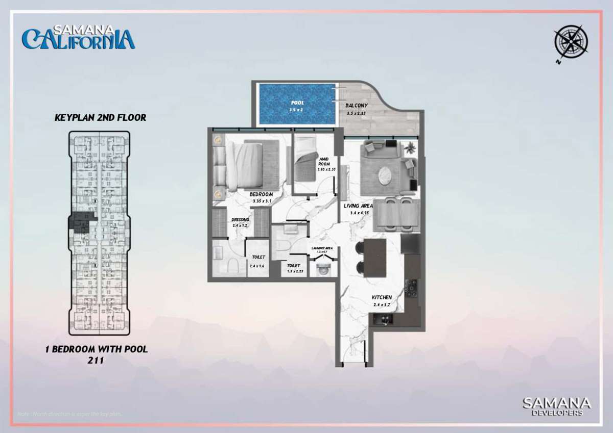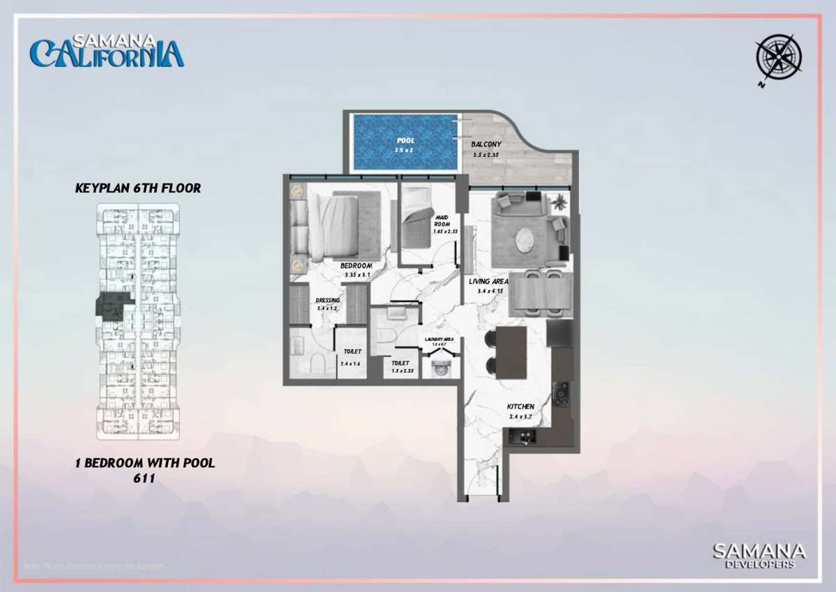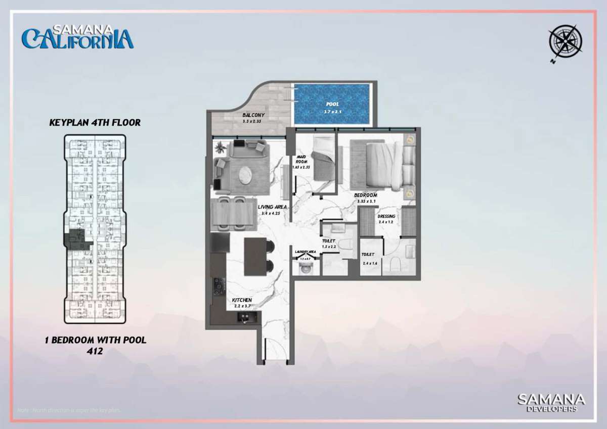 The renowned Samana Developers' most recent real estate marvel is Samana California. In the center of Al Furjan, one of Dubai's most desirable neighborhoods, this 11-story residential masterpiece redefines luxury living.