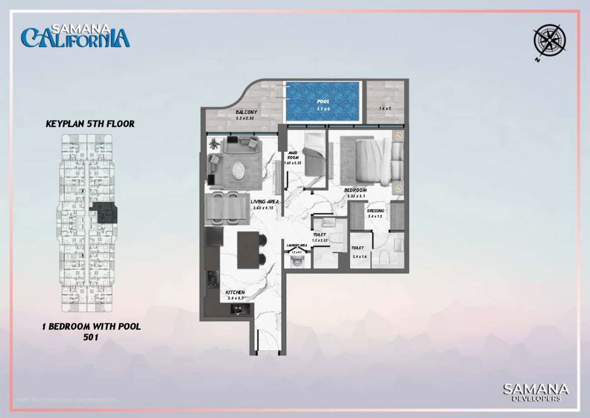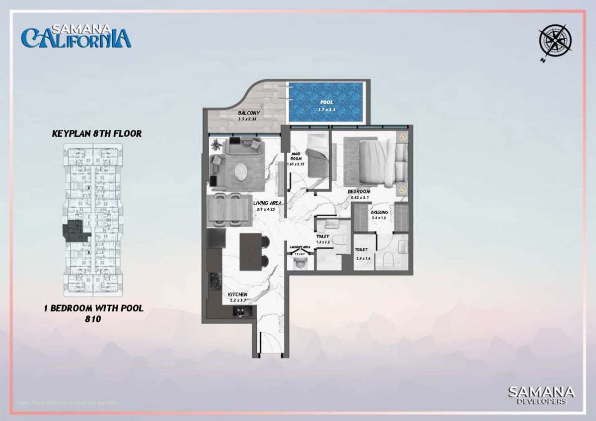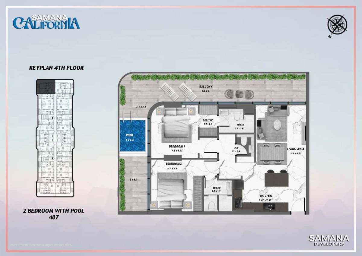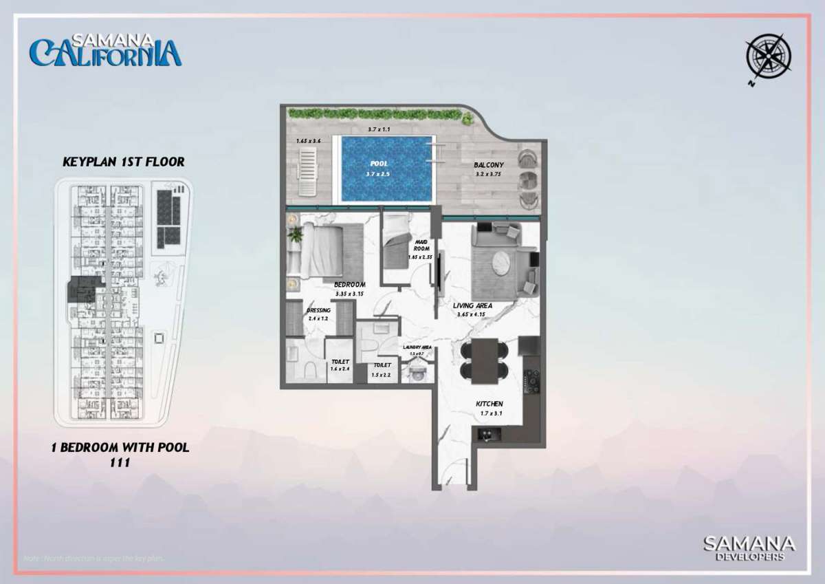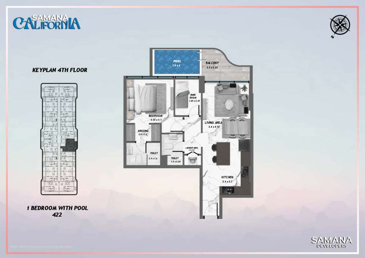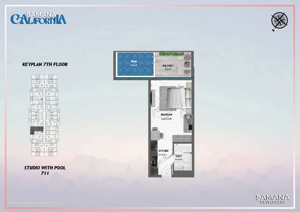 The renowned Samana Developers' most recent real estate marvel is Samana California. In the center of Al Furjan, one of Dubai's most desirable neighborhoods, this 11-story residential masterpiece redefines luxury living.