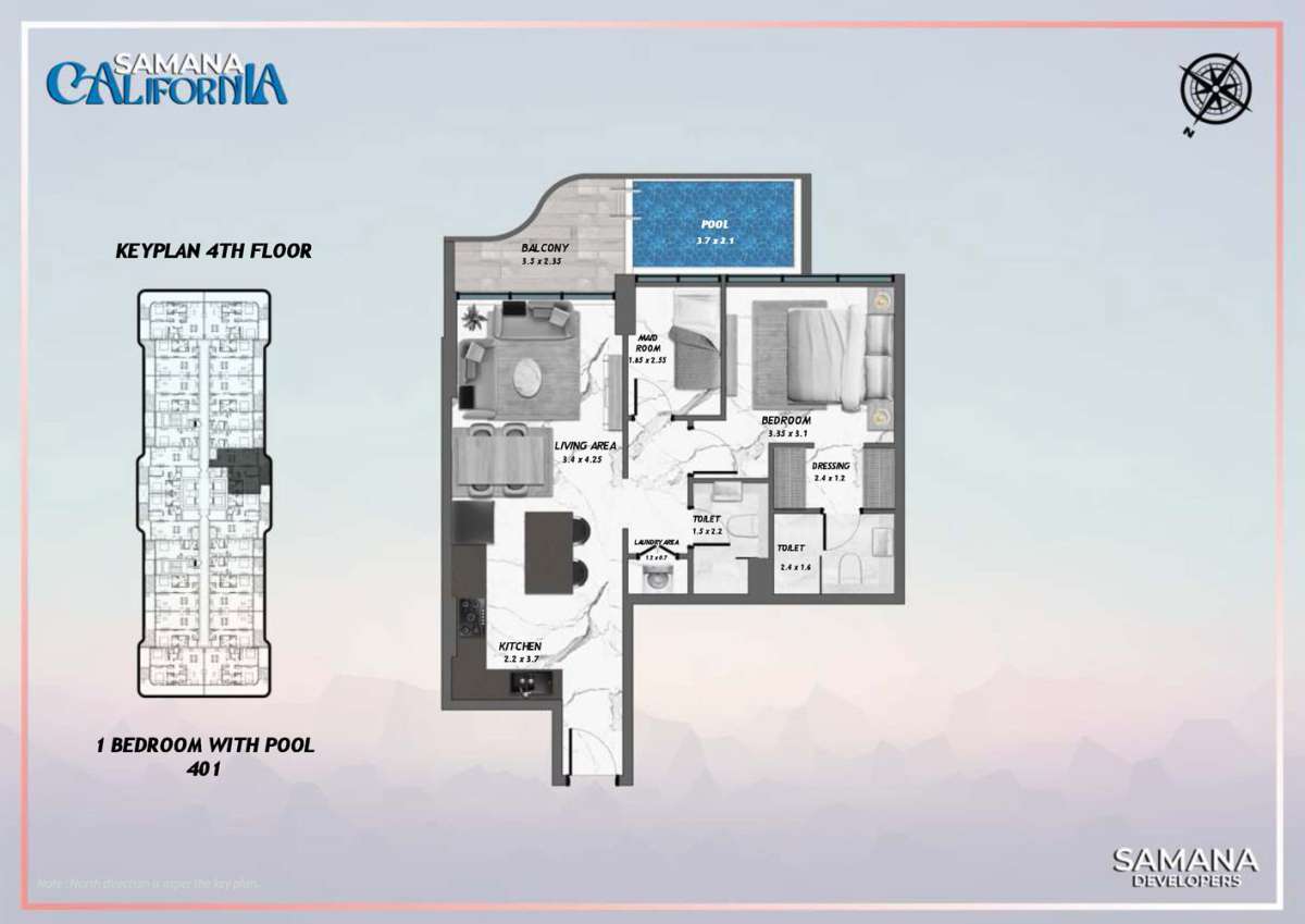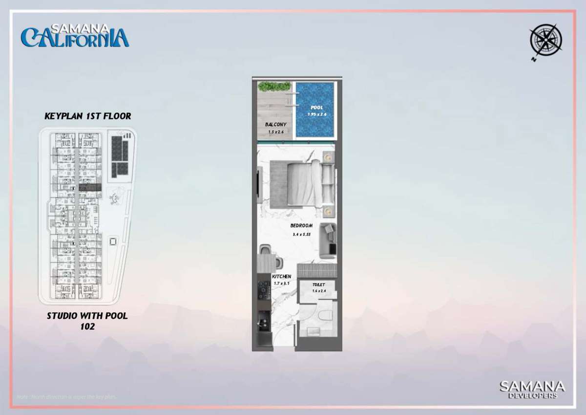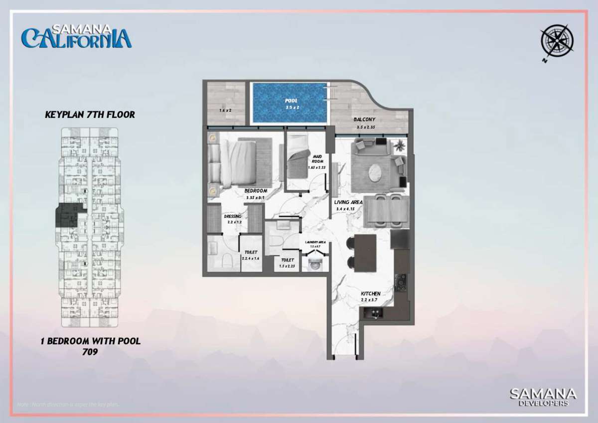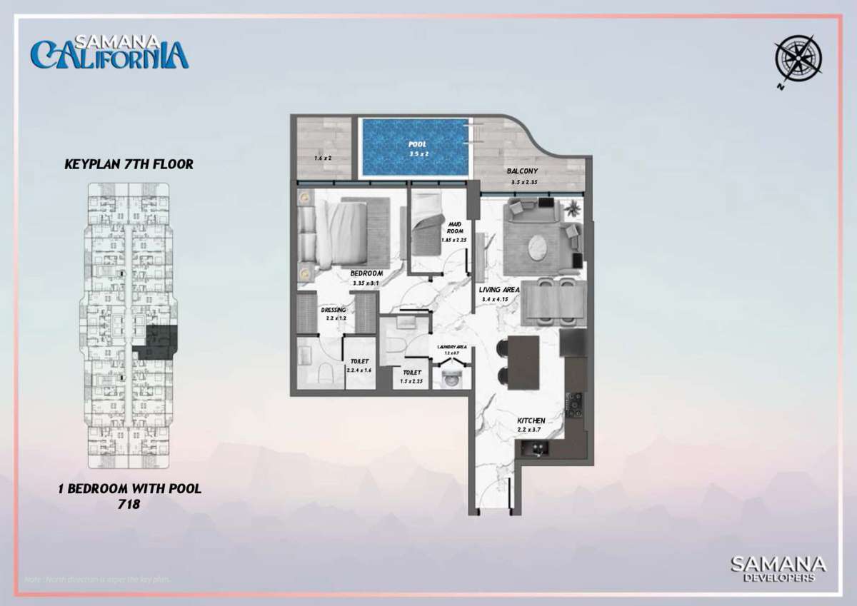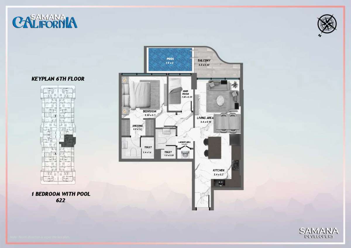 The renowned Samana Developers' most recent real estate marvel is Samana California. In the center of Al Furjan, one of Dubai's most desirable neighborhoods, this 11-story residential masterpiece redefines luxury living.