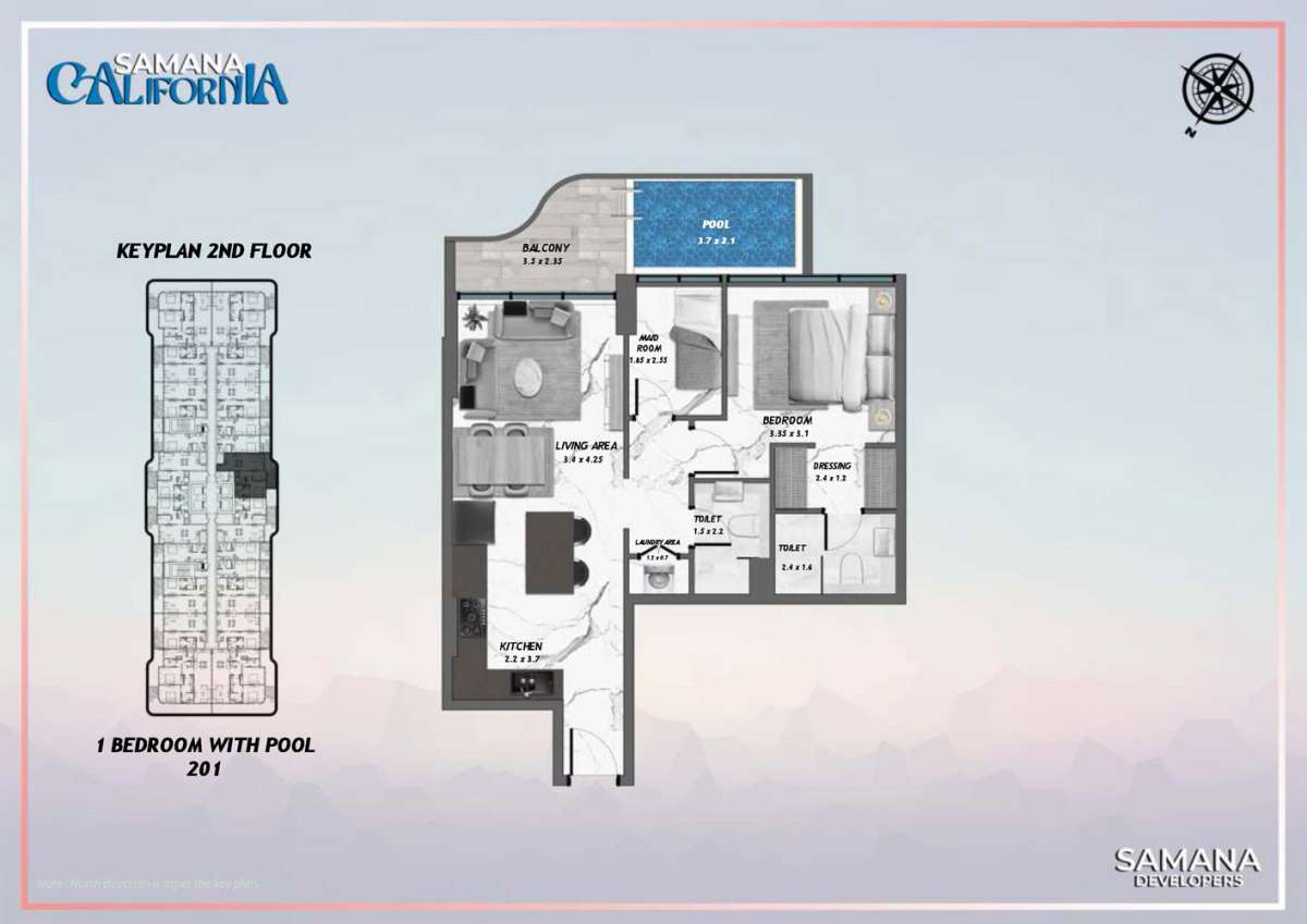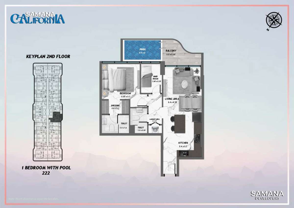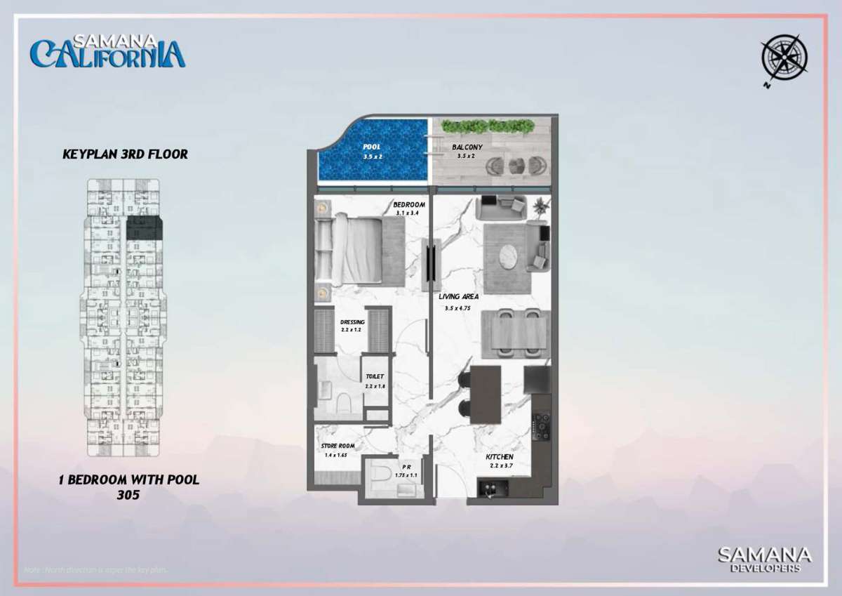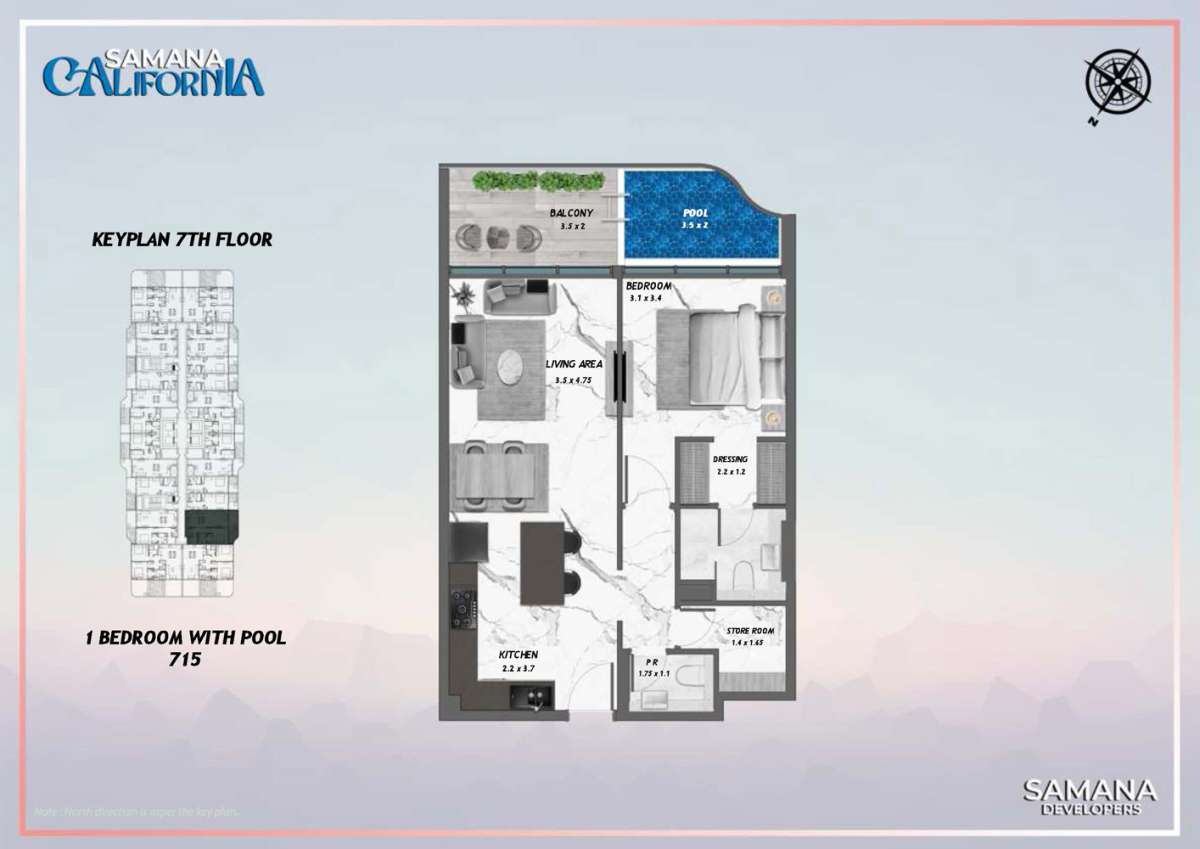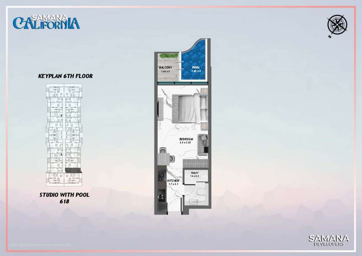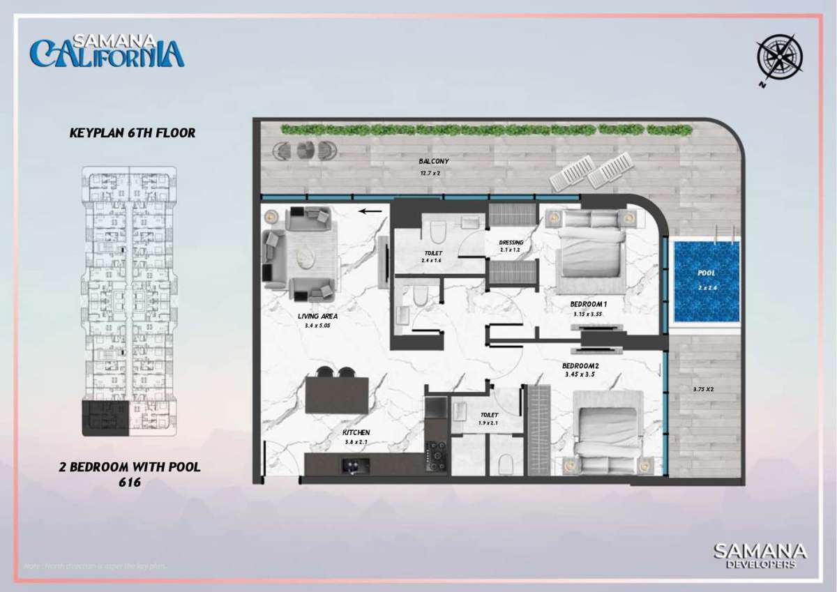 The renowned Samana Developers' most recent real estate marvel is Samana California. In the center of Al Furjan, one of Dubai's most desirable neighborhoods, this 11-story residential masterpiece redefines luxury living.