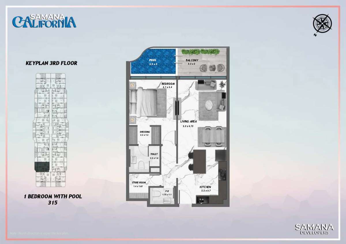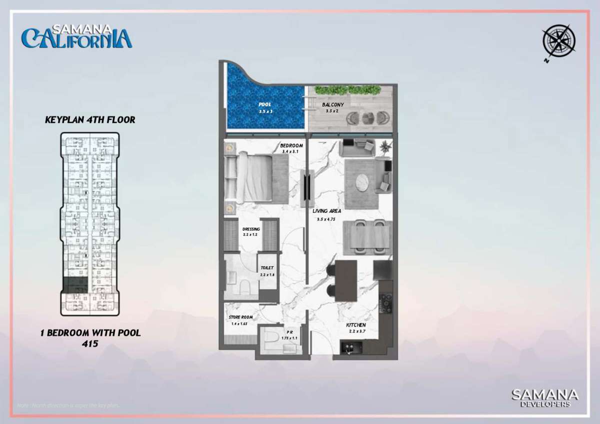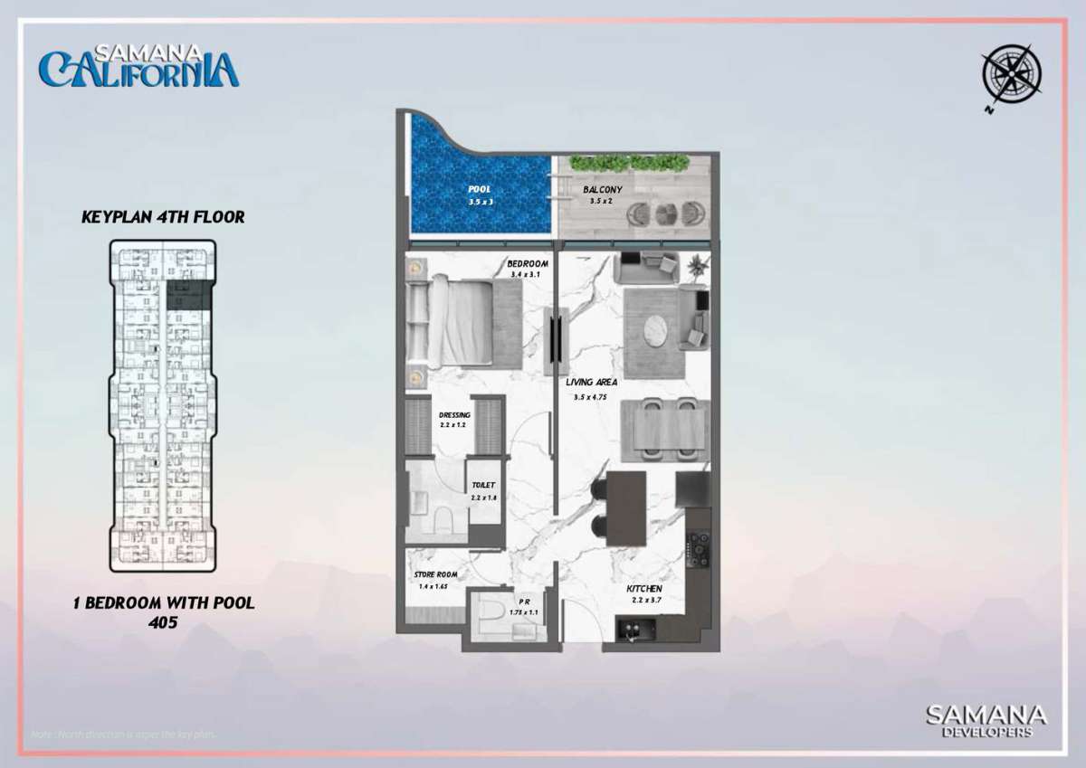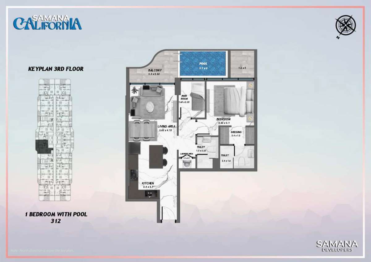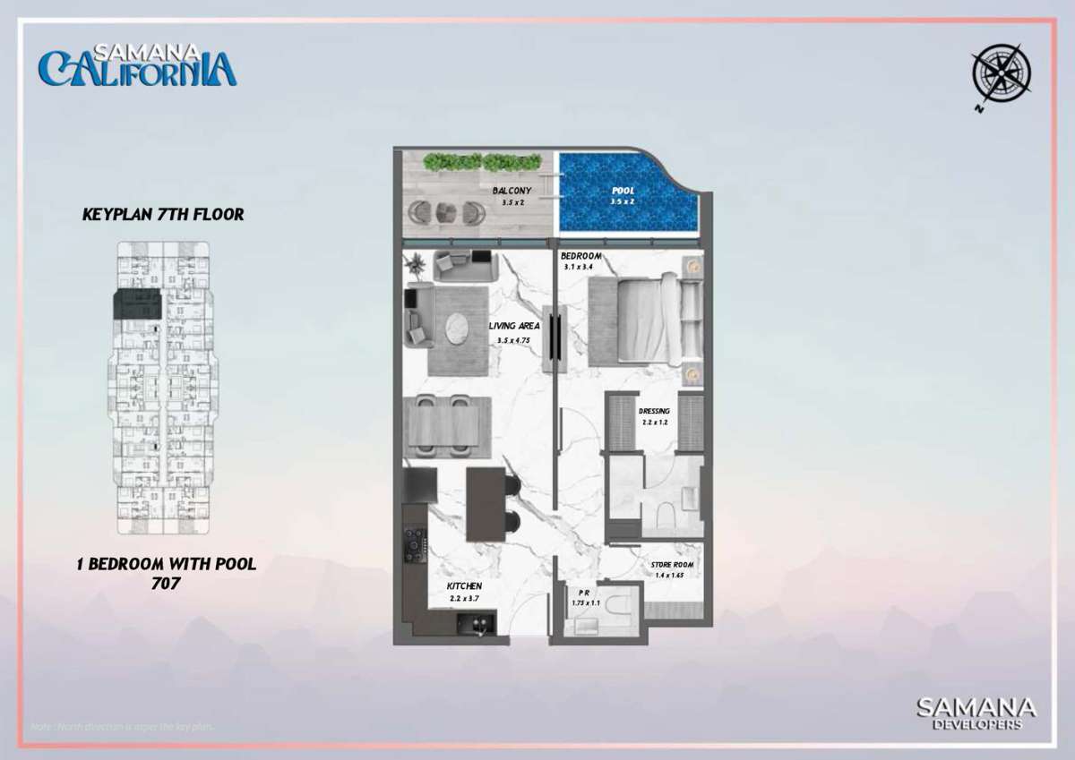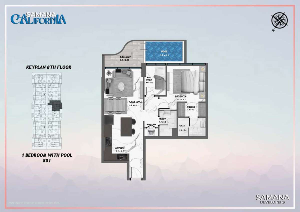 The renowned Samana Developers' most recent real estate marvel is Samana California. In the center of Al Furjan, one of Dubai's most desirable neighborhoods, this 11-story residential masterpiece redefines luxury living.