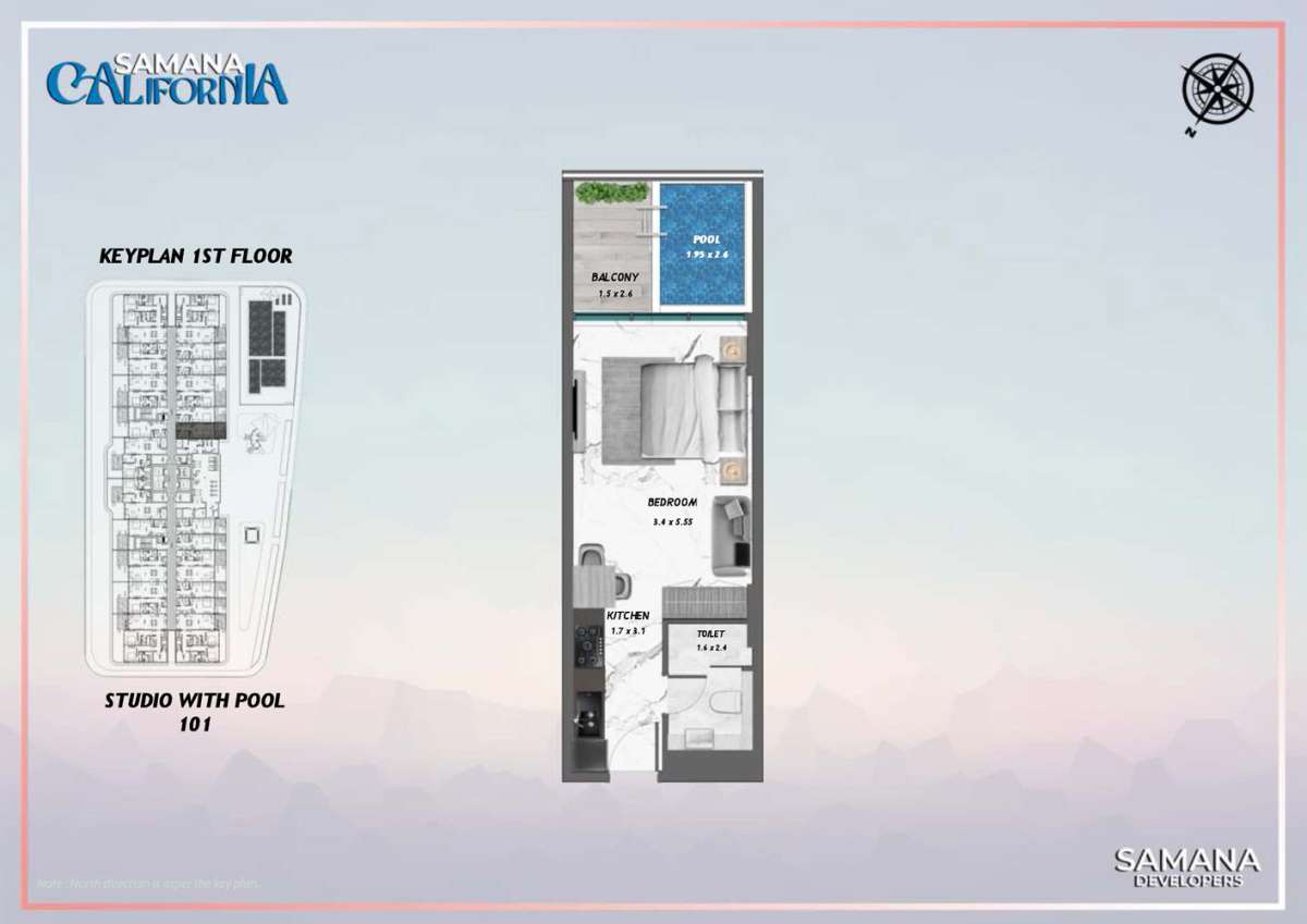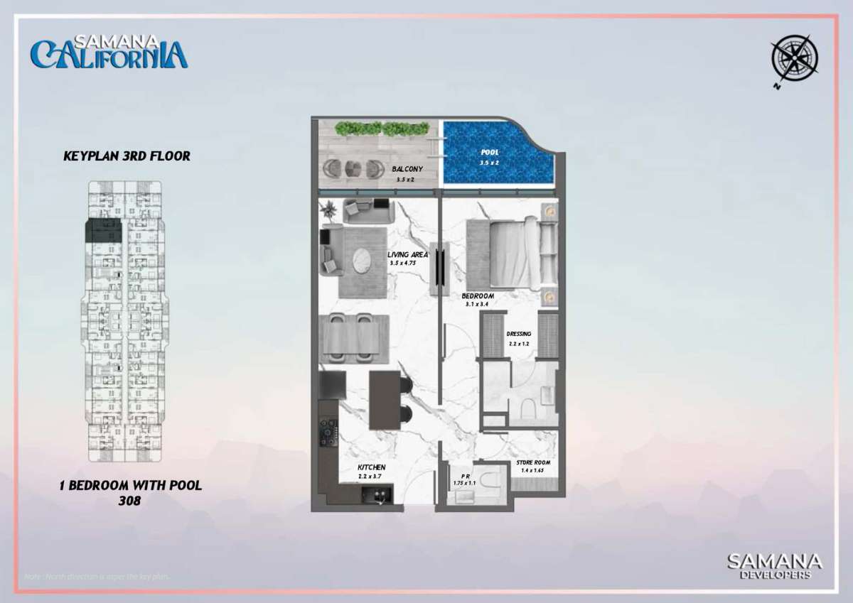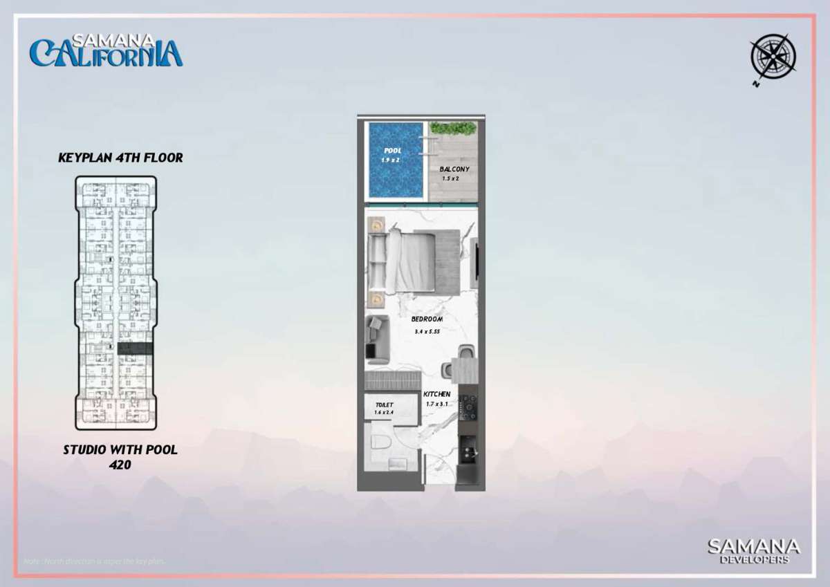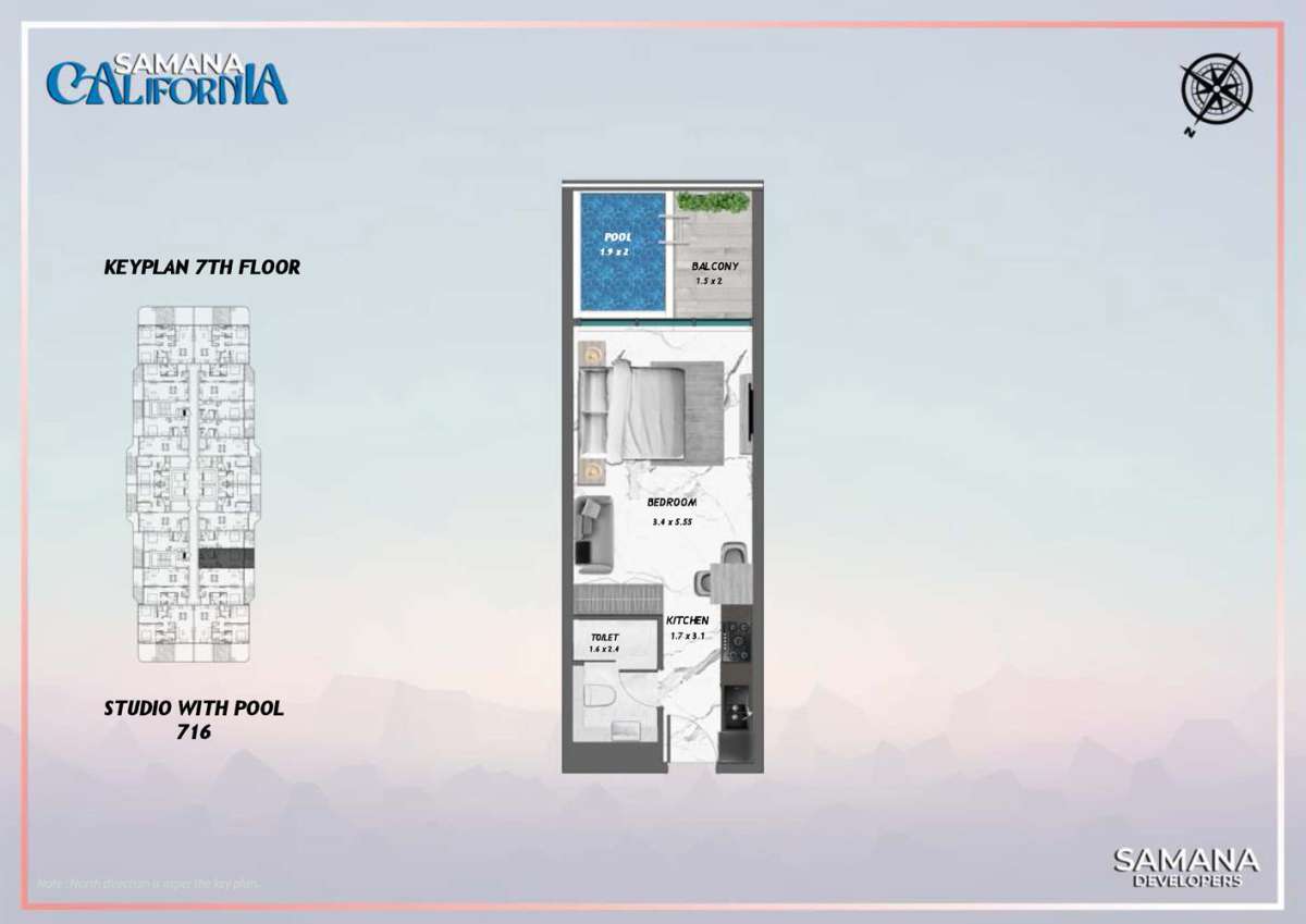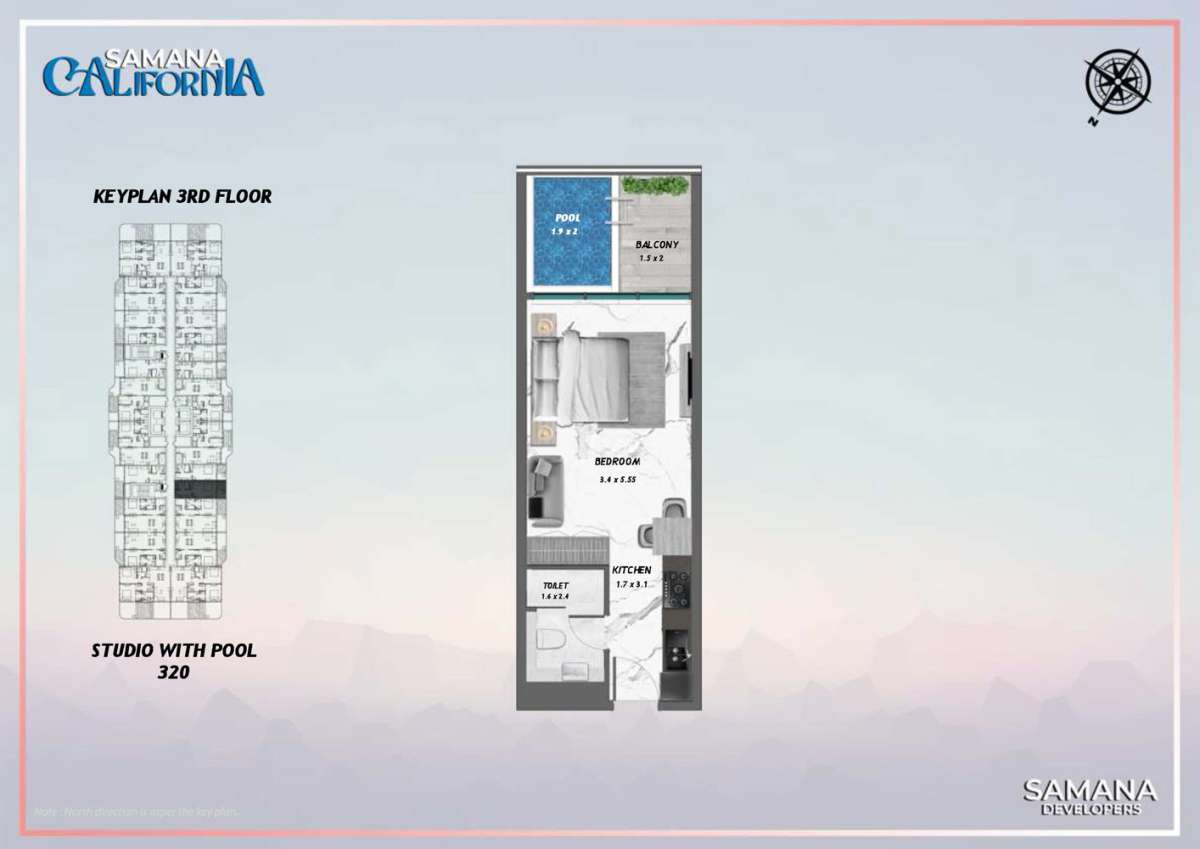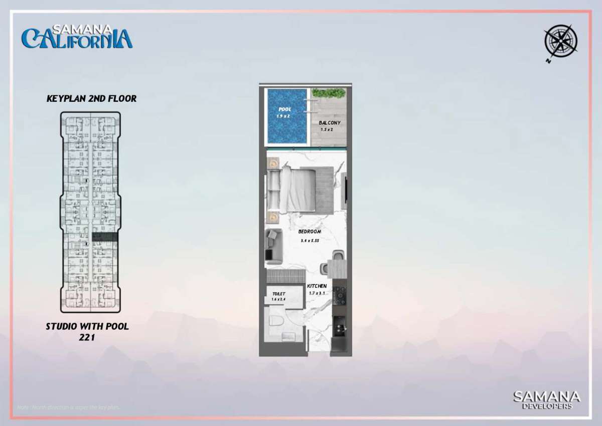 Comfort, style, and contemporary living are all combined in the residential haven of Samana, California. These luxurious studio, one-bedroom, and two-bedroom apartments are all built to maximize comfort and practicality. The open layout creates a rejuvenating living space with lots of natural light and ventilation. However, the addition of swimming pools sets these apartments apart and provides residents with a true haven.