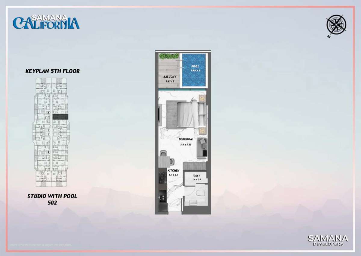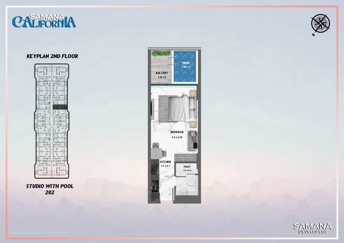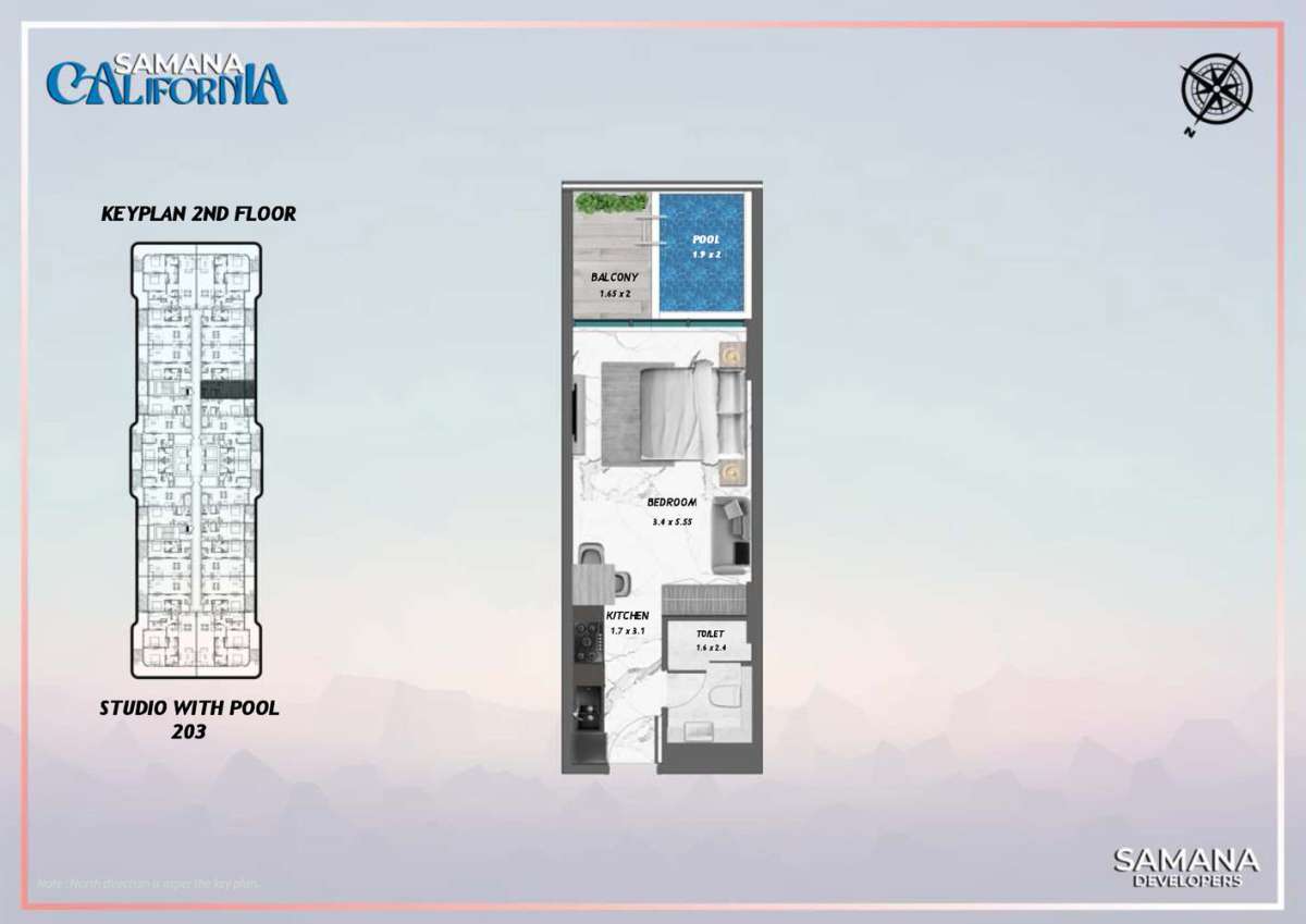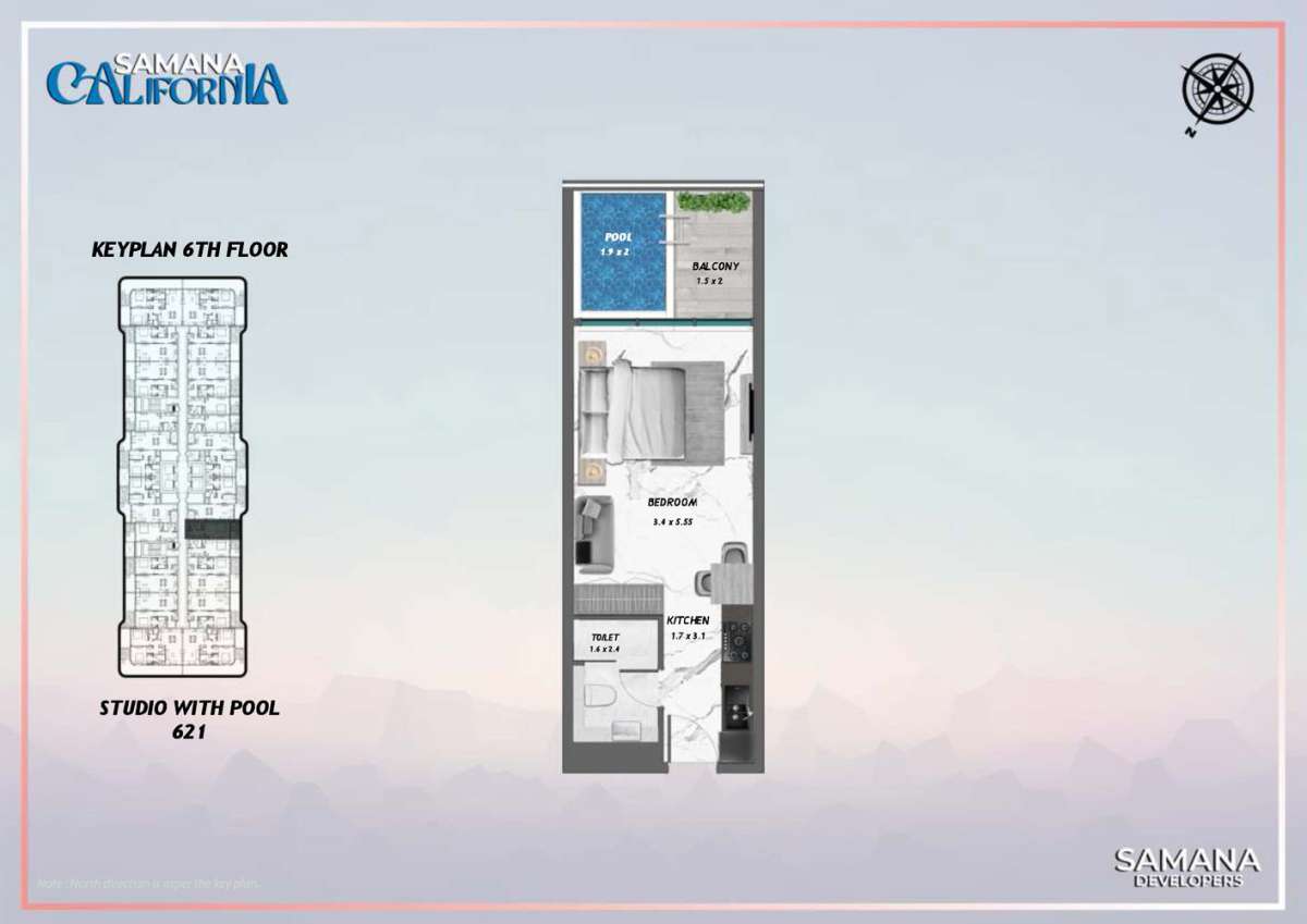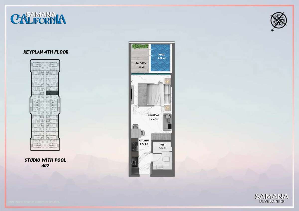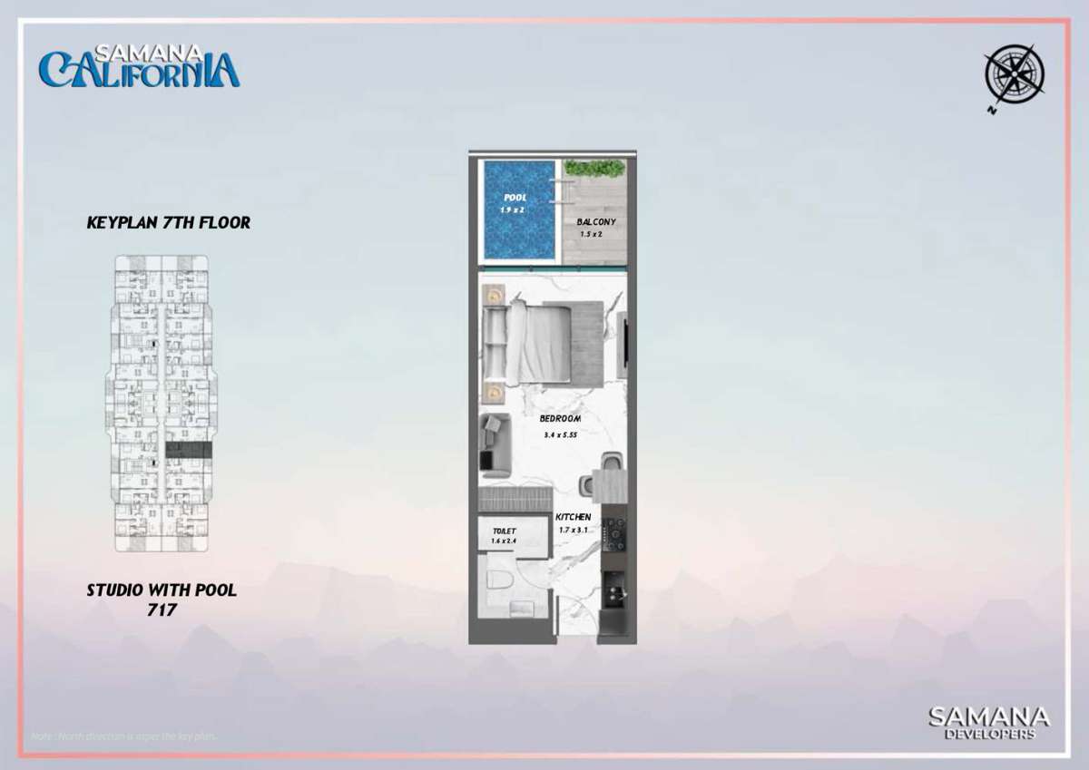 Comfort, style, and contemporary living are all combined in the residential haven of Samana, California. These luxurious studio, one-bedroom, and two-bedroom apartments are all built to maximize comfort and practicality. The open layout creates a rejuvenating living space with lots of natural light and ventilation. However, the addition of swimming pools sets these apartments apart and provides residents with a true haven.