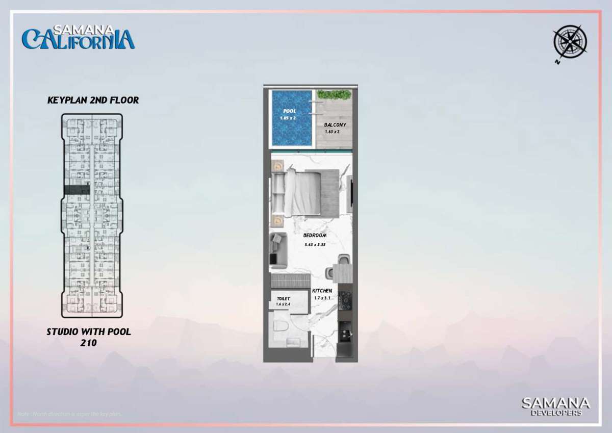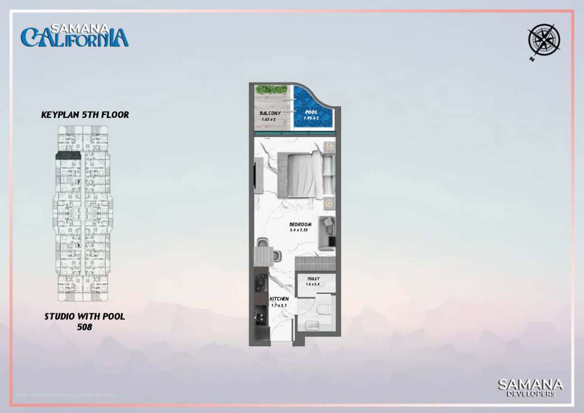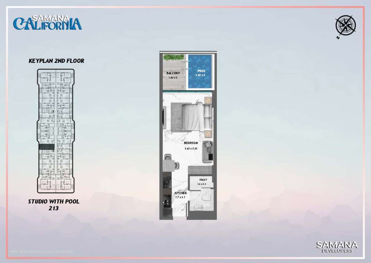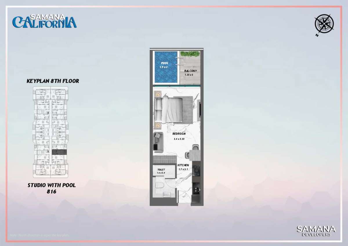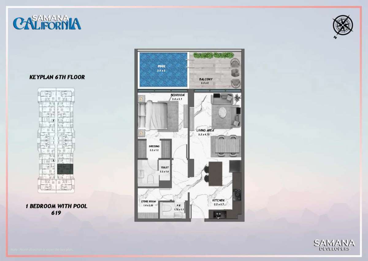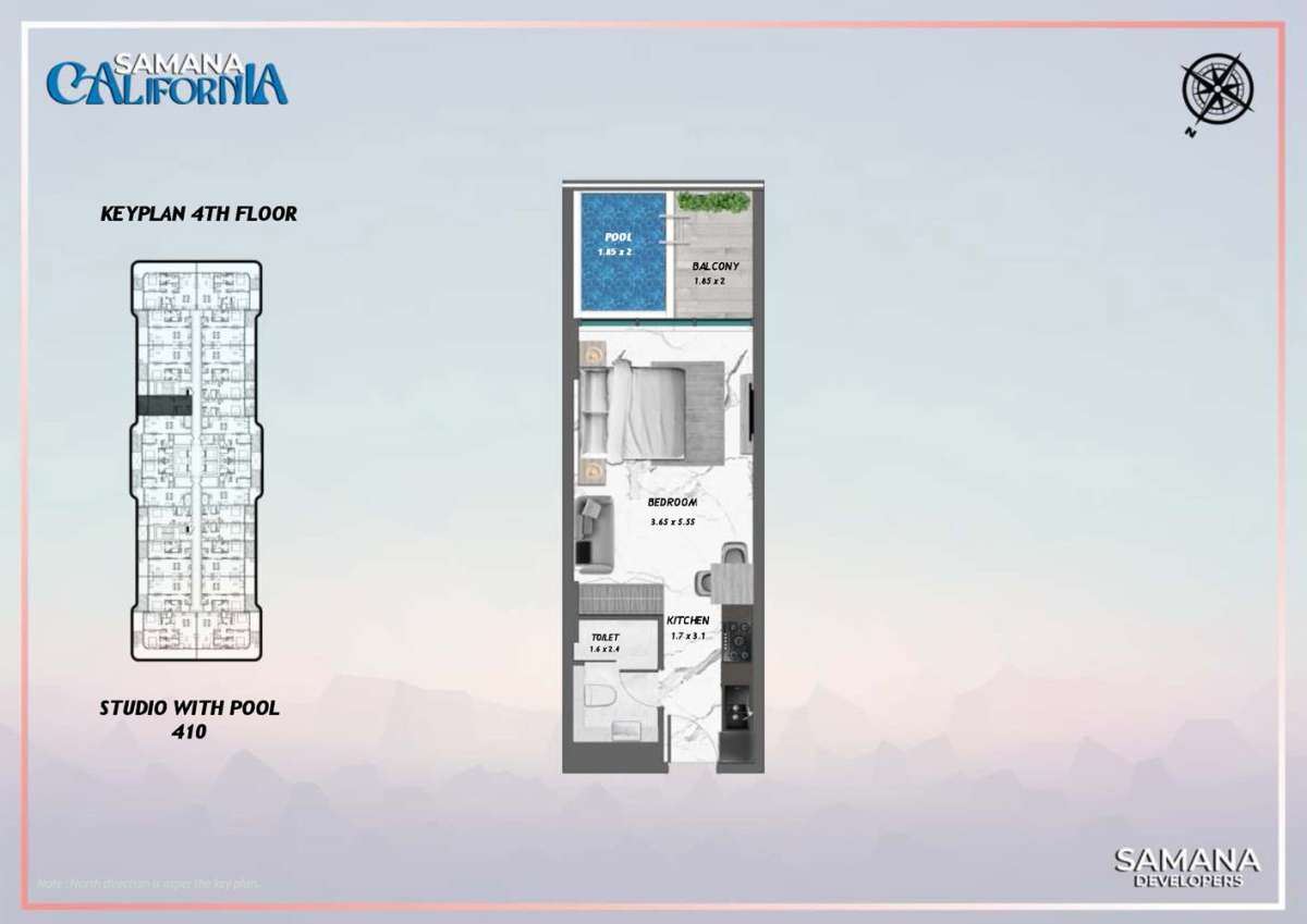 Comfort, style, and contemporary living are all combined in the residential haven of Samana, California. These luxurious studio, one-bedroom, and two-bedroom apartments are all built to maximize comfort and practicality. The open layout creates a rejuvenating living space with lots of natural light and ventilation. However, the addition of swimming pools sets these apartments apart and provides residents with a true haven.