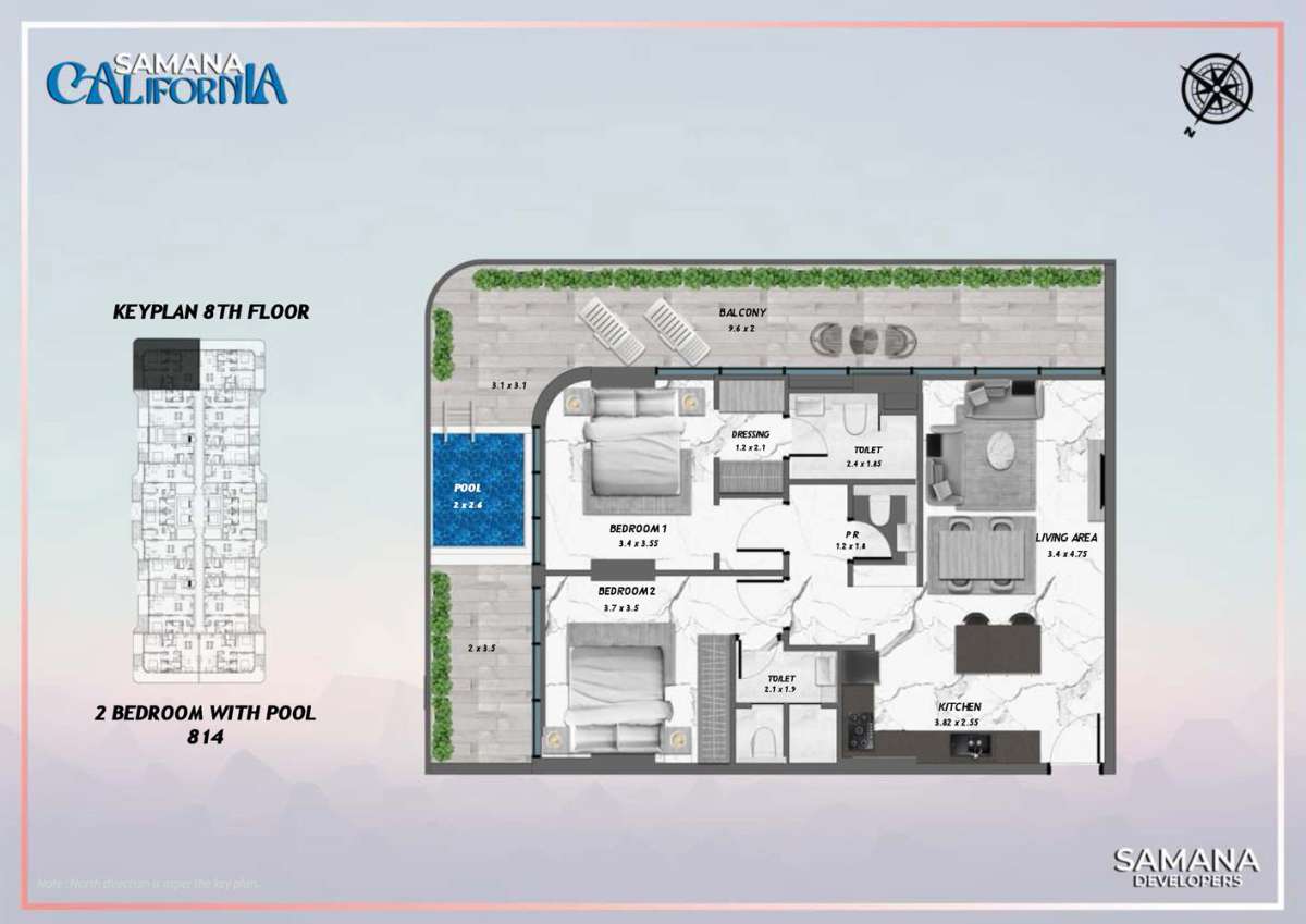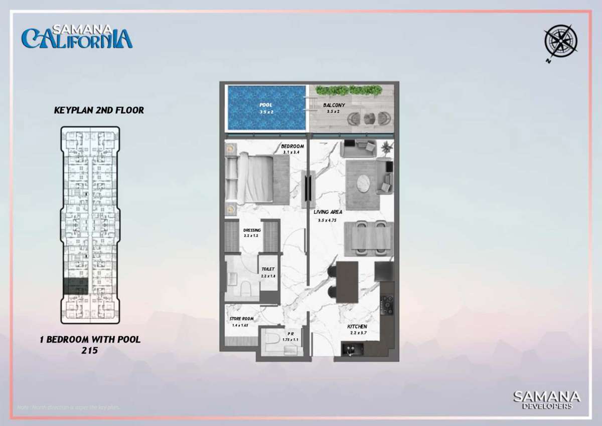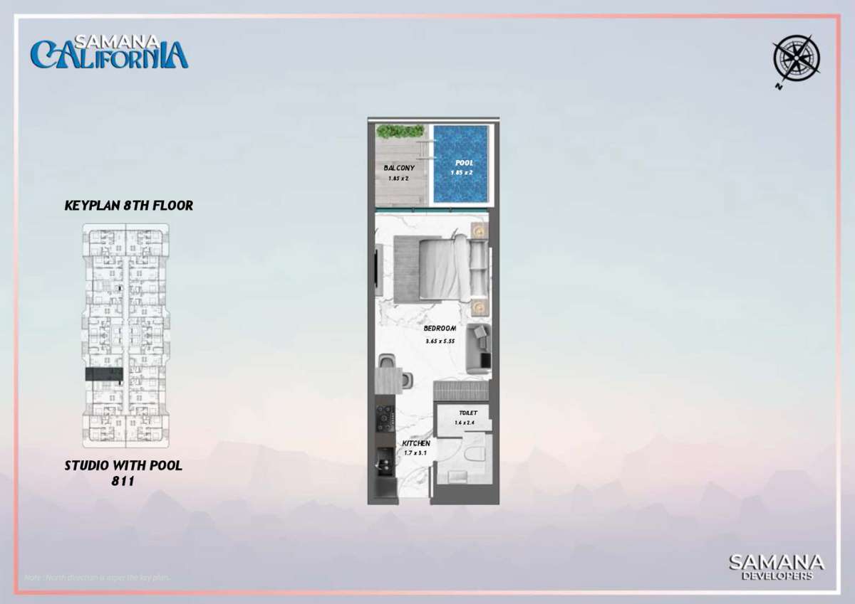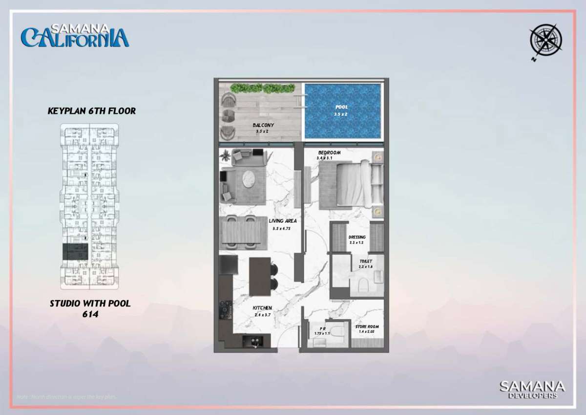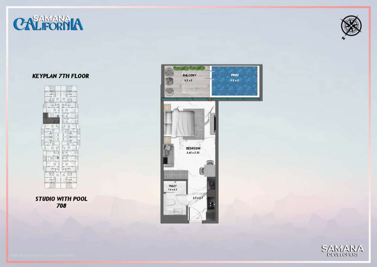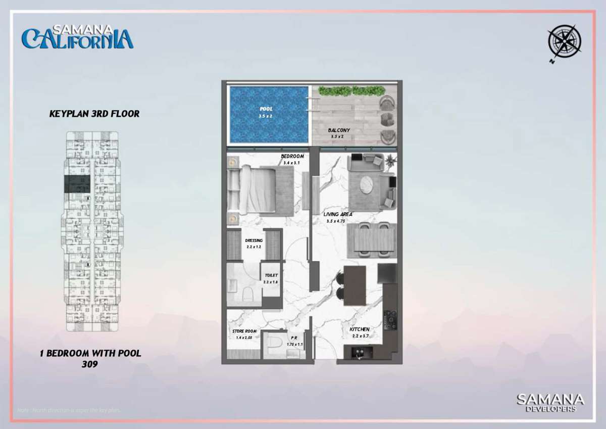 Comfort, style, and contemporary living are all combined in the residential haven of Samana, California. These luxurious studio, one-bedroom, and two-bedroom apartments are all built to maximize comfort and practicality. The open layout creates a rejuvenating living space with lots of natural light and ventilation. However, the addition of swimming pools sets these apartments apart and provides residents with a true haven.