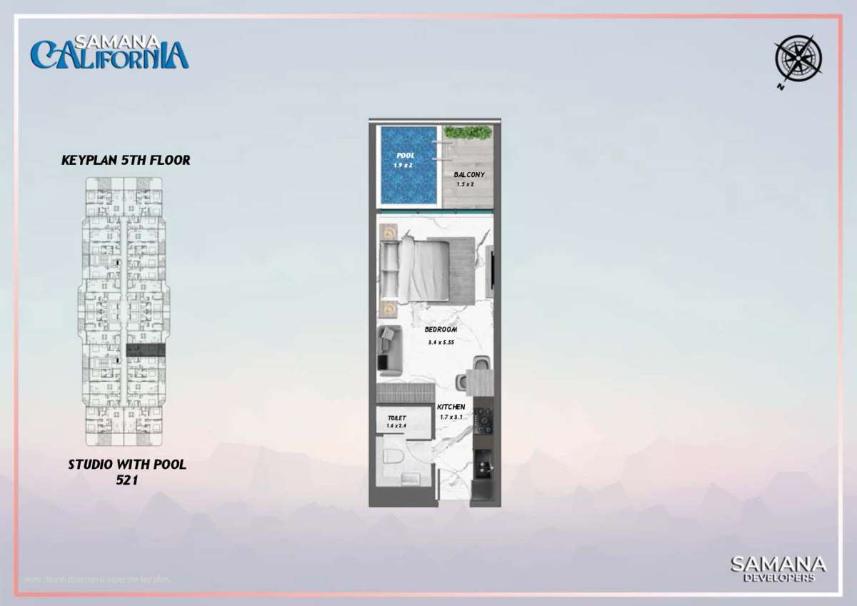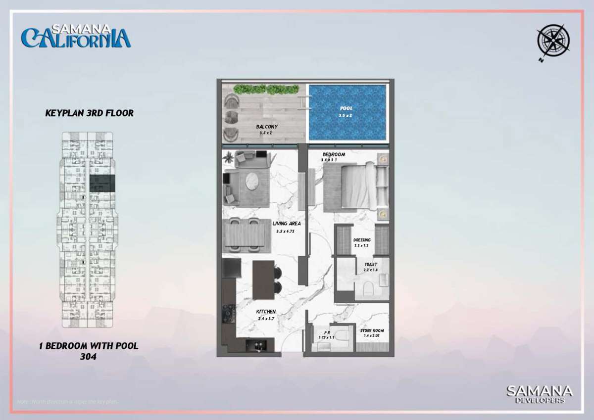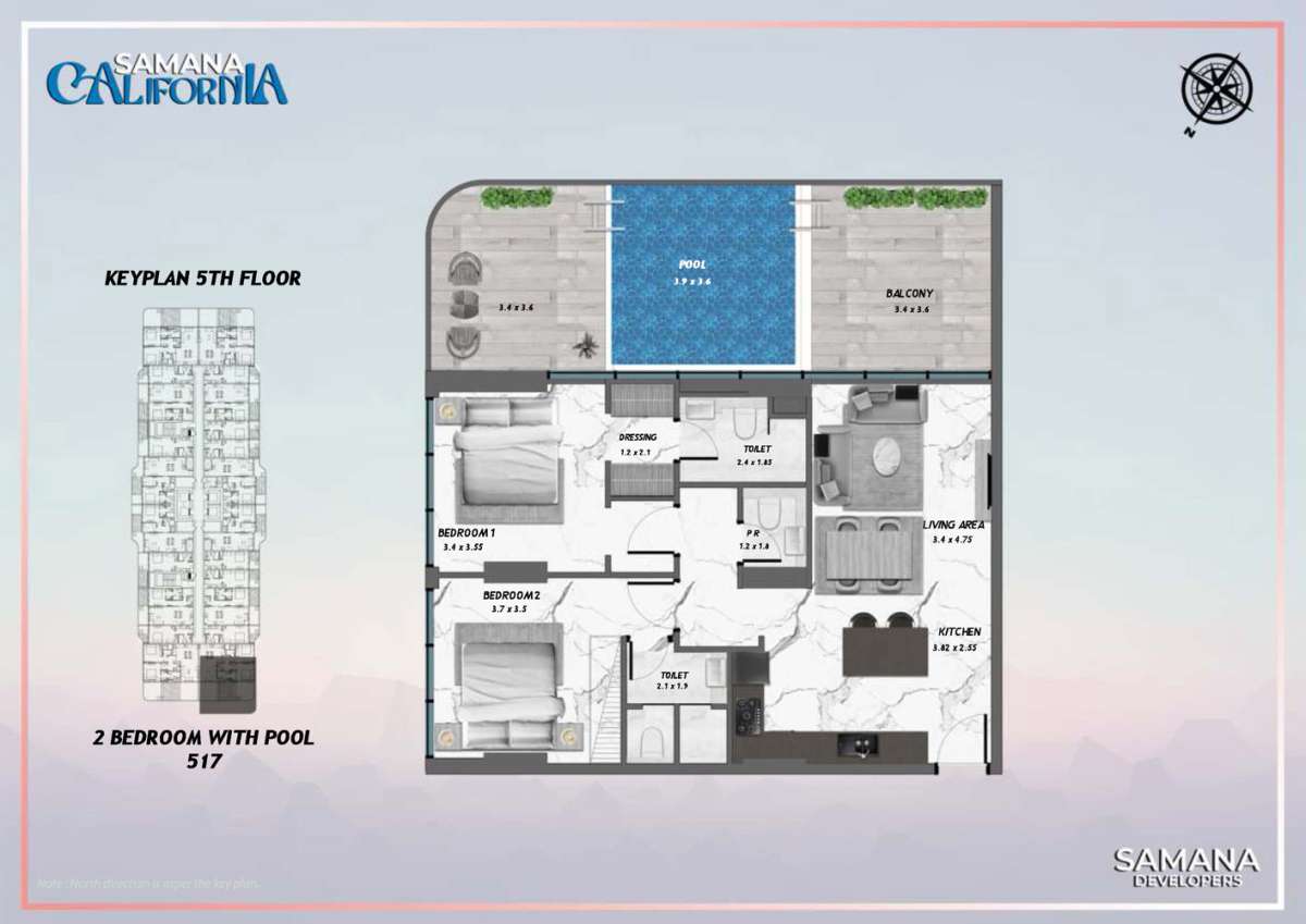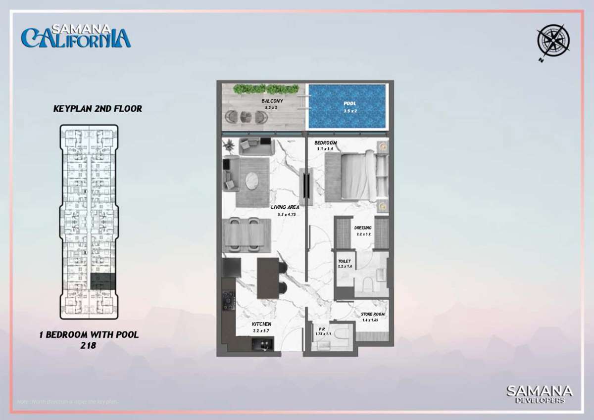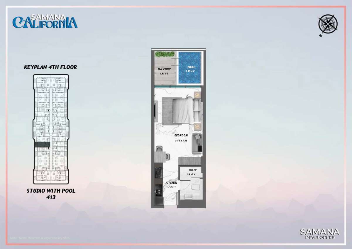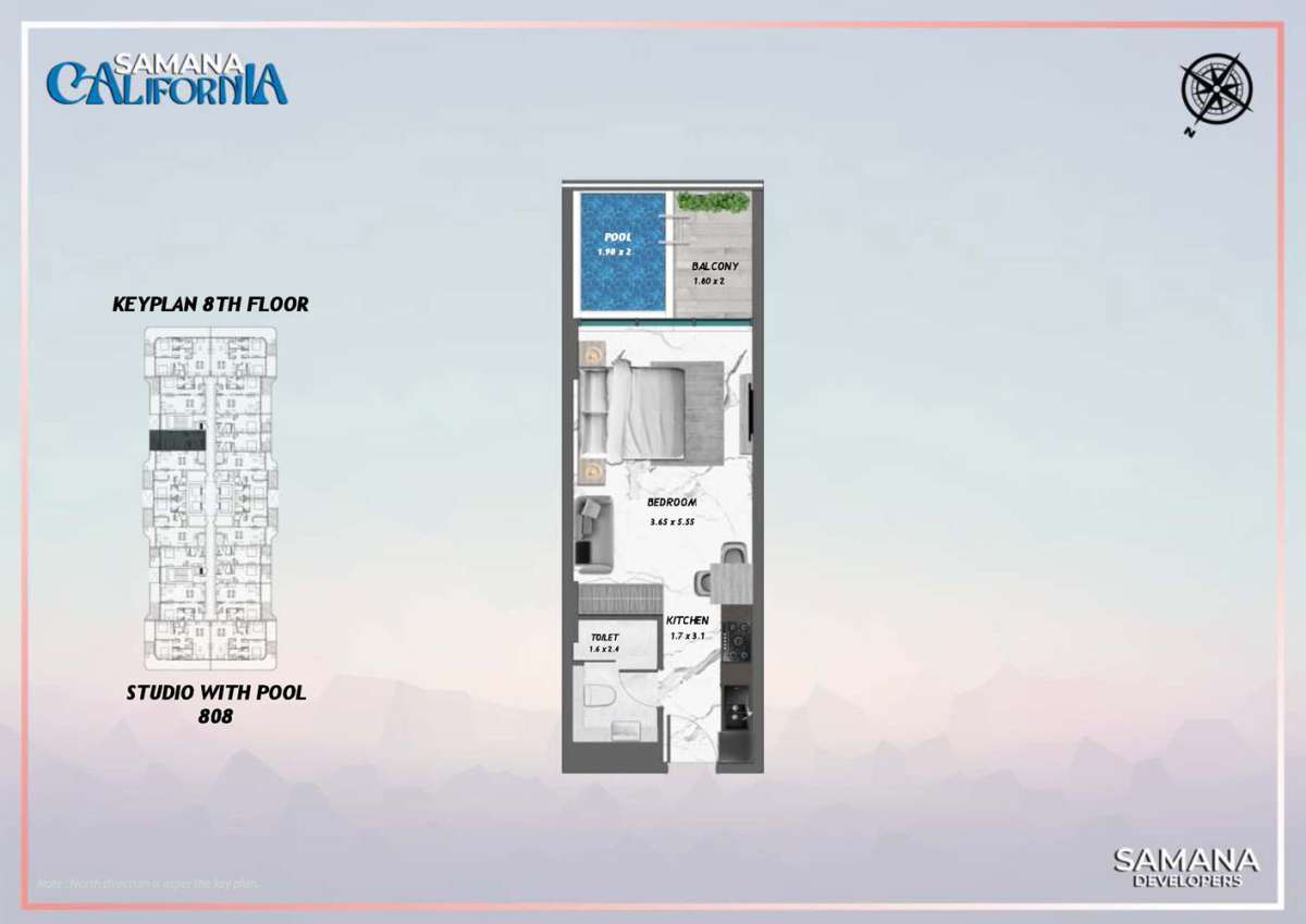 Comfort, style, and contemporary living are all combined in the residential haven of Samana, California. These luxurious studio, one-bedroom, and two-bedroom apartments are all built to maximize comfort and practicality. The open layout creates a rejuvenating living space with lots of natural light and ventilation. However, the addition of swimming pools sets these apartments apart and provides residents with a true haven.