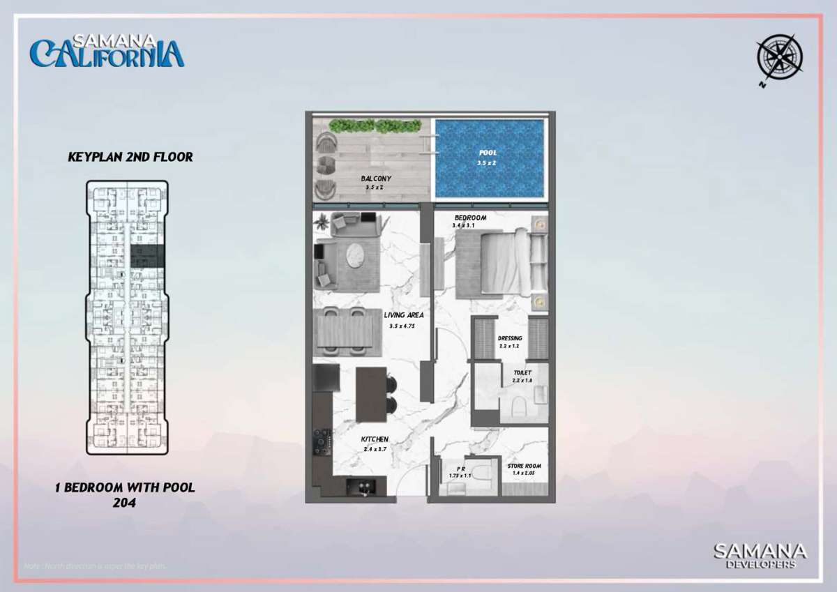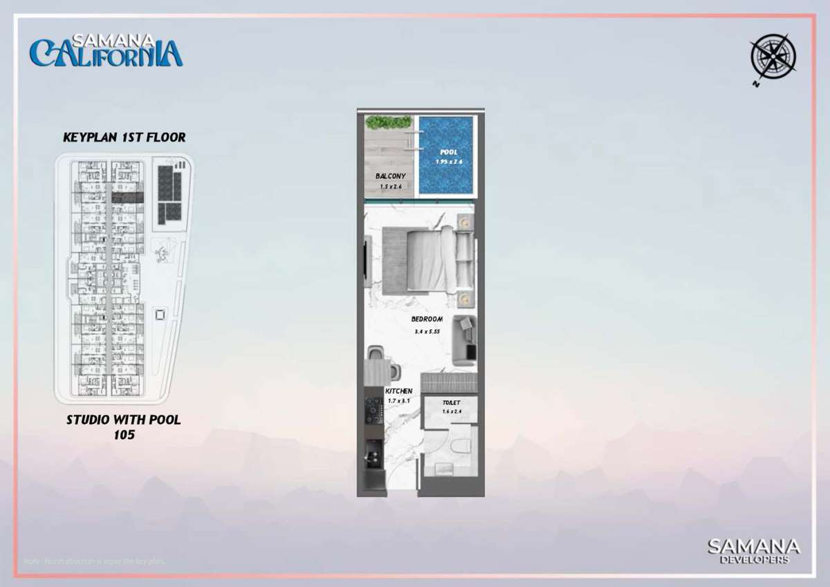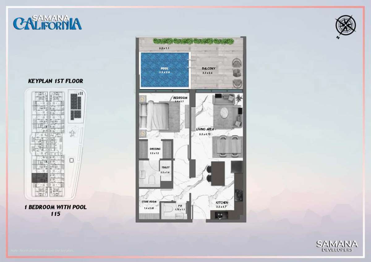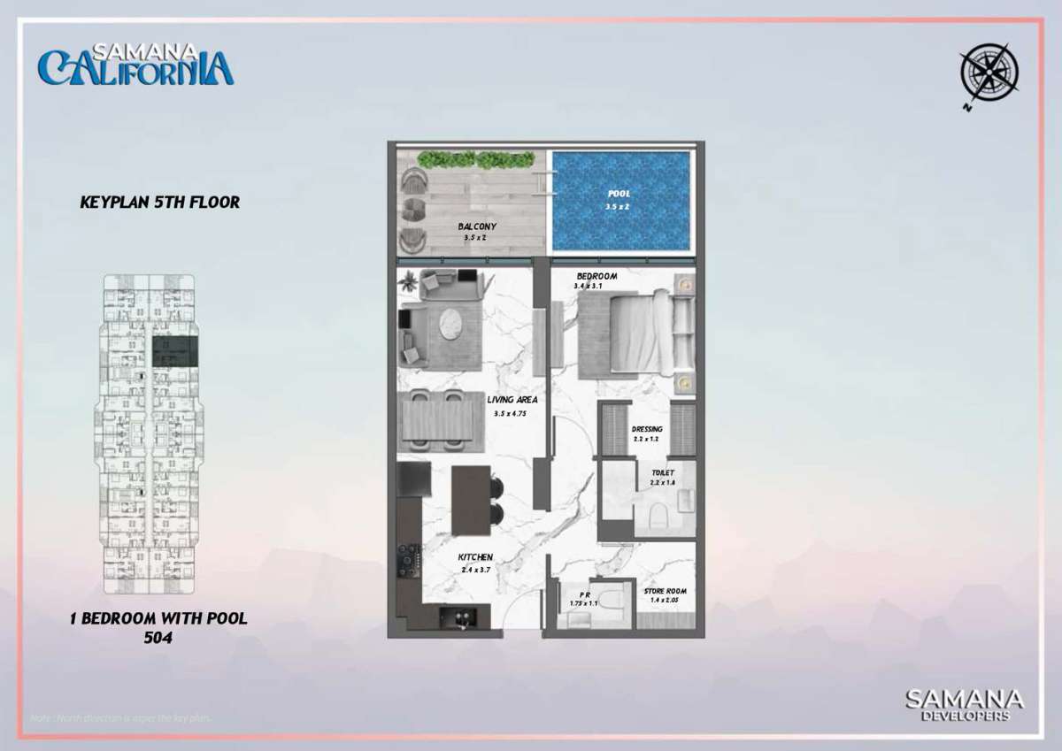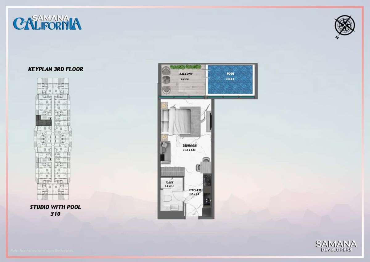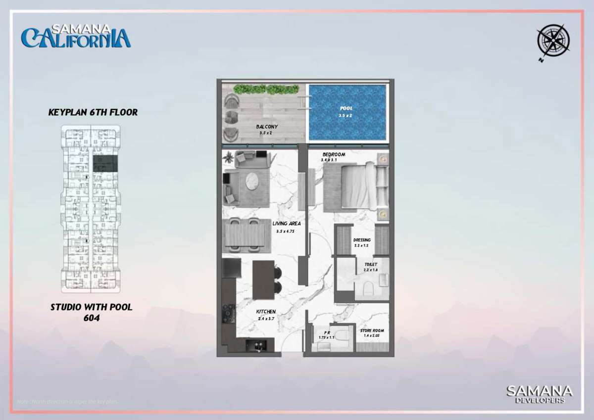 Comfort, style, and contemporary living are all combined in the residential haven of Samana, California. These luxurious studio, one-bedroom, and two-bedroom apartments are all built to maximize comfort and practicality. The open layout creates a rejuvenating living space with lots of natural light and ventilation. However, the addition of swimming pools sets these apartments apart and provides residents with a true haven.