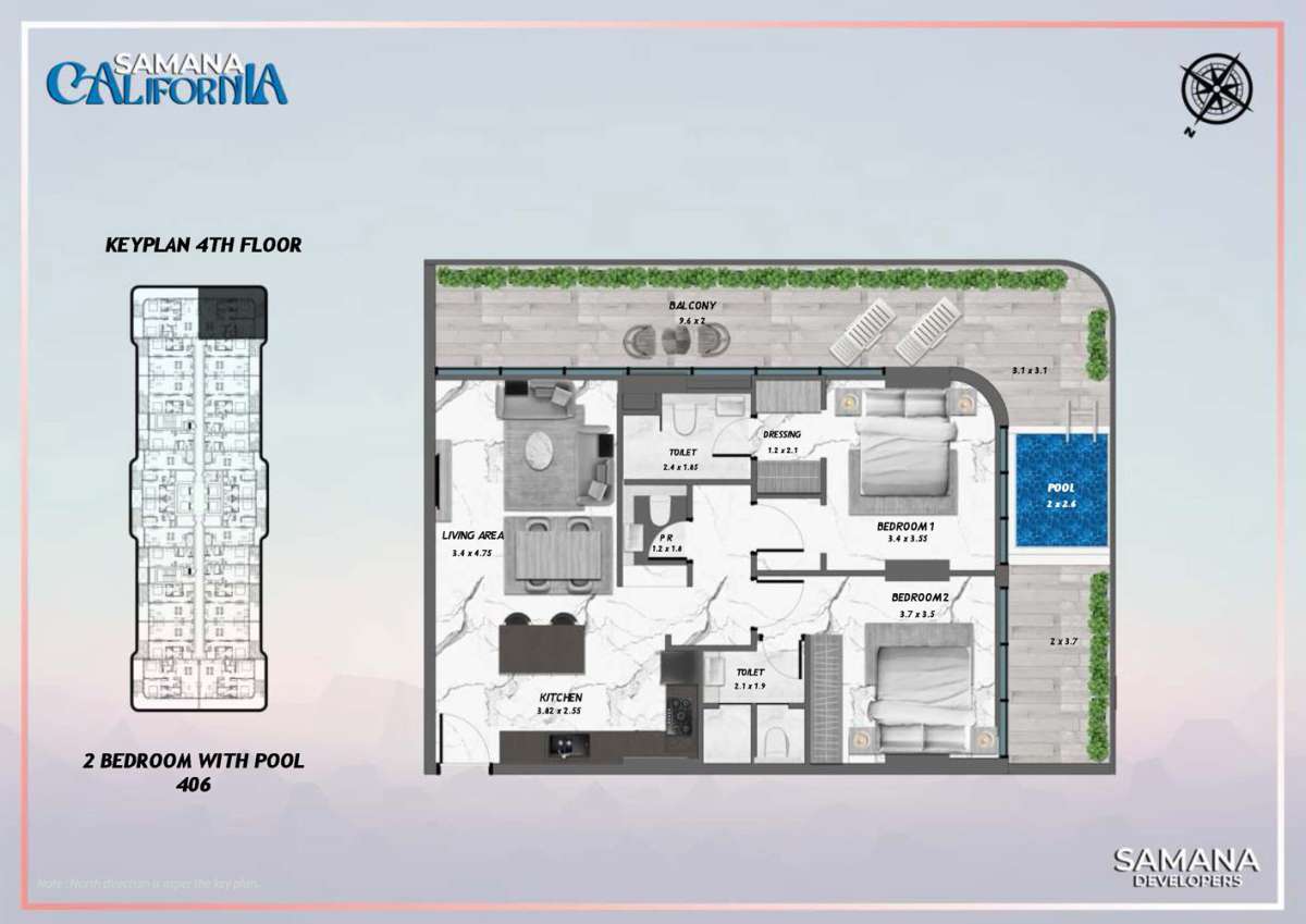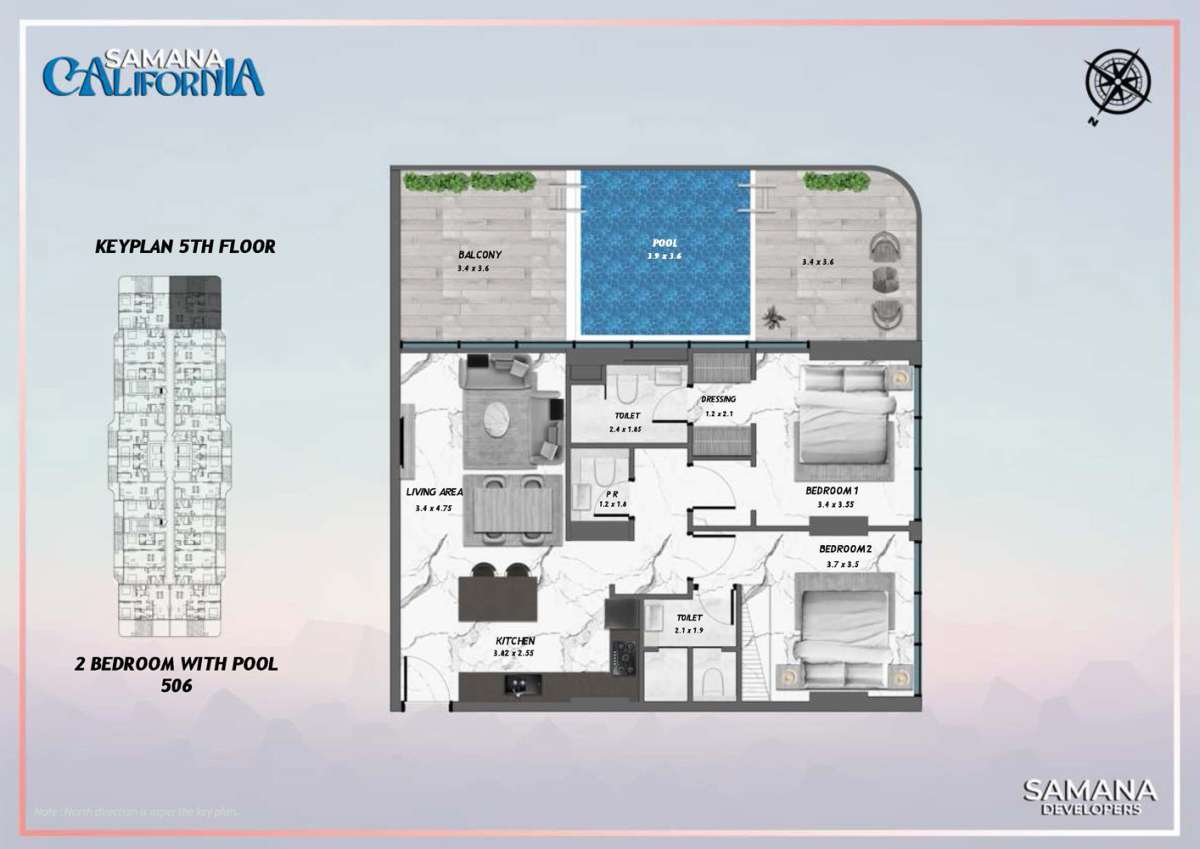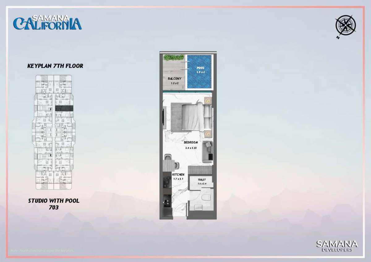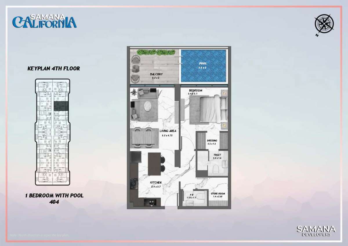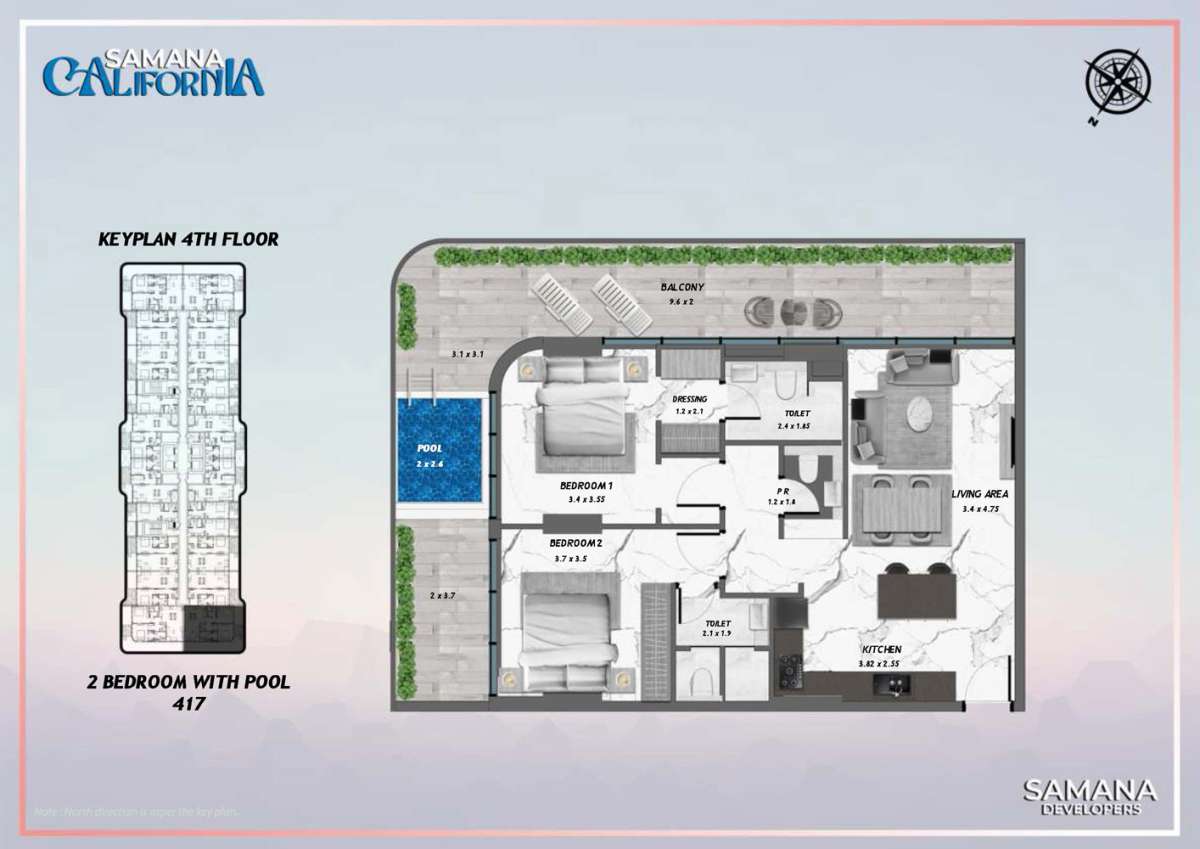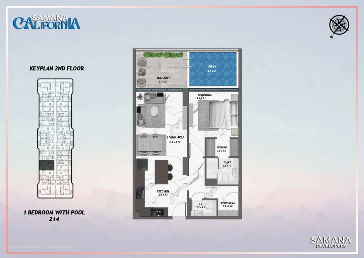 Comfort, style, and contemporary living are all combined in the residential haven of Samana, California. These luxurious studio, one-bedroom, and two-bedroom apartments are all built to maximize comfort and practicality. The open layout creates a rejuvenating living space with lots of natural light and ventilation. However, the addition of swimming pools sets these apartments apart and provides residents with a true haven.