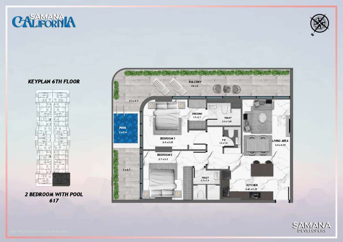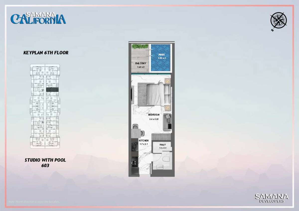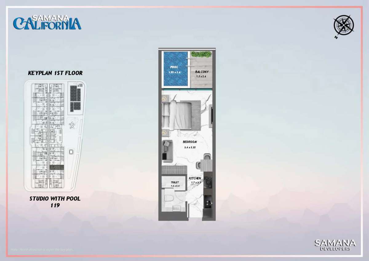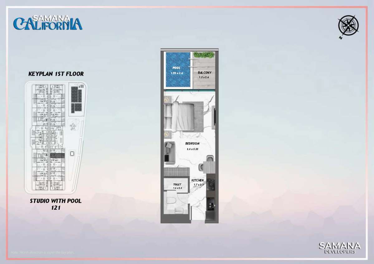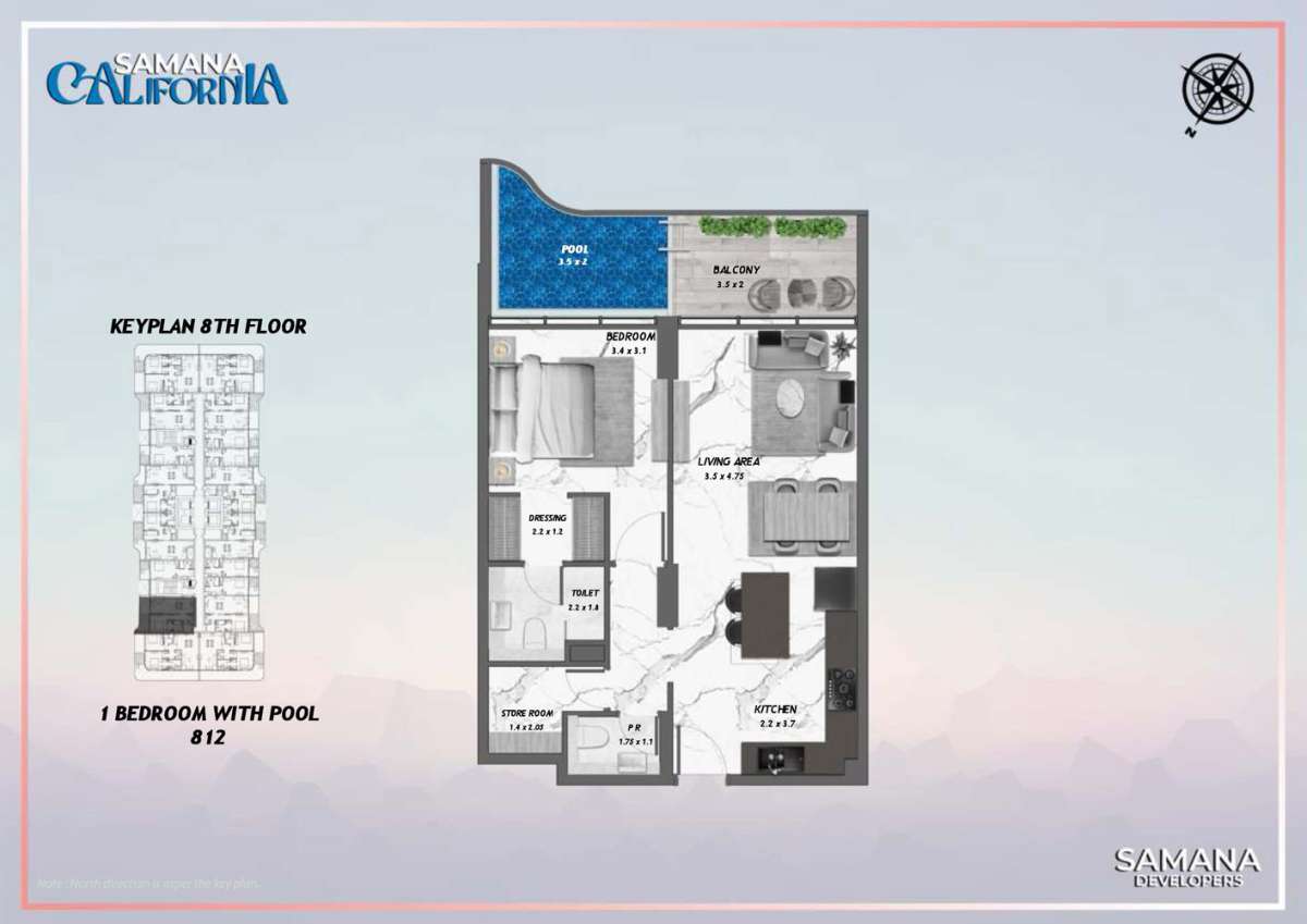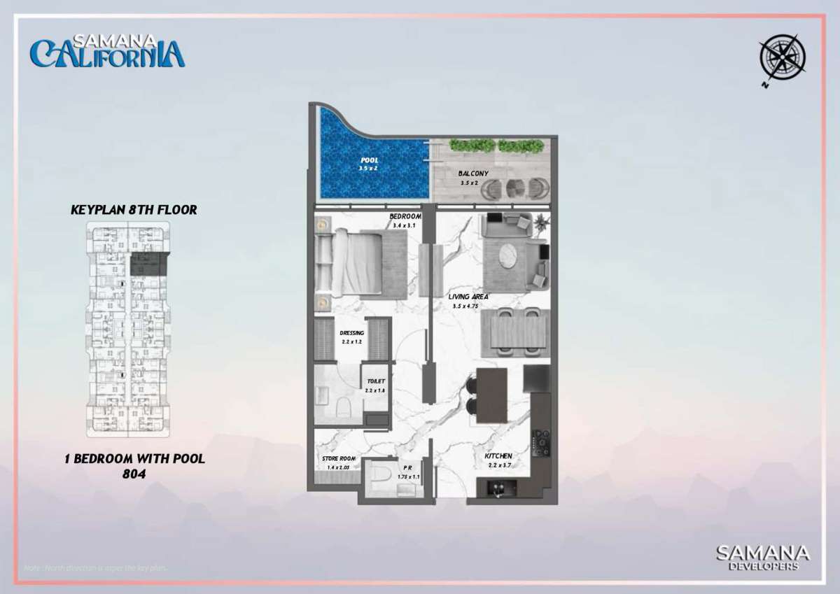 Comfort, style, and contemporary living are all combined in the residential haven of Samana, California. These luxurious studio, one-bedroom, and two-bedroom apartments are all built to maximize comfort and practicality. The open layout creates a rejuvenating living space with lots of natural light and ventilation. However, the addition of swimming pools sets these apartments apart and provides residents with a true haven.