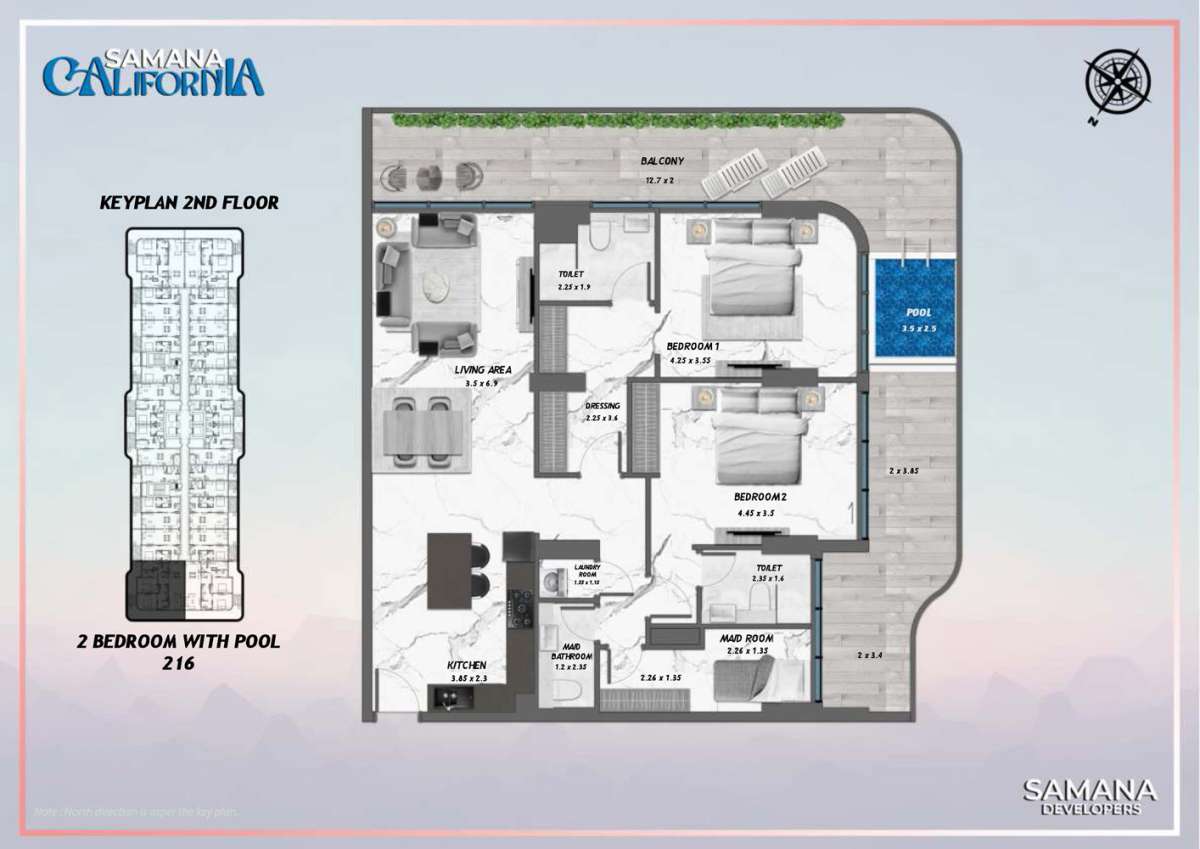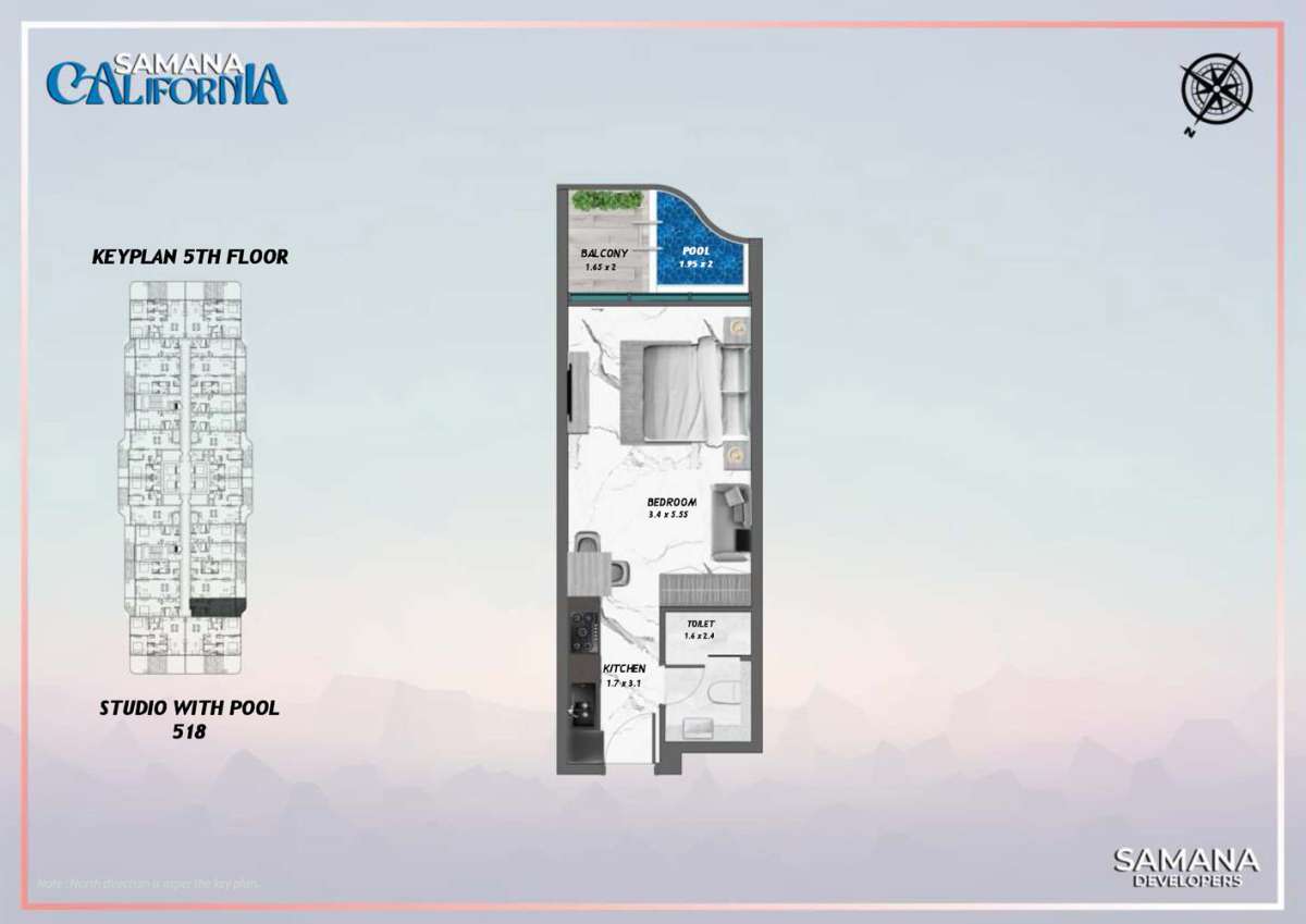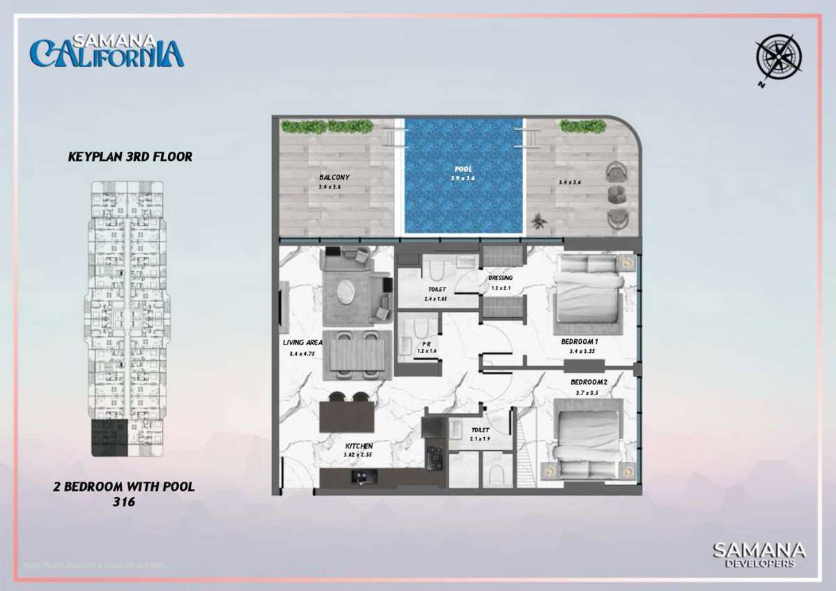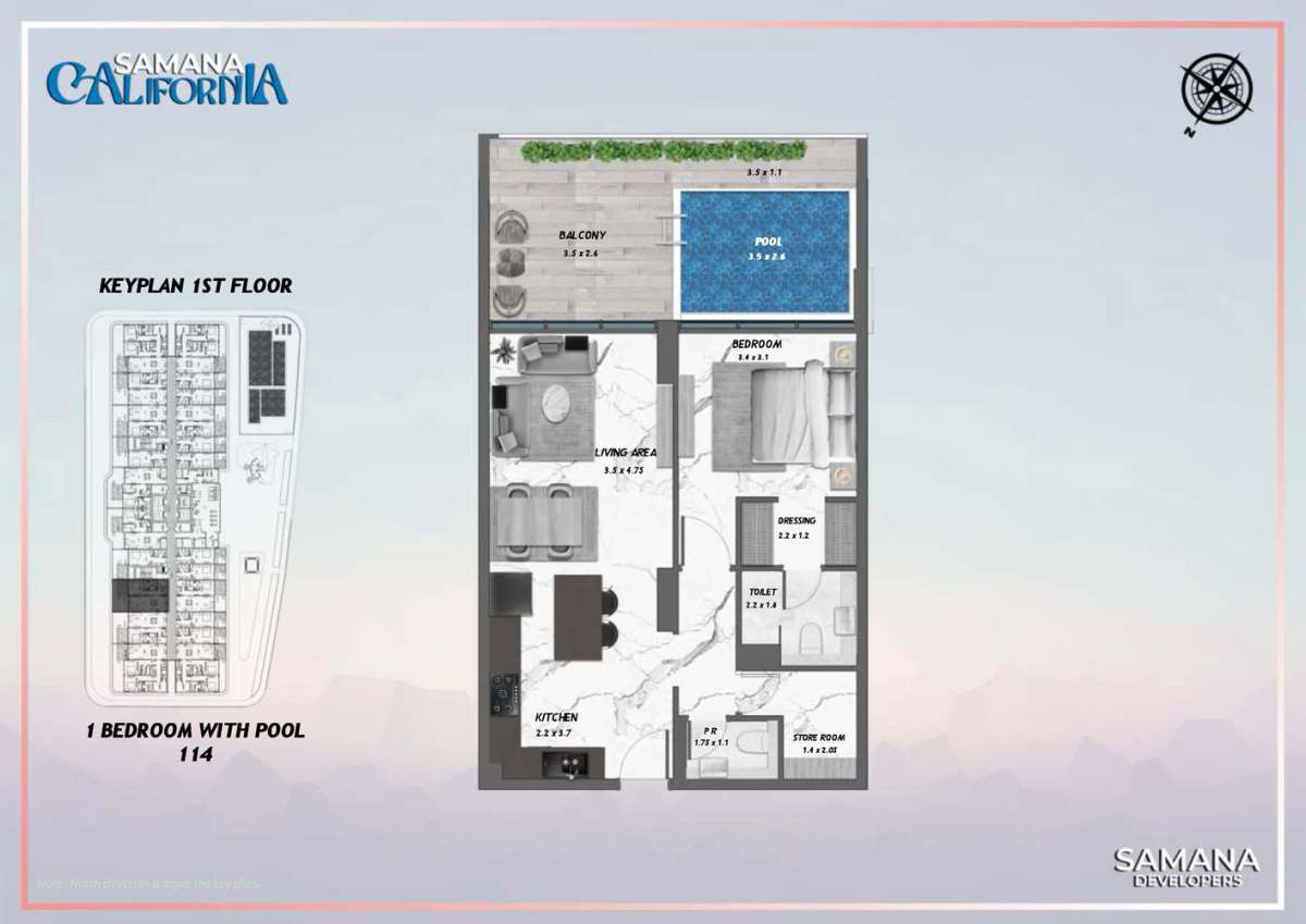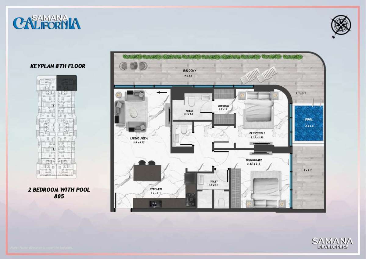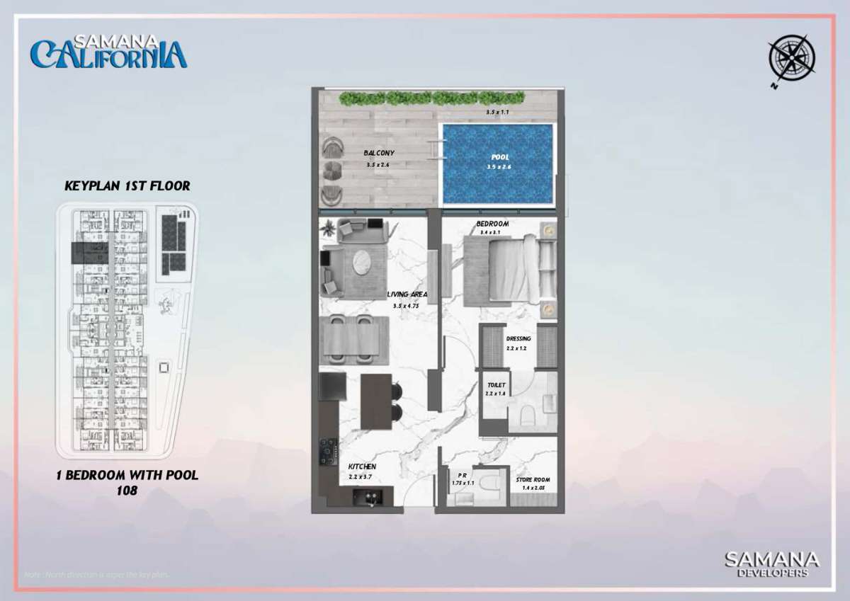 Comfort, style, and contemporary living are all combined in the residential haven of Samana, California. These luxurious studio, one-bedroom, and two-bedroom apartments are all built to maximize comfort and practicality. The open layout creates a rejuvenating living space with lots of natural light and ventilation. However, the addition of swimming pools sets these apartments apart and provides residents with a true haven.