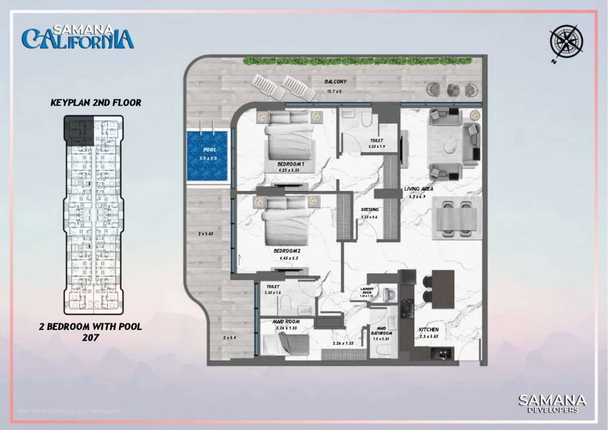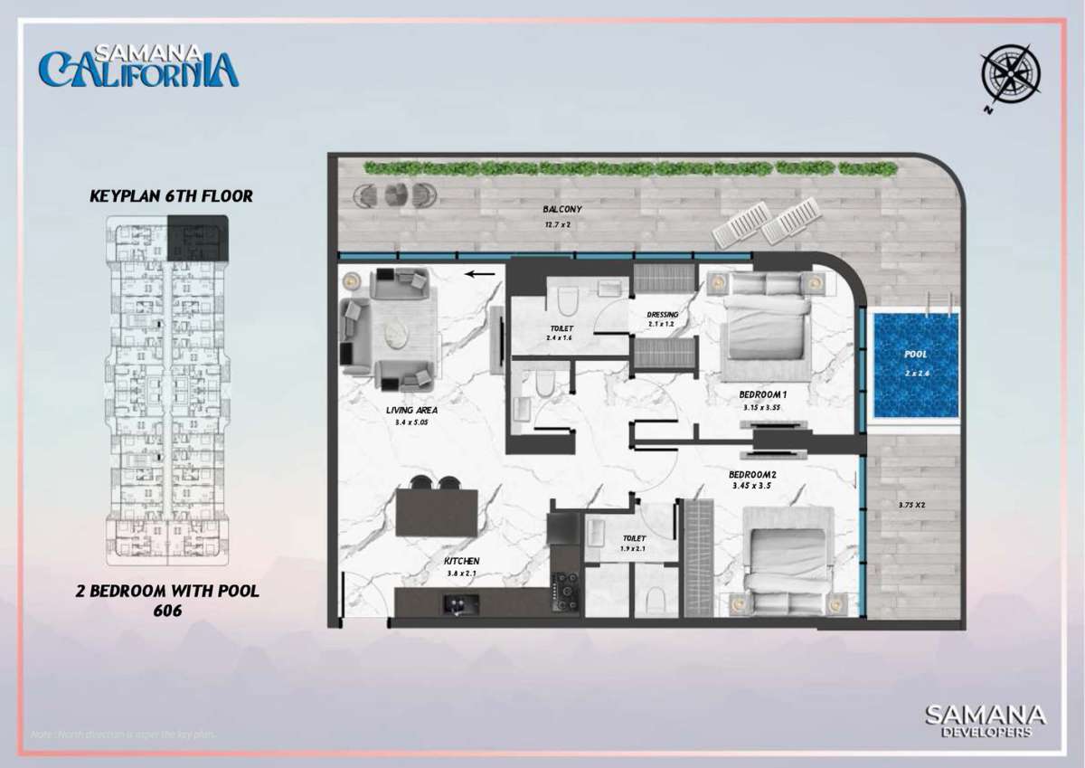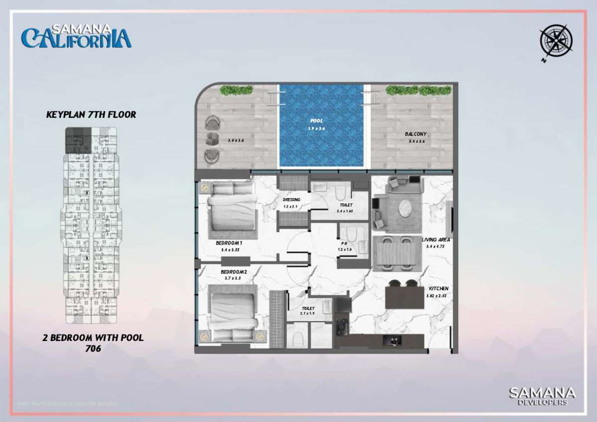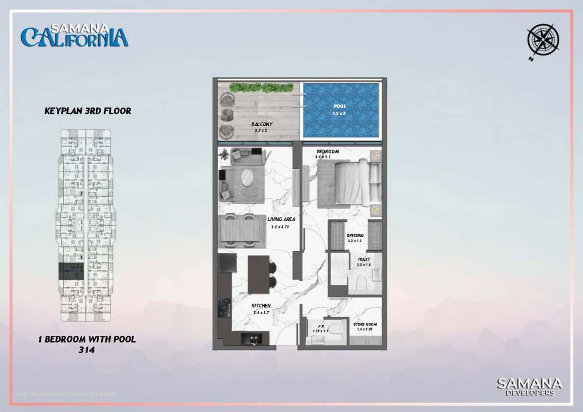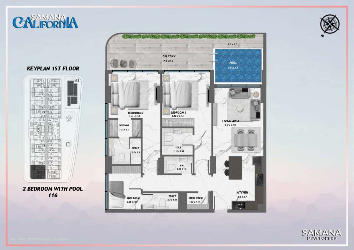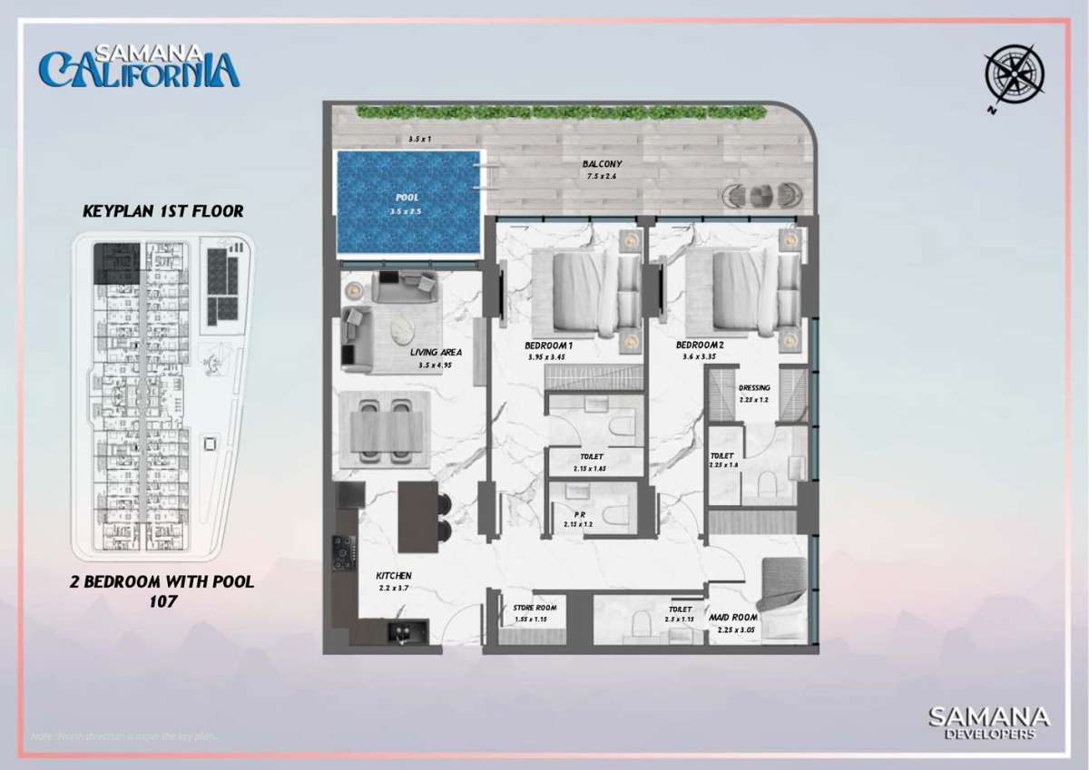 Comfort, style, and contemporary living are all combined in the residential haven of Samana, California. These luxurious studio, one-bedroom, and two-bedroom apartments are all built to maximize comfort and practicality. The open layout creates a rejuvenating living space with lots of natural light and ventilation. However, the addition of swimming pools sets these apartments apart and provides residents with a true haven.