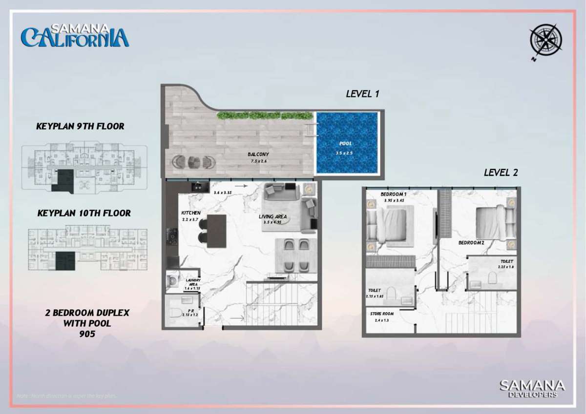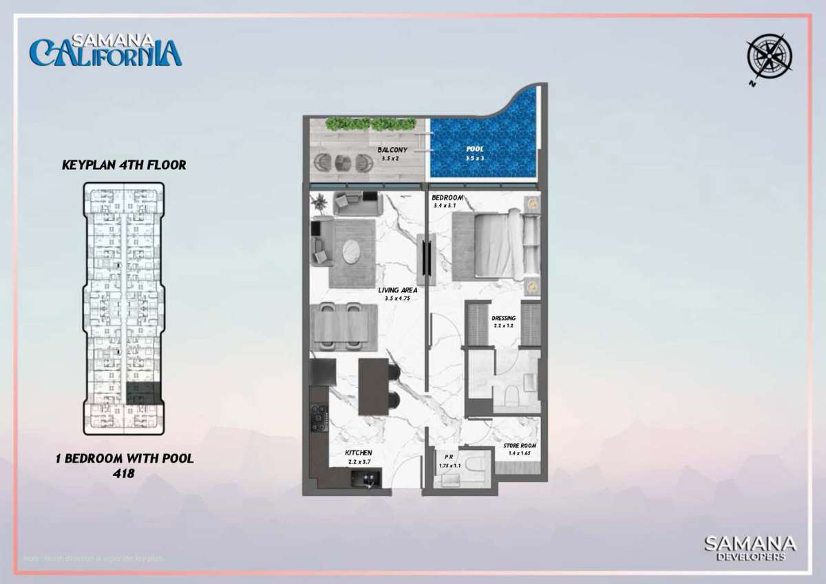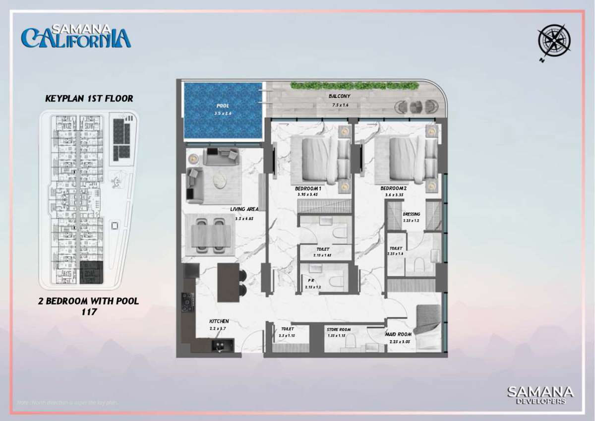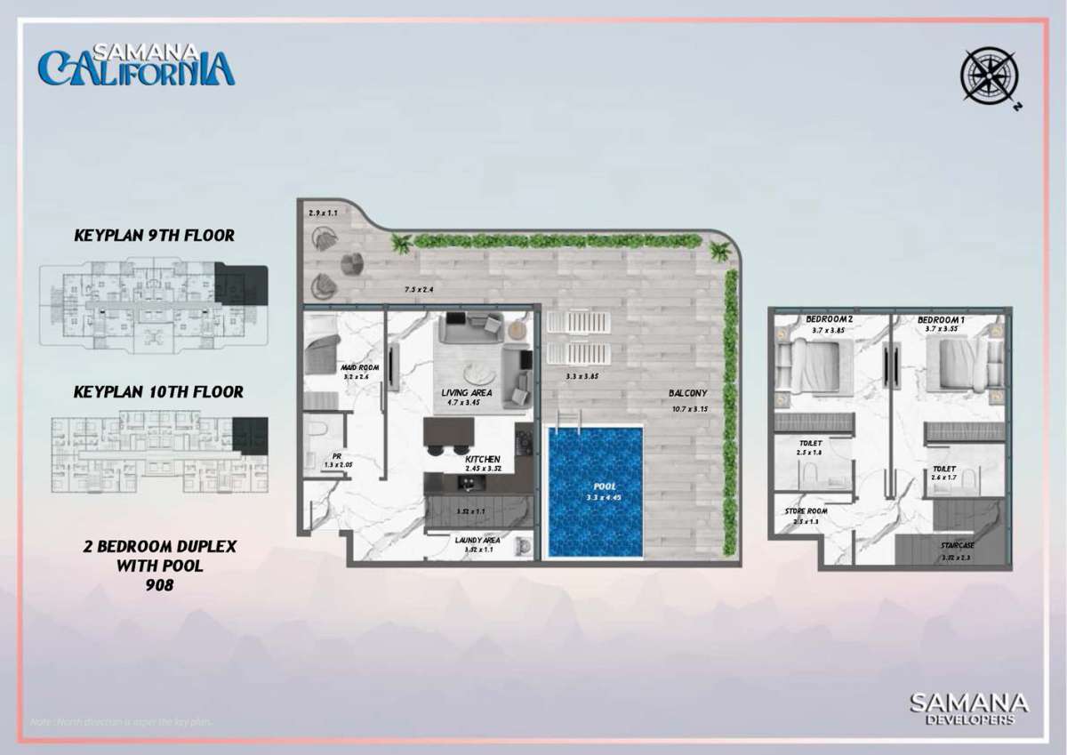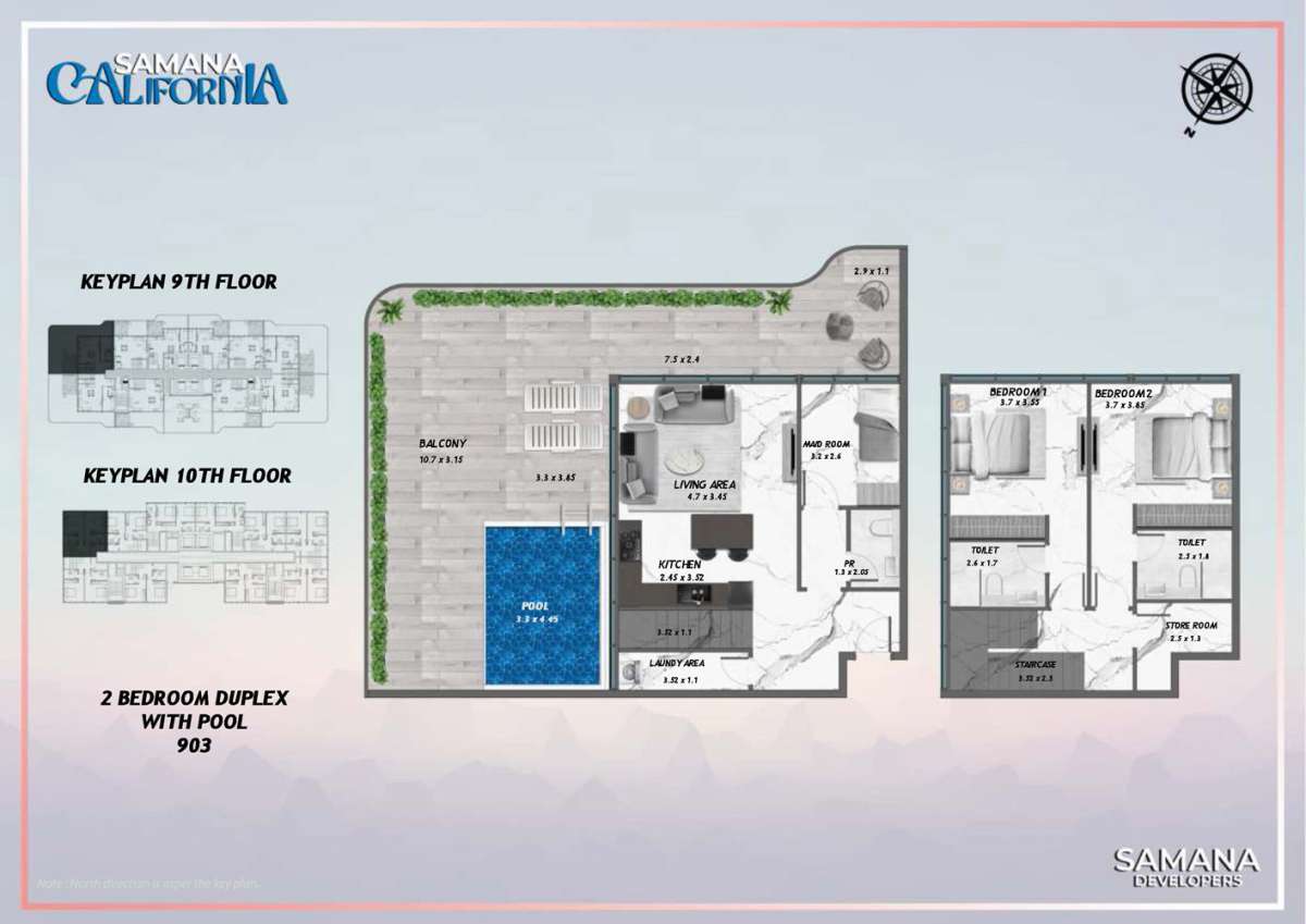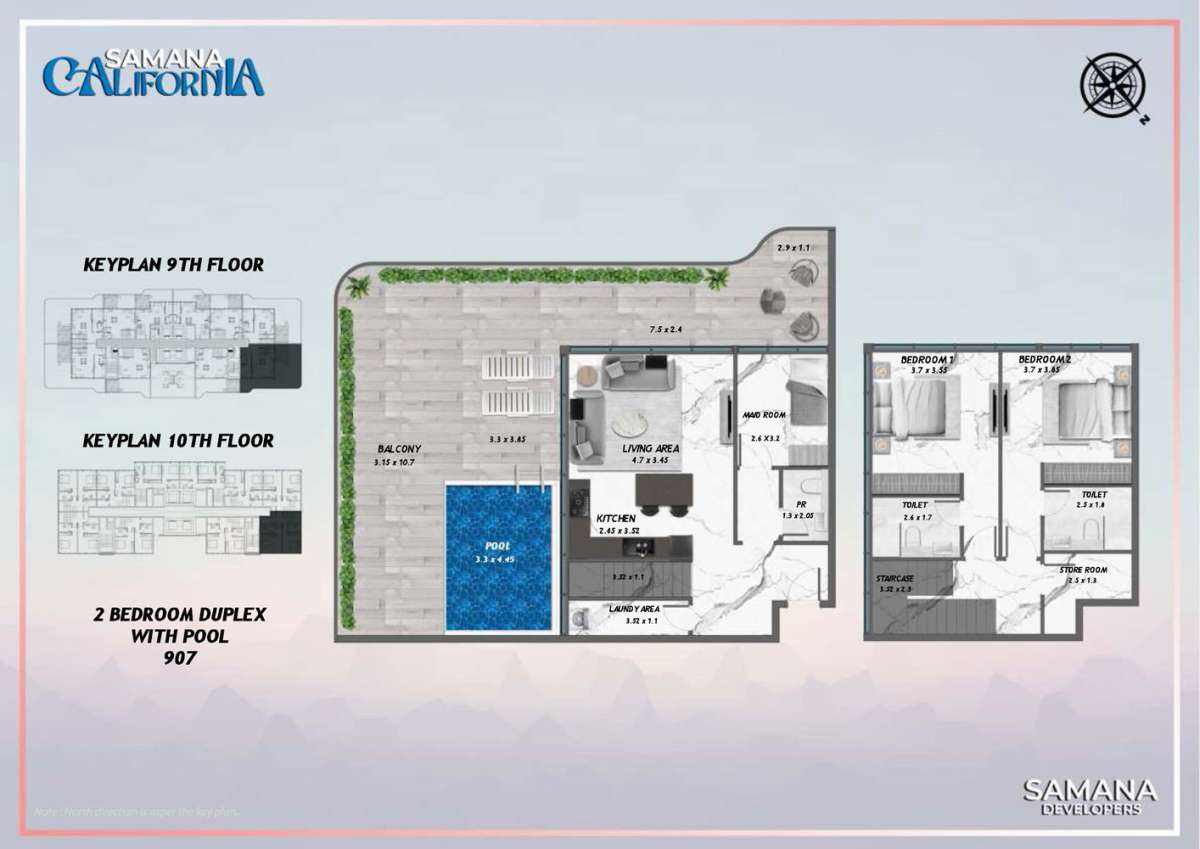 Comfort, style, and contemporary living are all combined in the residential haven of Samana, California. These luxurious studio, one-bedroom, and two-bedroom apartments are all built to maximize comfort and practicality. The open layout creates a rejuvenating living space with lots of natural light and ventilation. However, the addition of swimming pools sets these apartments apart and provides residents with a true haven.