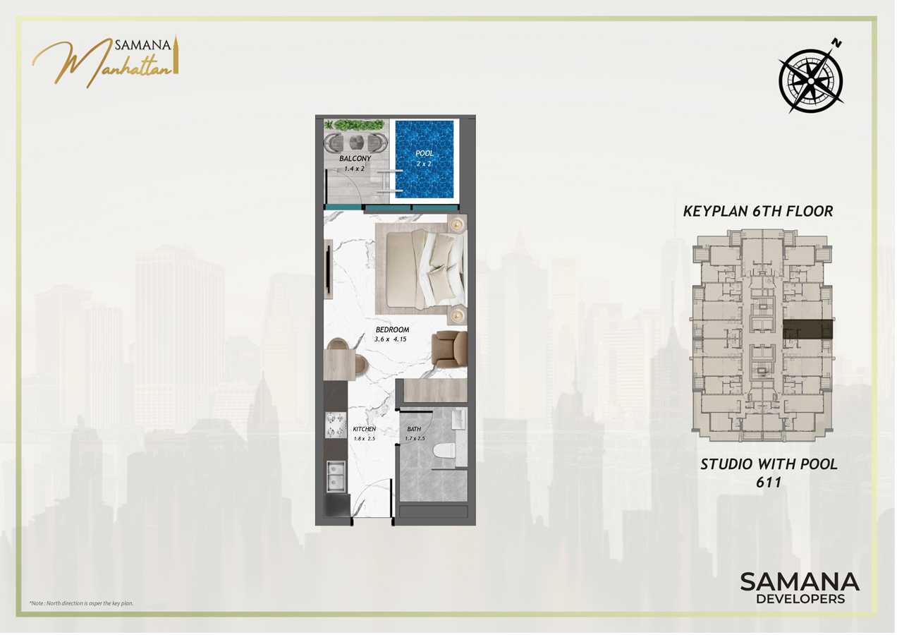 Samana Manhattan at JVC, which offers studios, and one- and two-bedroom apartments with pools, stands out as a beacon of contemporary elegance and comfort in Dubai's dynamic terrain. Three podiums and a 16-story façade are part of this cutting-edge Samana Developers design project, which aims to give inhabitants an unmatched lifestyle where sophistication and luxury collide at every turn. It stands out as a distinctive landmark in JVC because every detail has been painstakingly designed to produce a peaceful and contemporary living space.