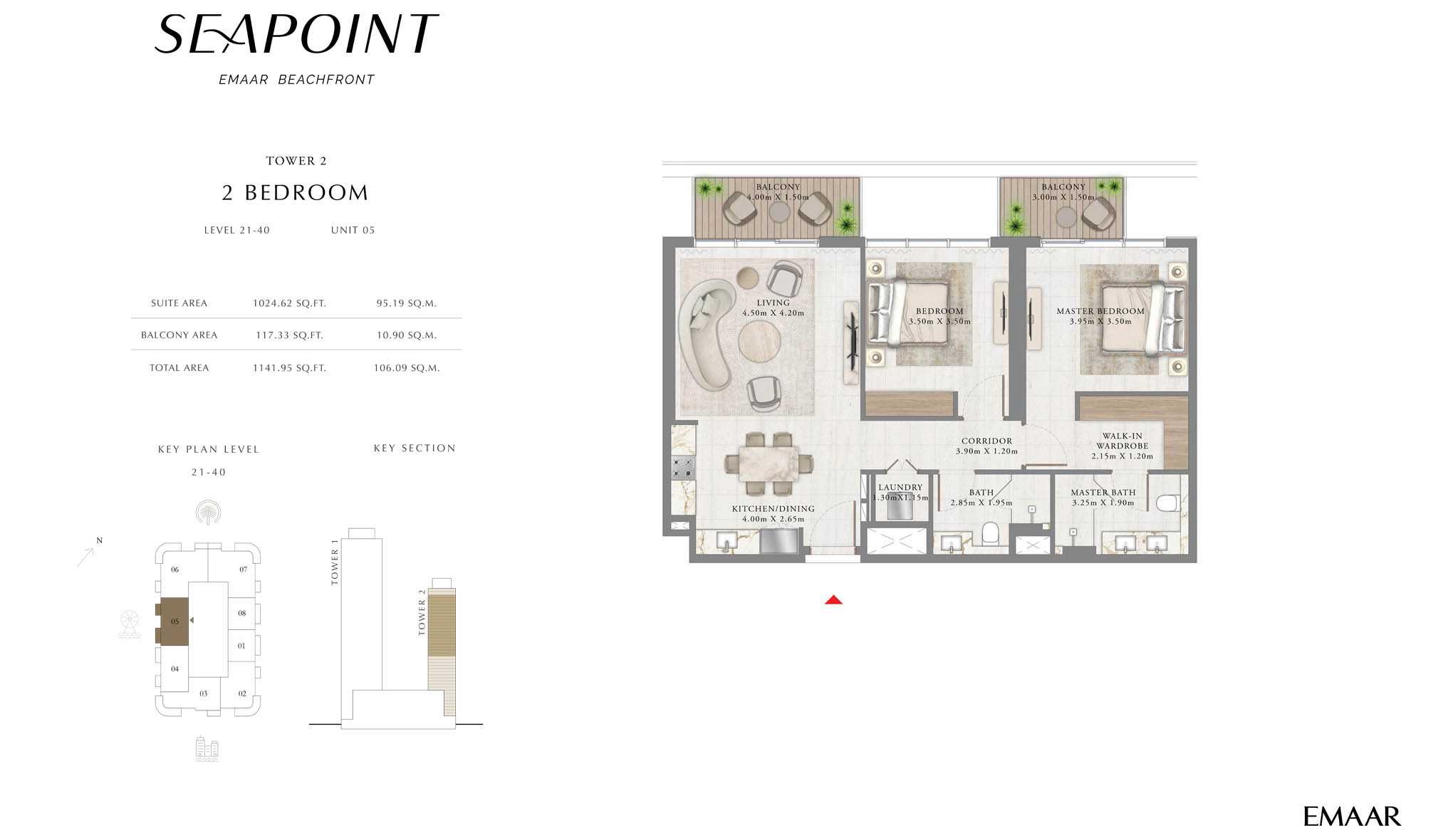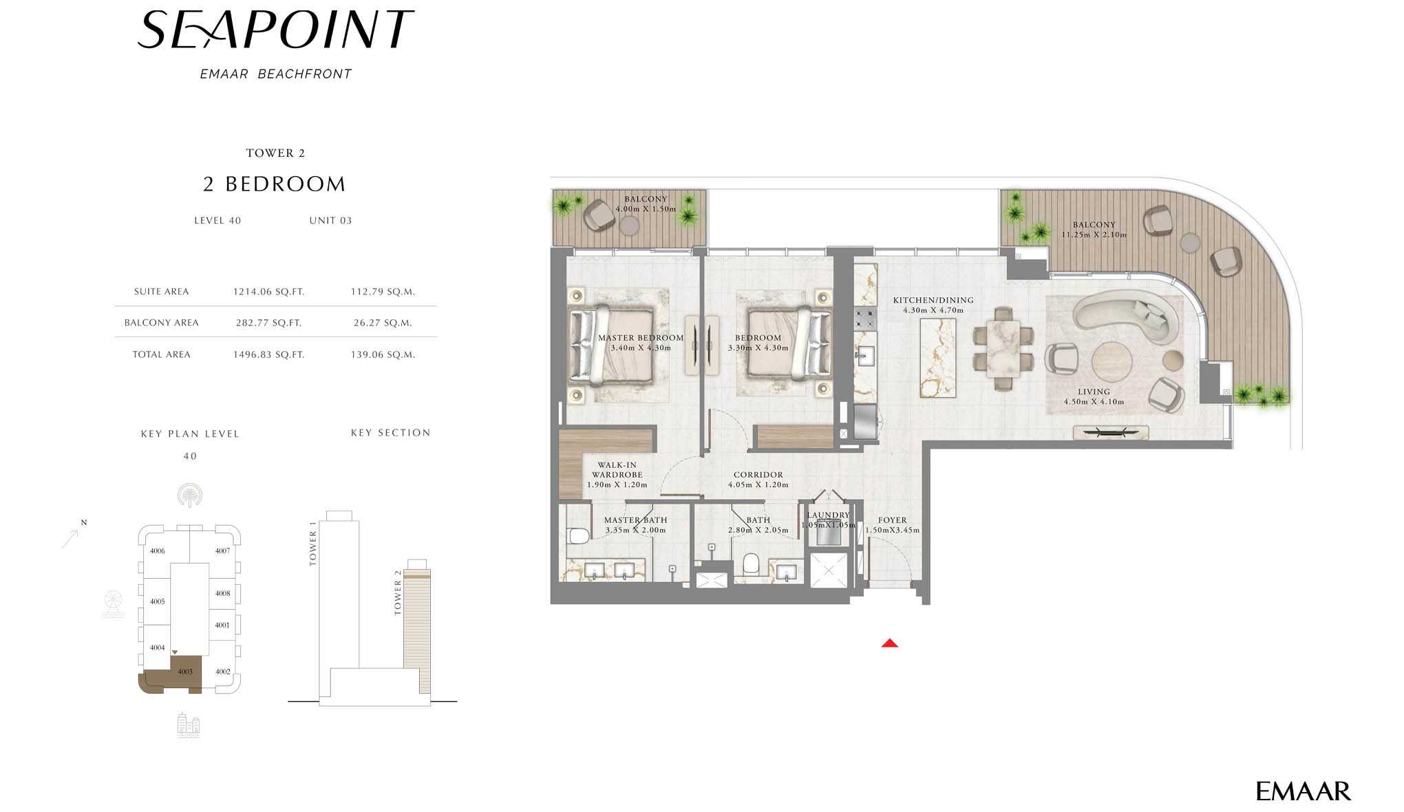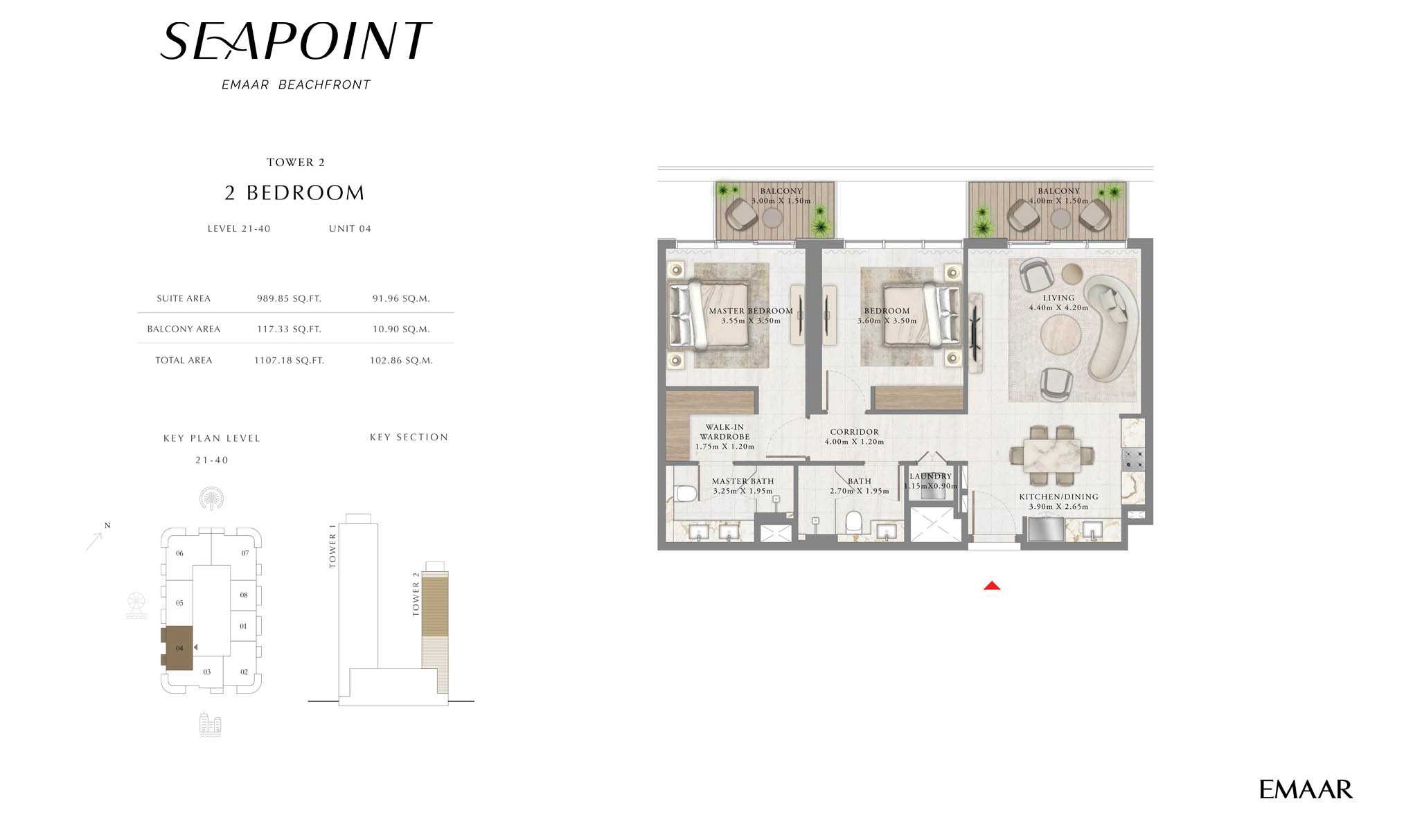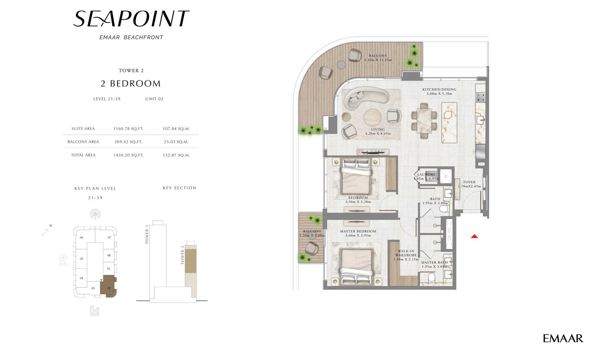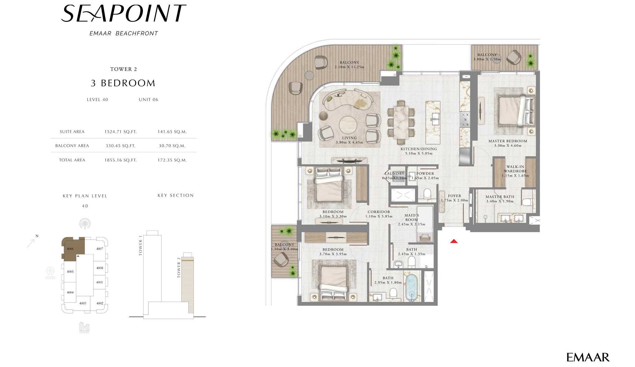 Emaar Properties' unique waterfront property, Seapoint, is located at Emaar Beachfront in Dubai and offers opulent 1, 2, 3, and 4-bedroom apartments and 4, 5, and 6-bedroom penthouses. Having access to the 450 meters of white sand beaches that form a bordered paradise, complete with a serviced recreational promenade. The two luxuriously designed towers have podium-level amenities, the largest swimming pool on site, and showcase views of the sea and Dubai Marina.