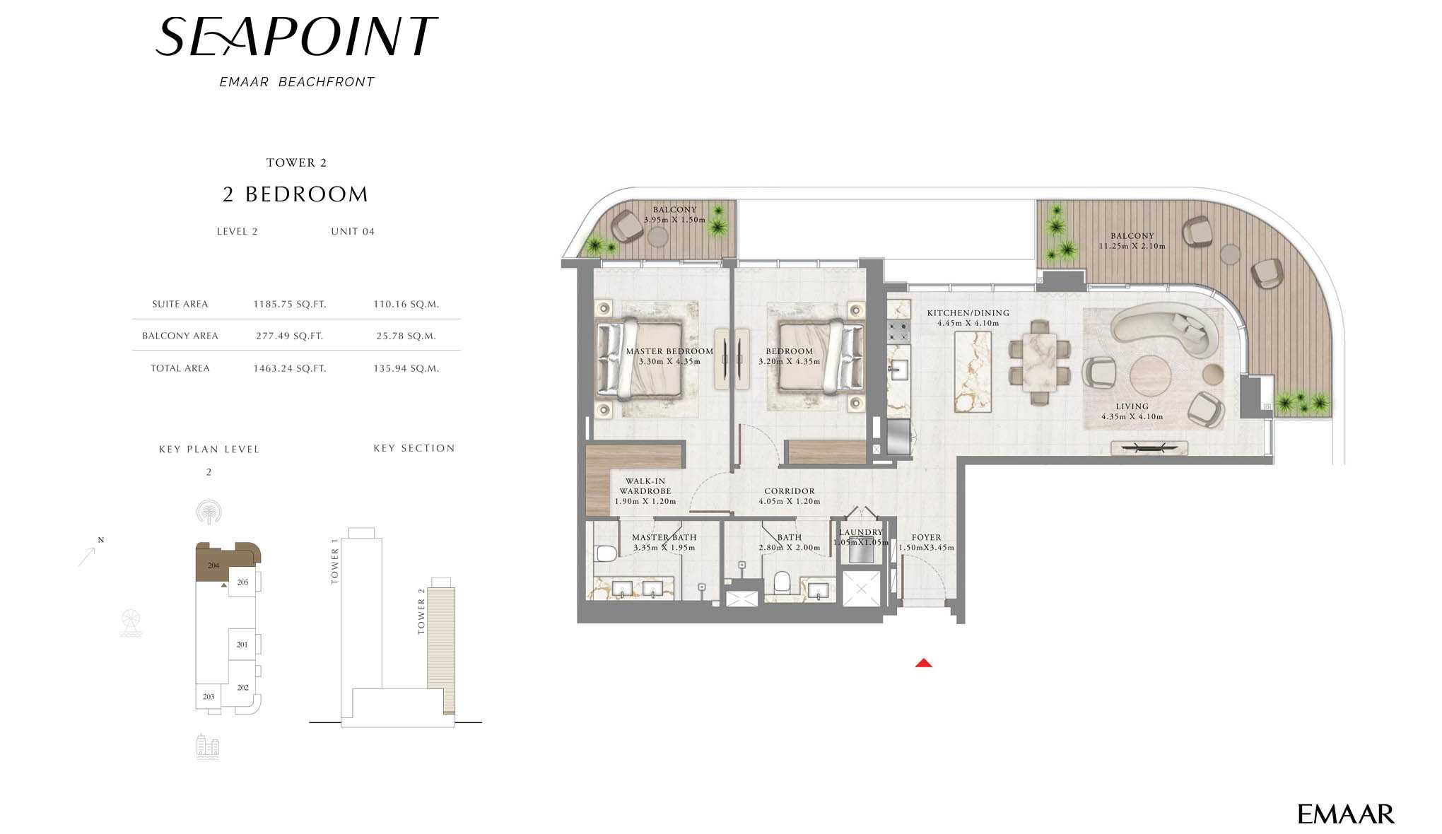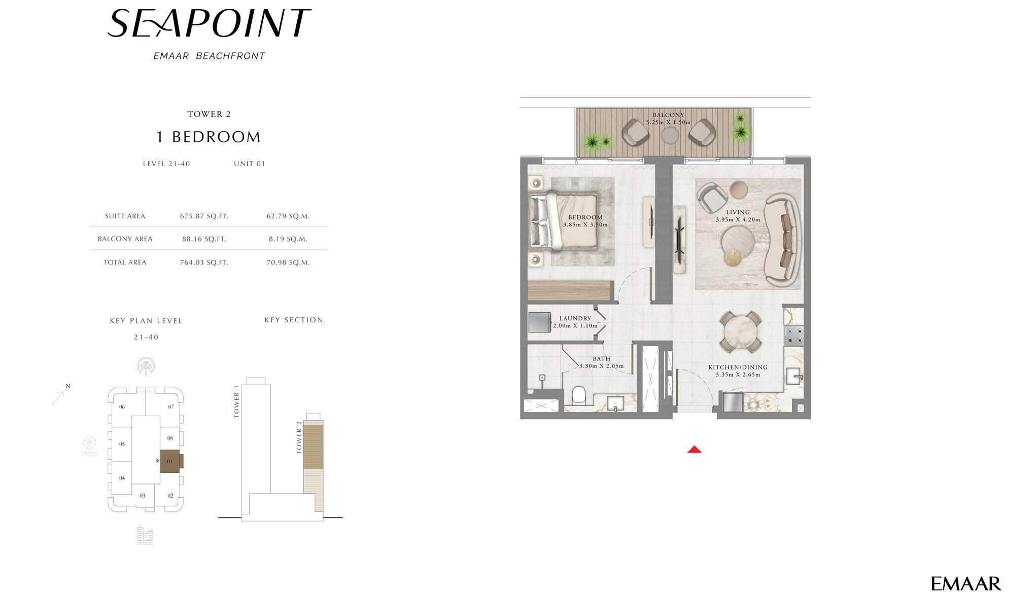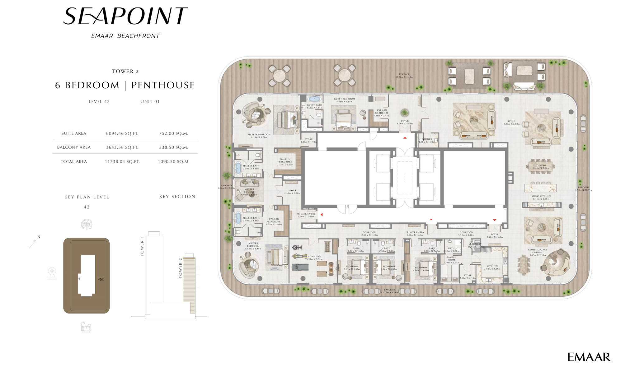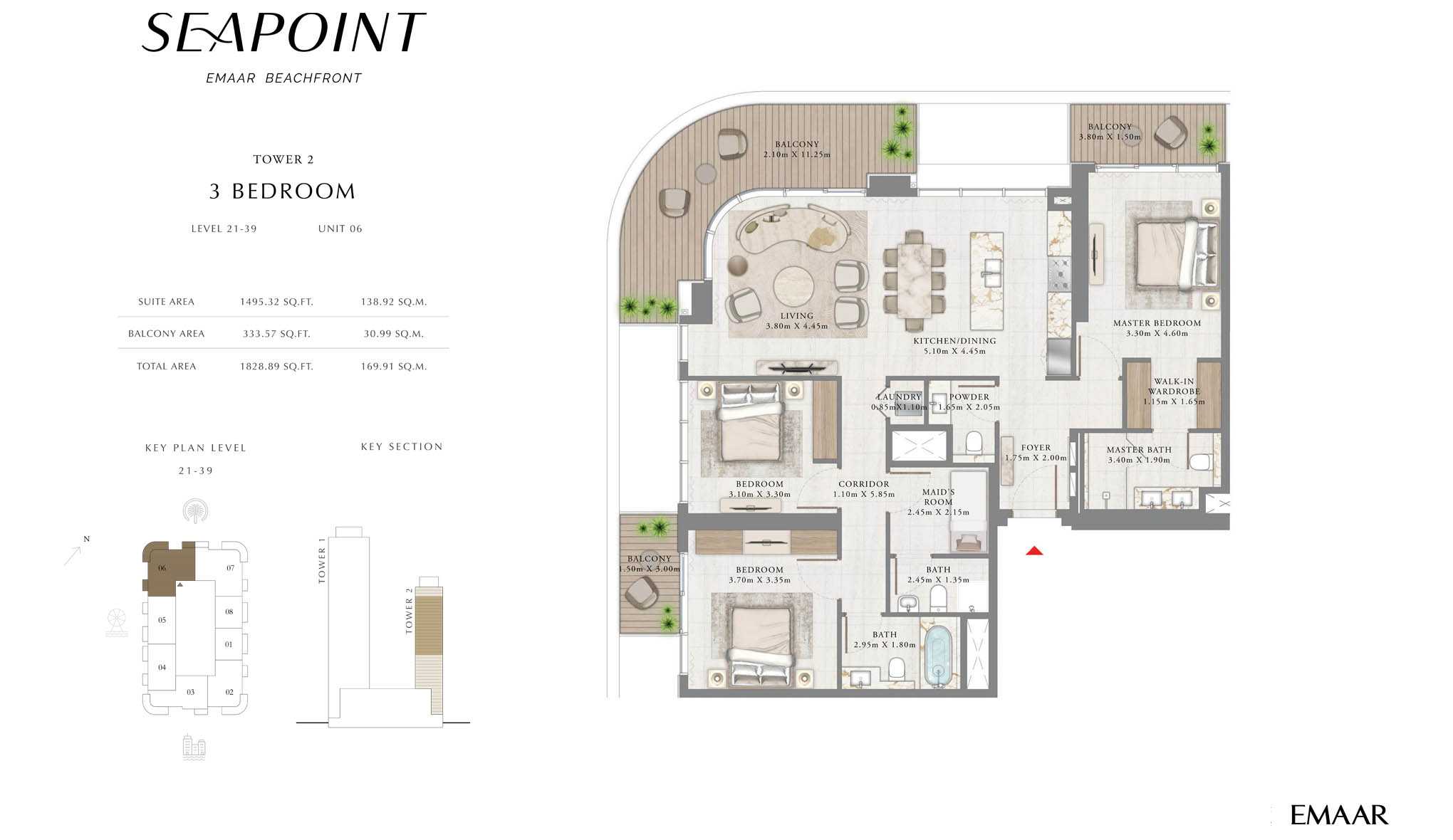 Emaar Properties' unique waterfront property, Seapoint, is located at Emaar Beachfront in Dubai and offers opulent 1, 2, 3, and 4-bedroom apartments and 4, 5, and 6-bedroom penthouses. Having access to the 450 meters of white sand beaches that form a bordered paradise, complete with a serviced recreational promenade. The two luxuriously designed towers have podium-level amenities, the largest swimming pool on site, and showcase views of the sea and Dubai Marina.