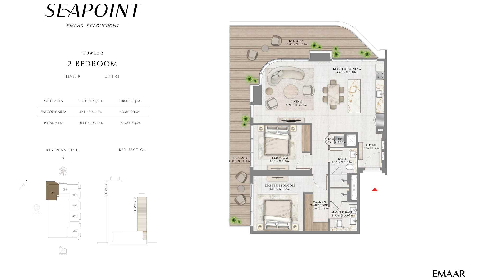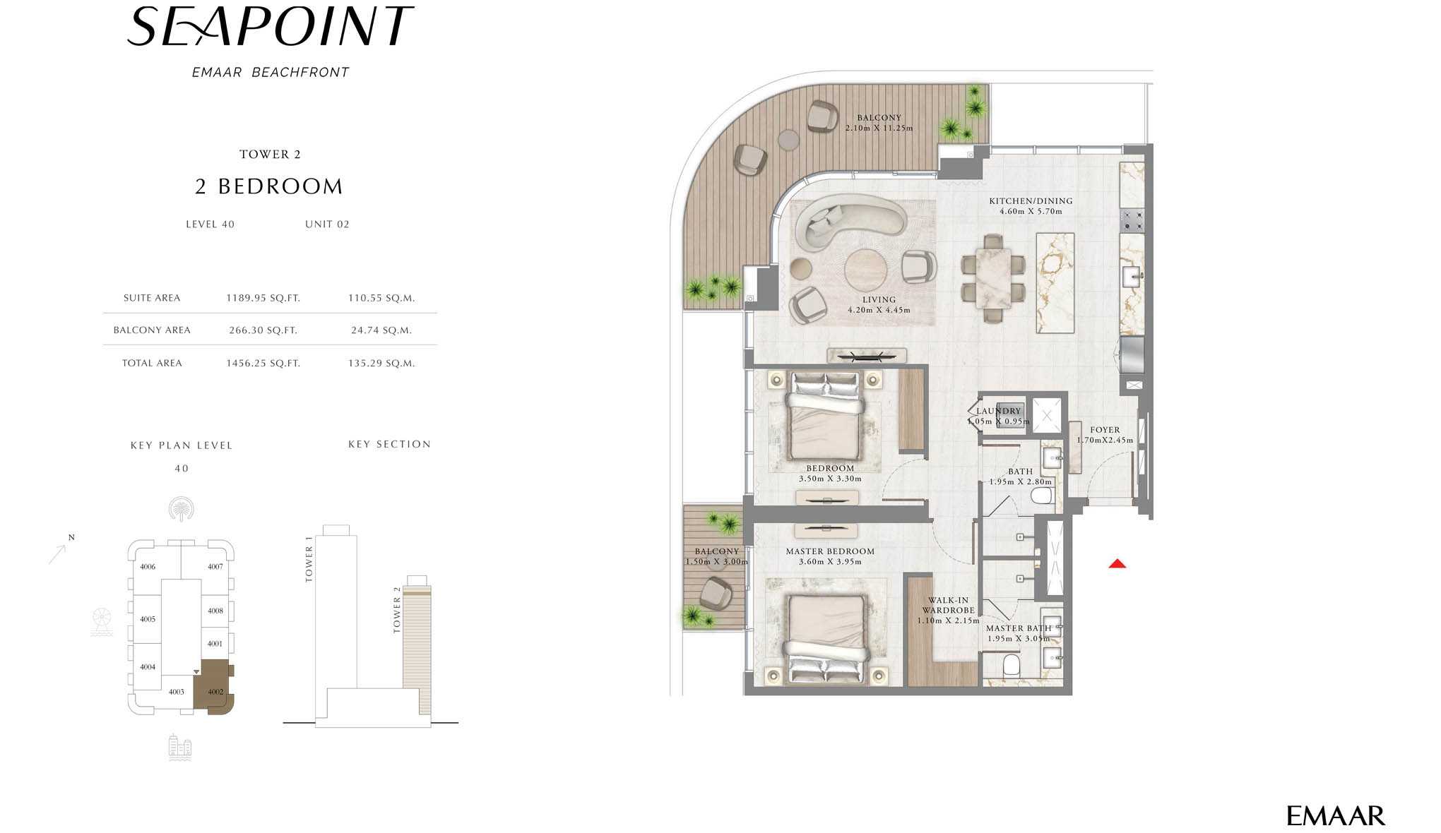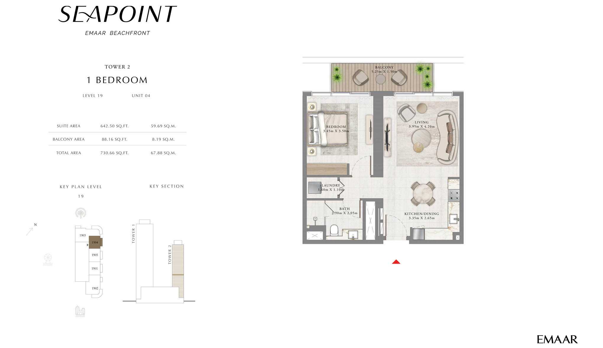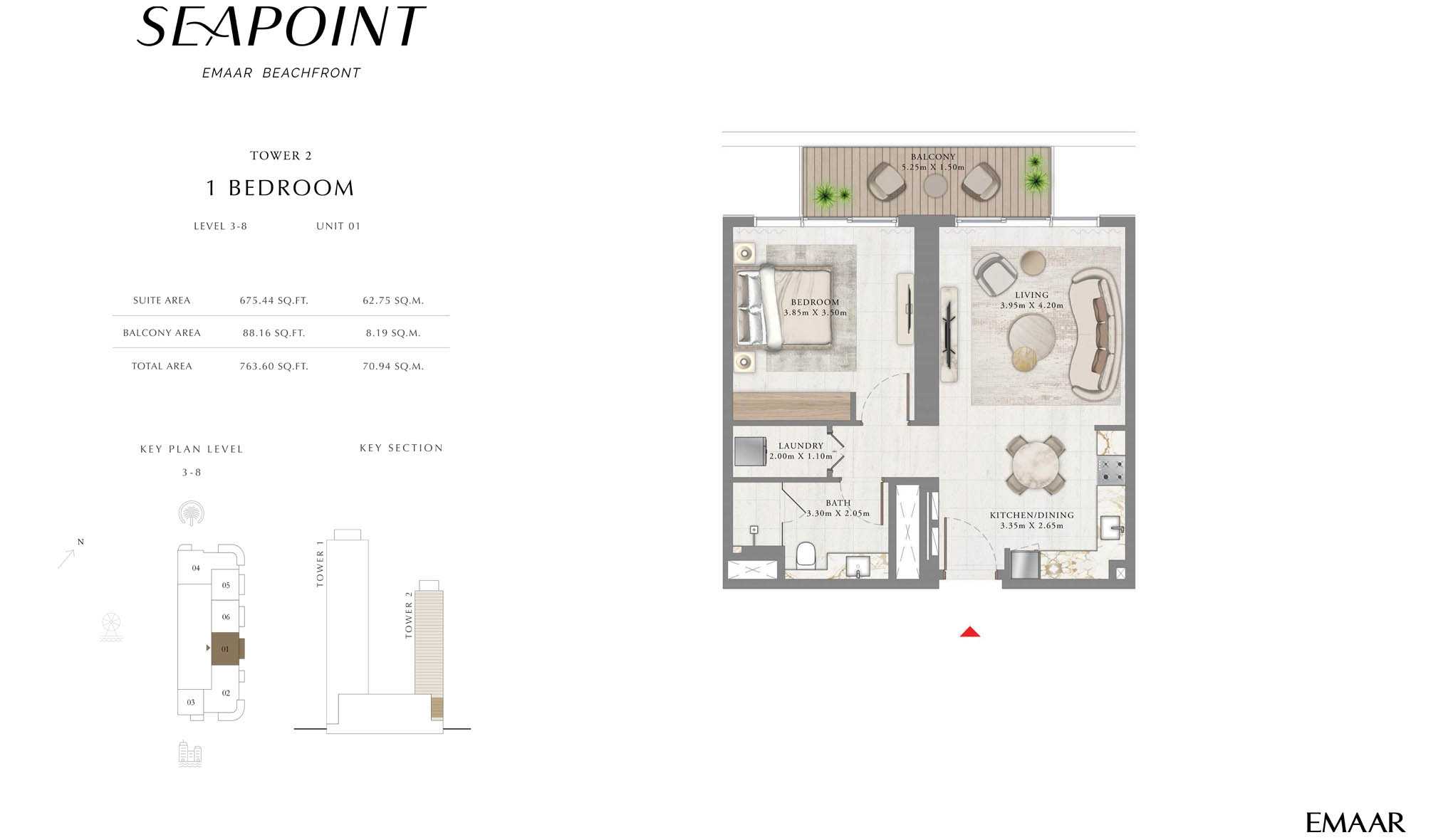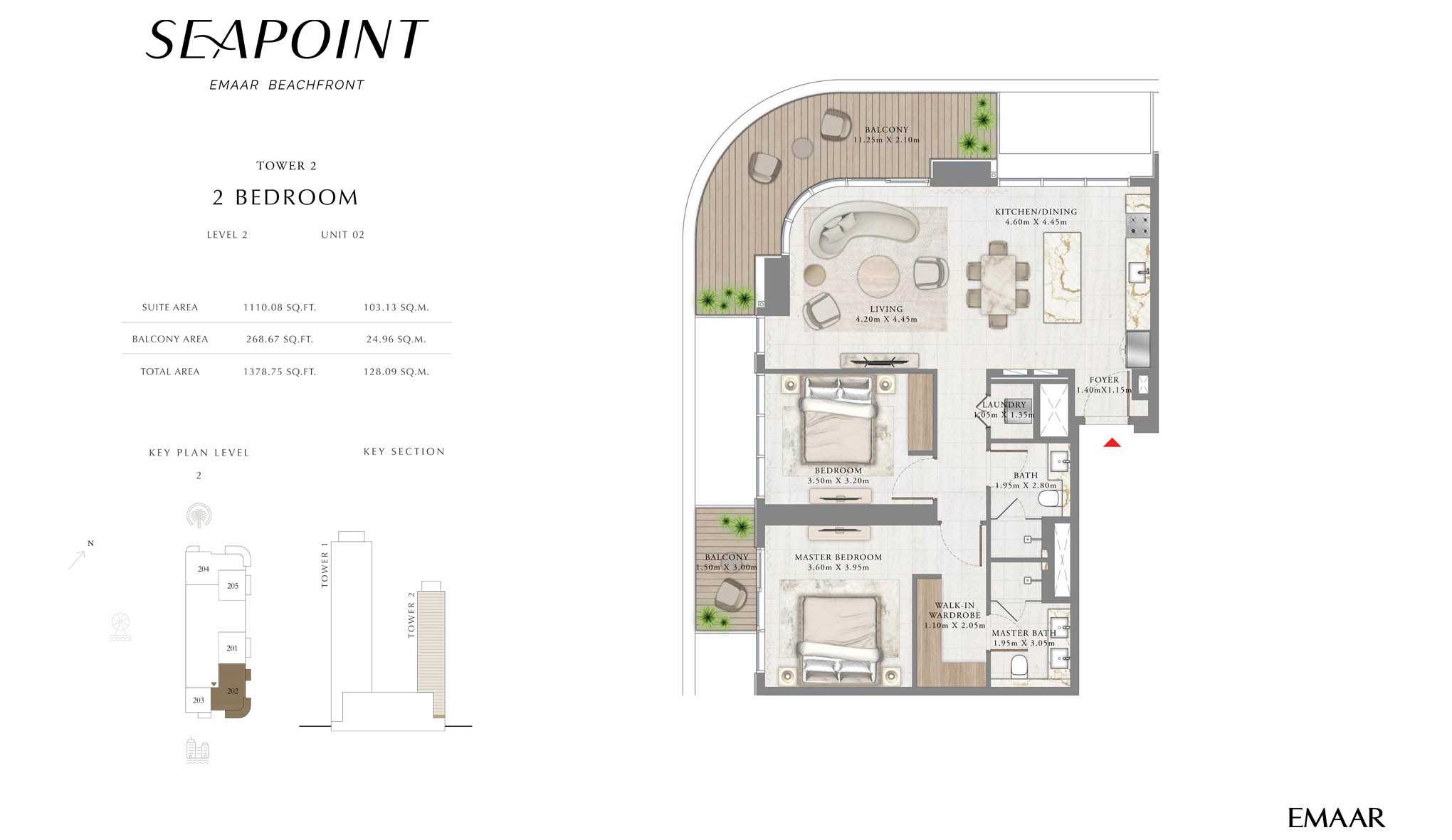 Emaar Properties' unique waterfront property, Seapoint, is located at Emaar Beachfront in Dubai and offers opulent 1, 2, 3, and 4-bedroom apartments and 4, 5, and 6-bedroom penthouses. Having access to the 450 meters of white sand beaches that form a bordered paradise, complete with a serviced recreational promenade. The two luxuriously designed towers have podium-level amenities, the largest swimming pool on site, and showcase views of the sea and Dubai Marina.