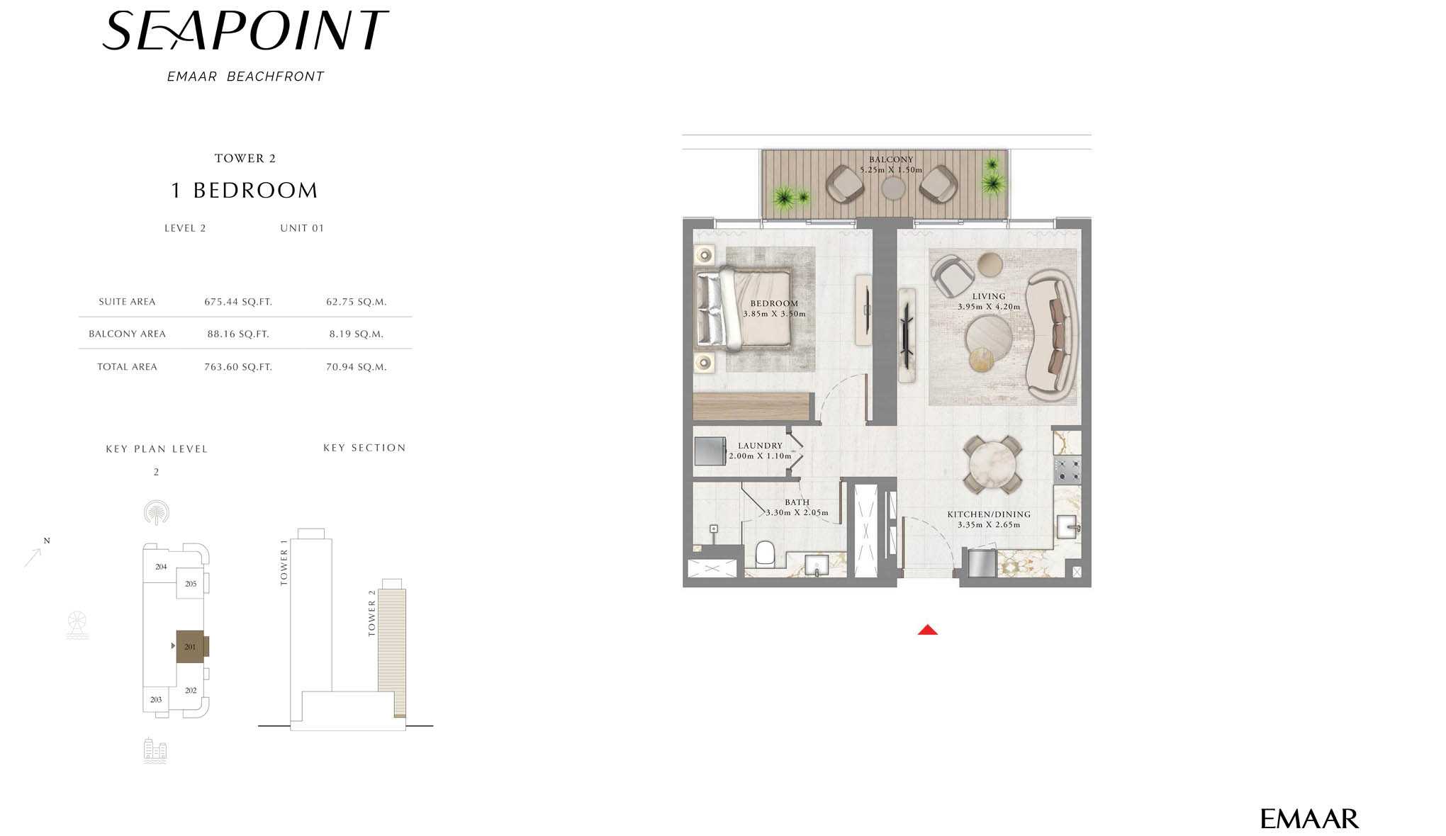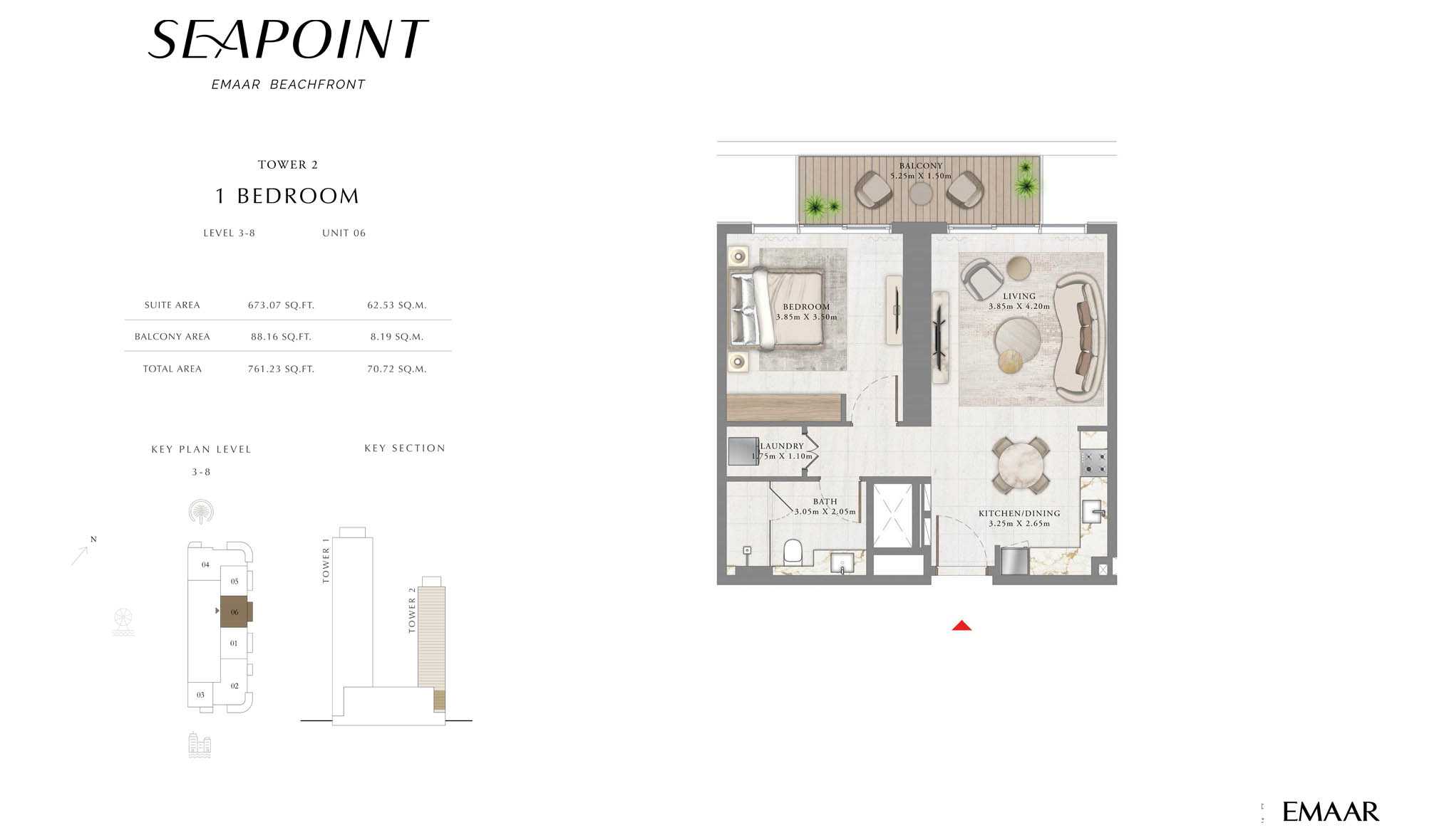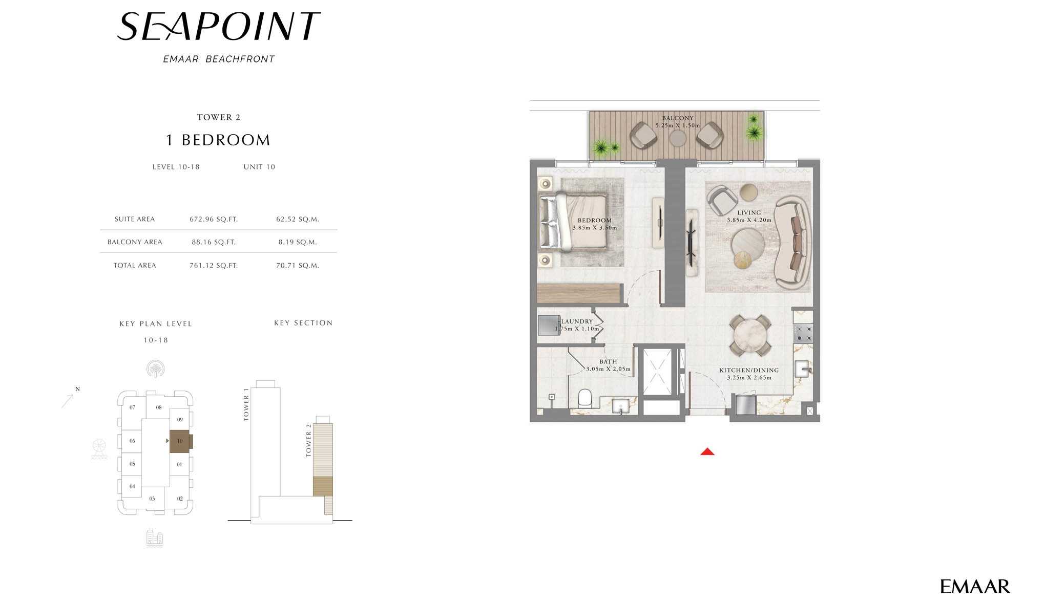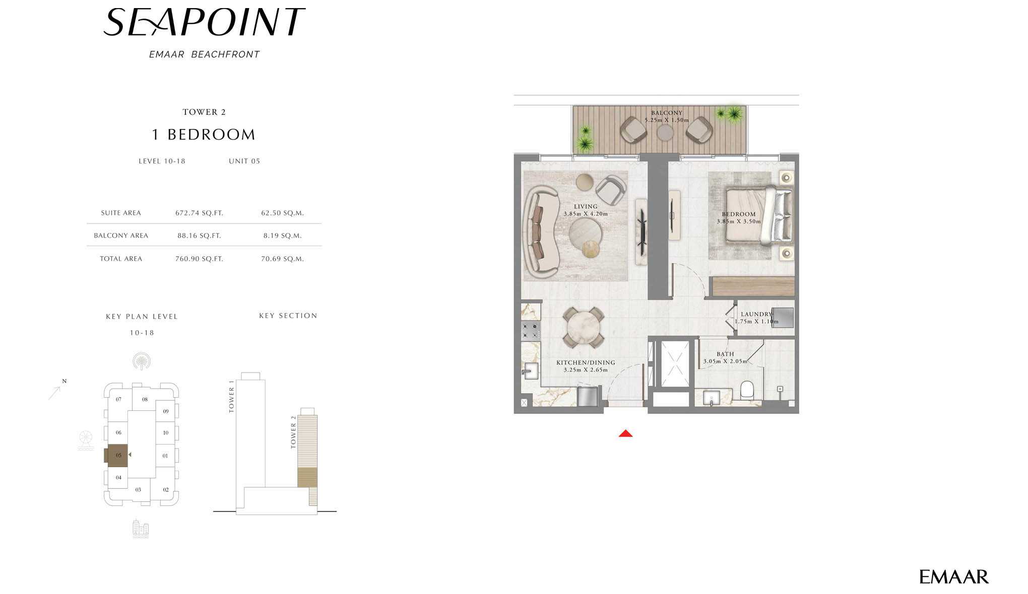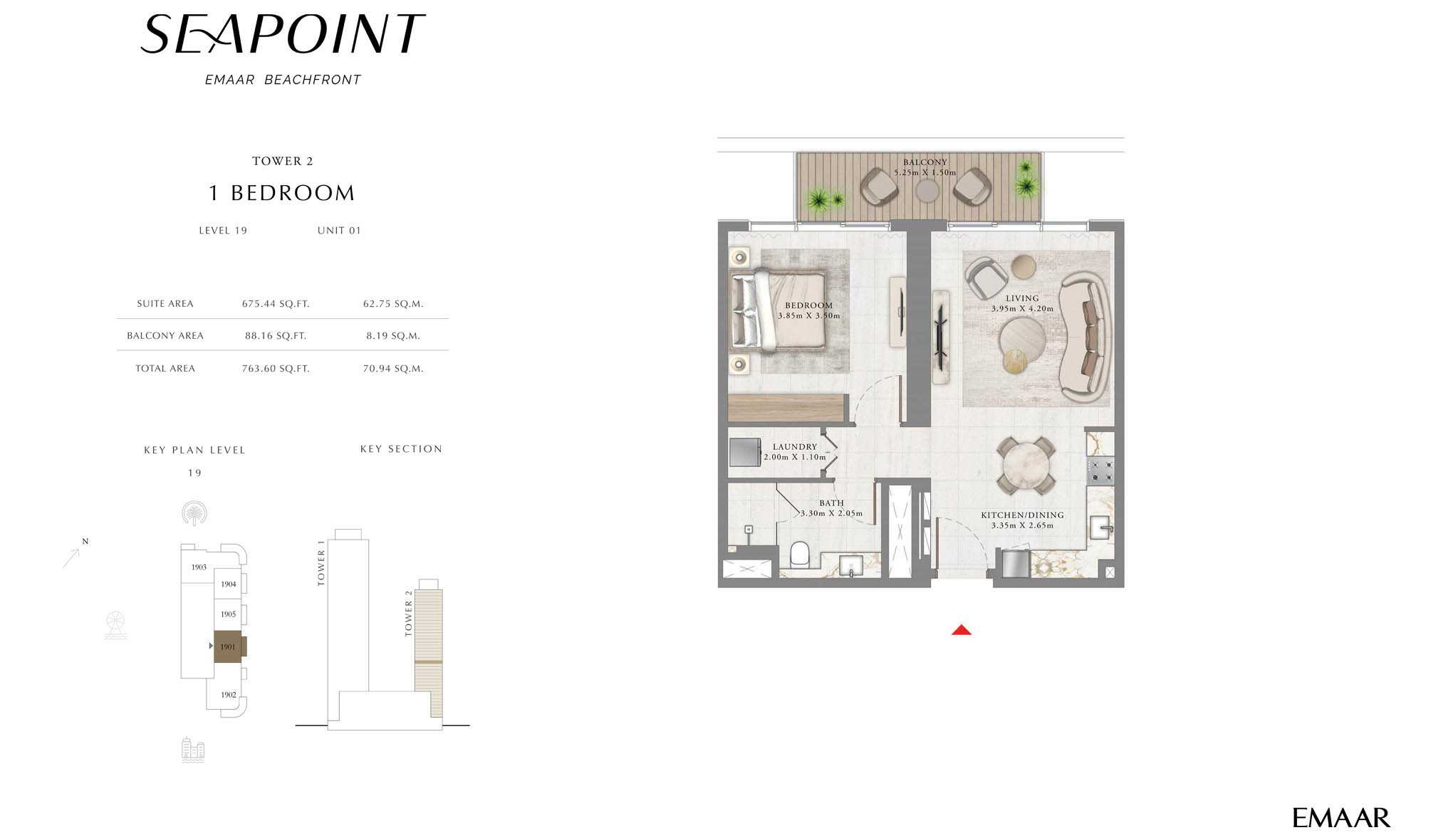 Emaar Properties' unique waterfront property, Seapoint, is located at Emaar Beachfront in Dubai and offers opulent 1, 2, 3, and 4-bedroom apartments and 4, 5, and 6-bedroom penthouses. Having access to the 450 meters of white sand beaches that form a bordered paradise, complete with a serviced recreational promenade. The two luxuriously designed towers have podium-level amenities, the largest swimming pool on site, and showcase views of the sea and Dubai Marina.