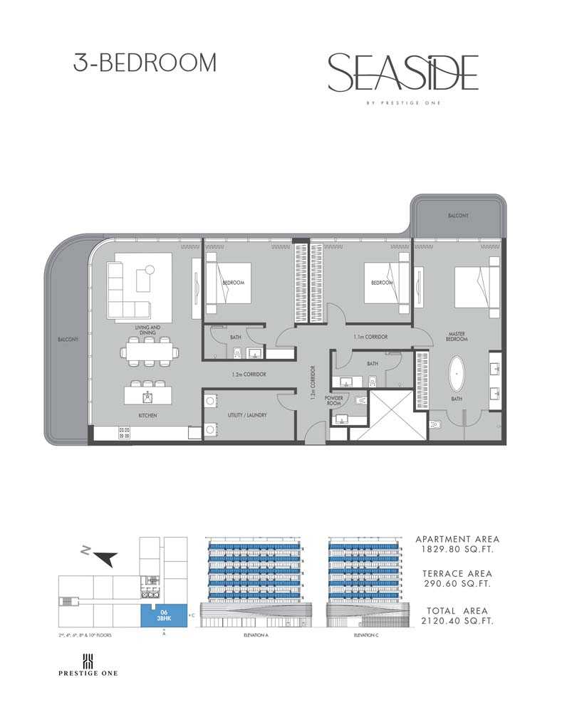 Prestige One Developments' Seaside at Dubai Islands presents a fresh take on opulent living with its selection of 1, 2, and 3-bedroom premium apartments. The leisurely façade, which spans the development's ten stories, perfectly captures the combination of metropolitan elegance and the peaceful charm of island living. With floor-to-ceiling windows and large balconies, each property is painstakingly built to blend the surrounding seascape into the living area. Clean lines and a tiered structure for solitude and expansive views are features of modern architecture. The impressive double-story foyer greets residents and sets the tone for the upscale retreat they are about to enter.