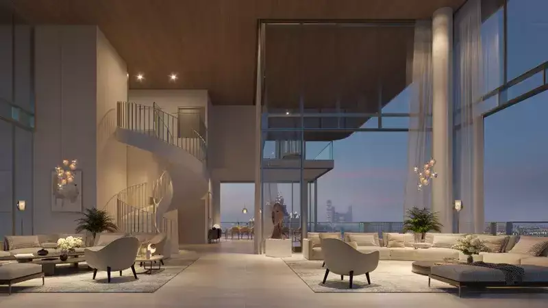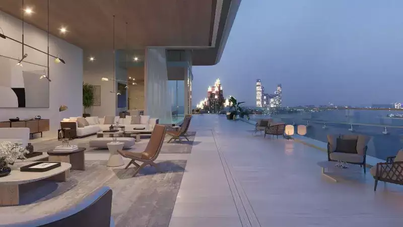 The exteriors of the towers are a visual delight, reflecting Dubai's world-class living experience and Palma Development's signature design ethos. High-visibility glass exteriors ensure that every apartment boasts panoramic waterfront views, capturing the essence of the Palm's status as an iconic residential address. This contemporary design seamlessly blends with the surrounding natural beauty, creating a harmonious environment.