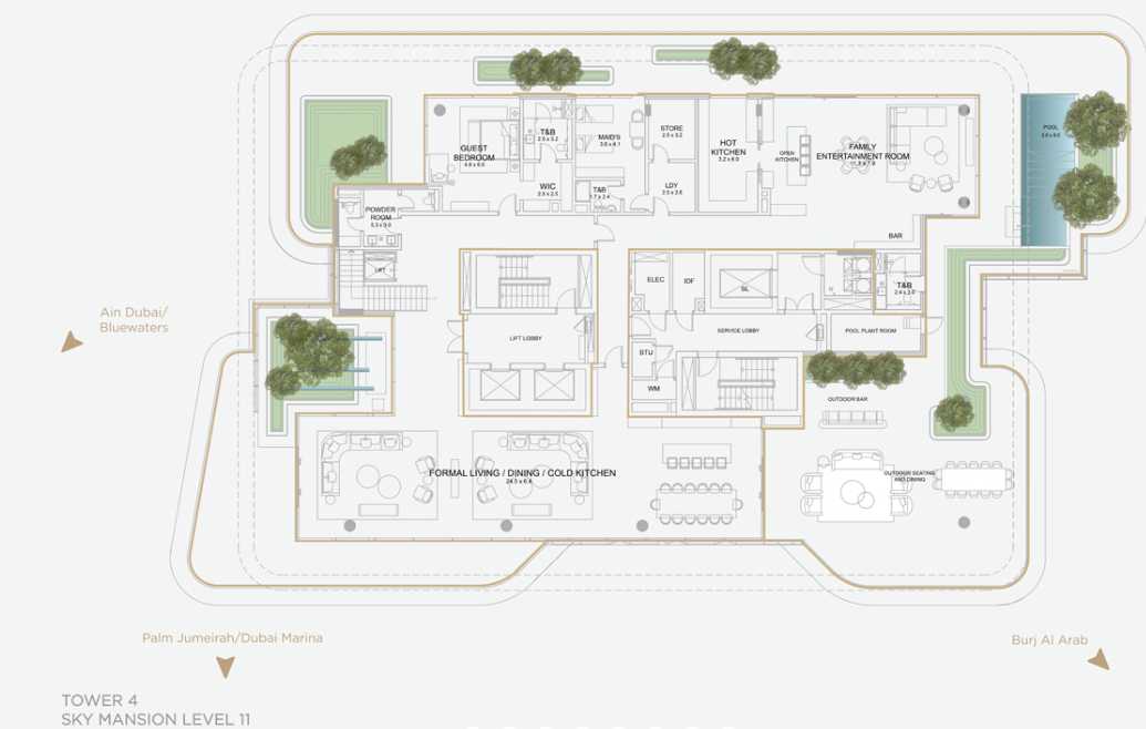 Enjoys the location that is nothing short of exceptional, situated on the first plot of Palm Jumeirah's West Crescent, it offers unrivalled views of the Palm Island, the azure sea, and the iconic Dubai skyline. Adjacent to Atlantis The Palm, residents have access to vibrant restaurants and attractions, making this address a hub of luxury and convenience.