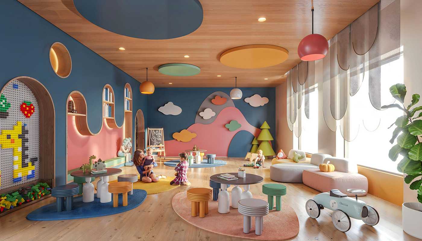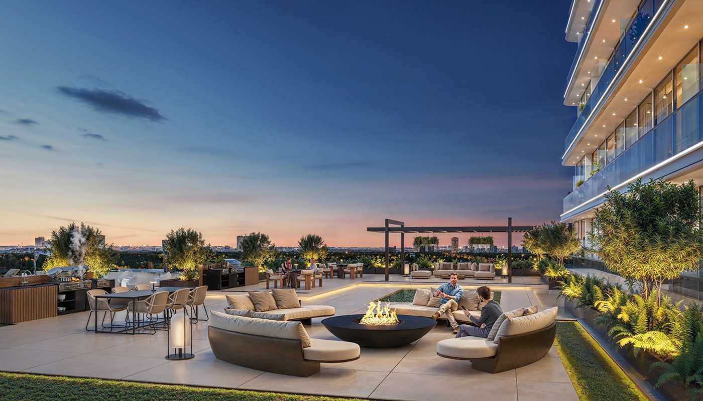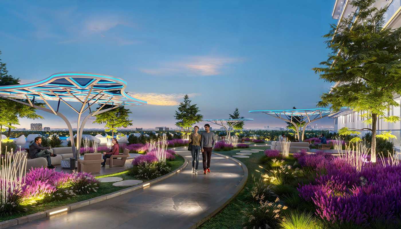 All family members can enjoy equal luxury thanks to the health bar's wellness center, which encourages good lifestyle choices, and two sets of playground spaces for children. The most remarkable feature of this apartment complex is the Sparkle Garden. By creating a sensory destination with its light-filled floral garden and outdoor movie experience, which creates fascinating atmospheres, the site goes beyond its typical landscaping duty.